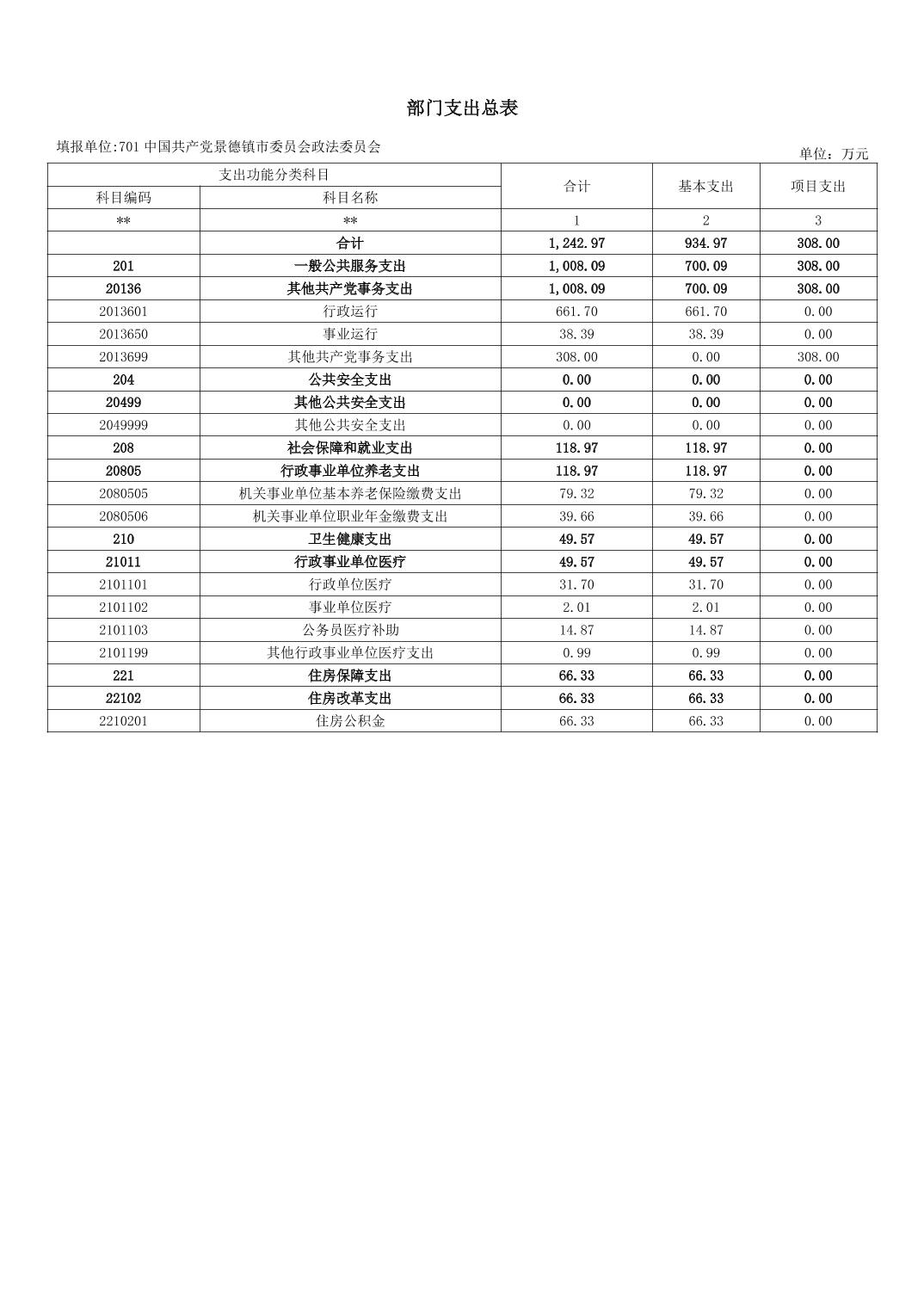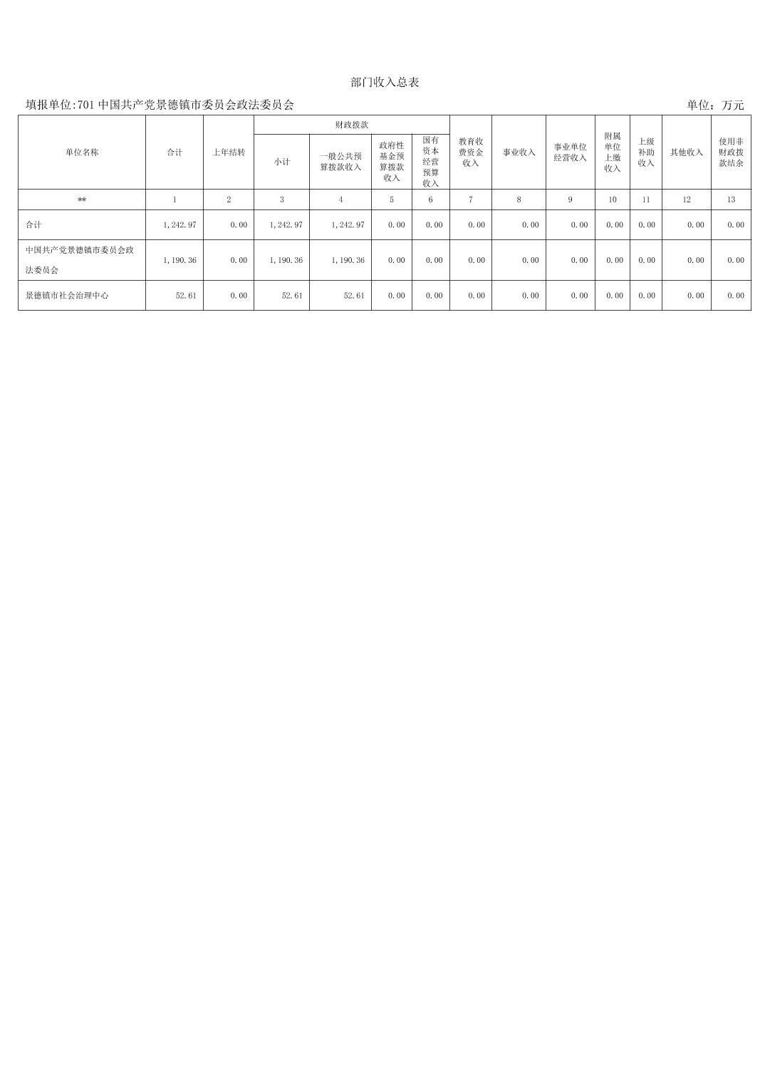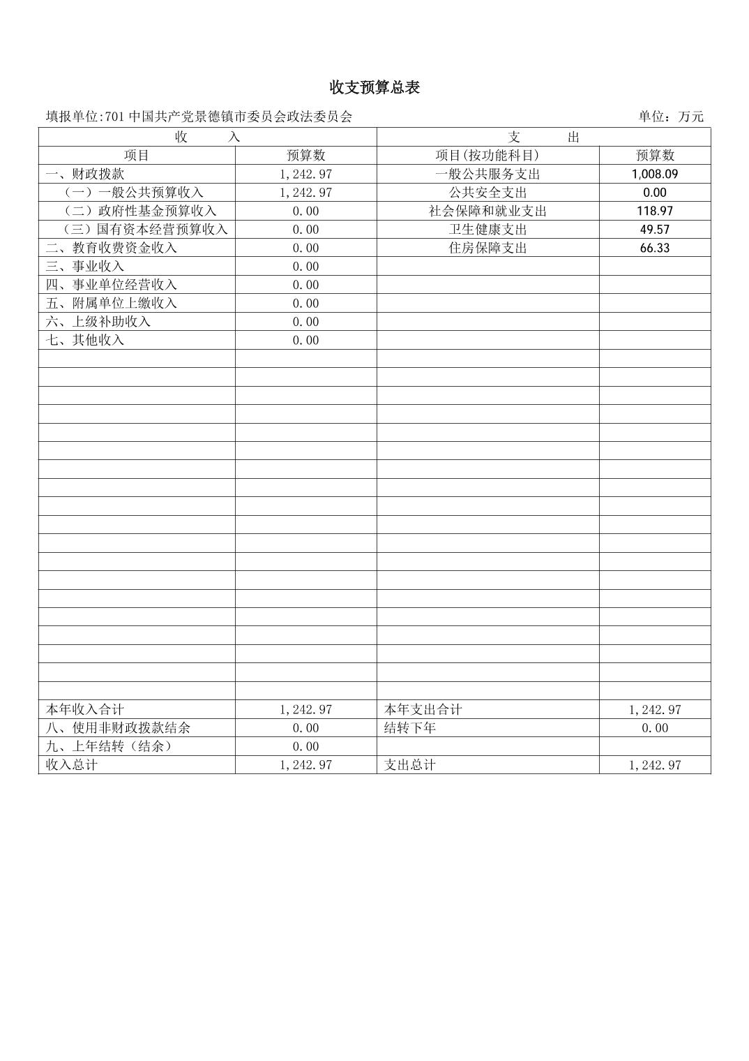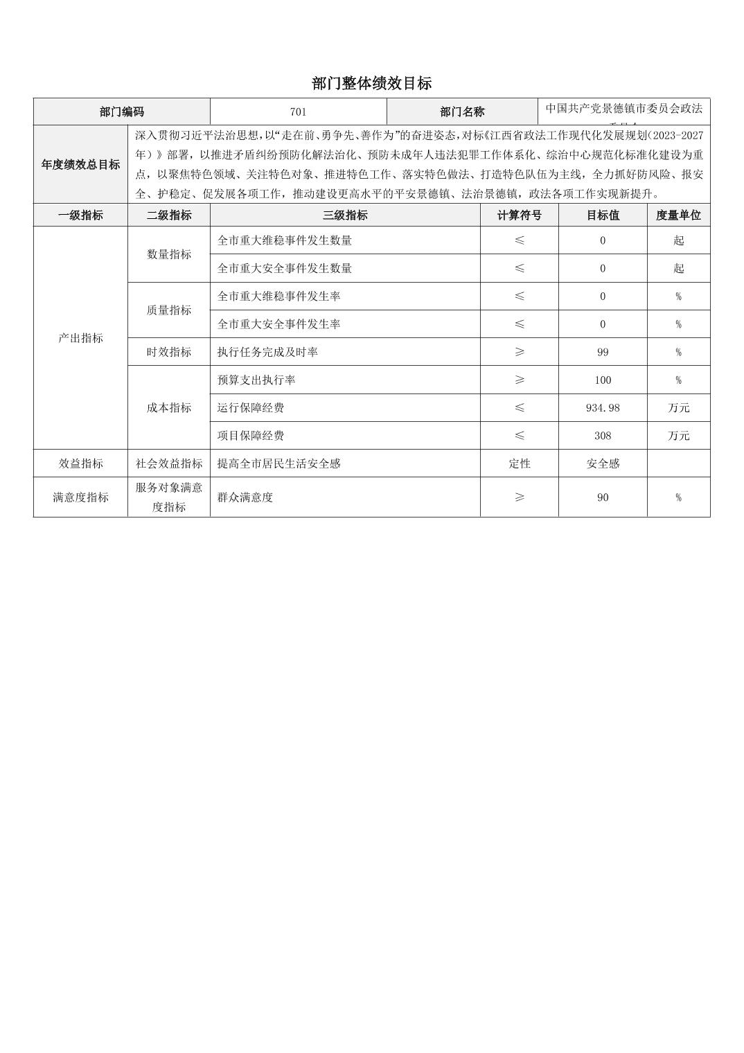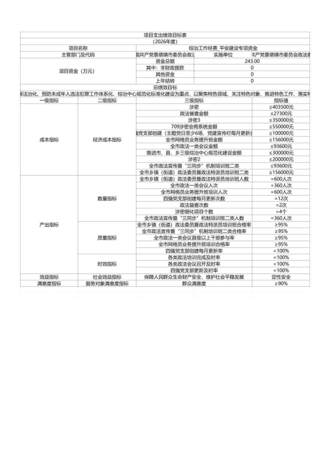 中国共产党景德镇市委员会政法委员会2026年部门预算
