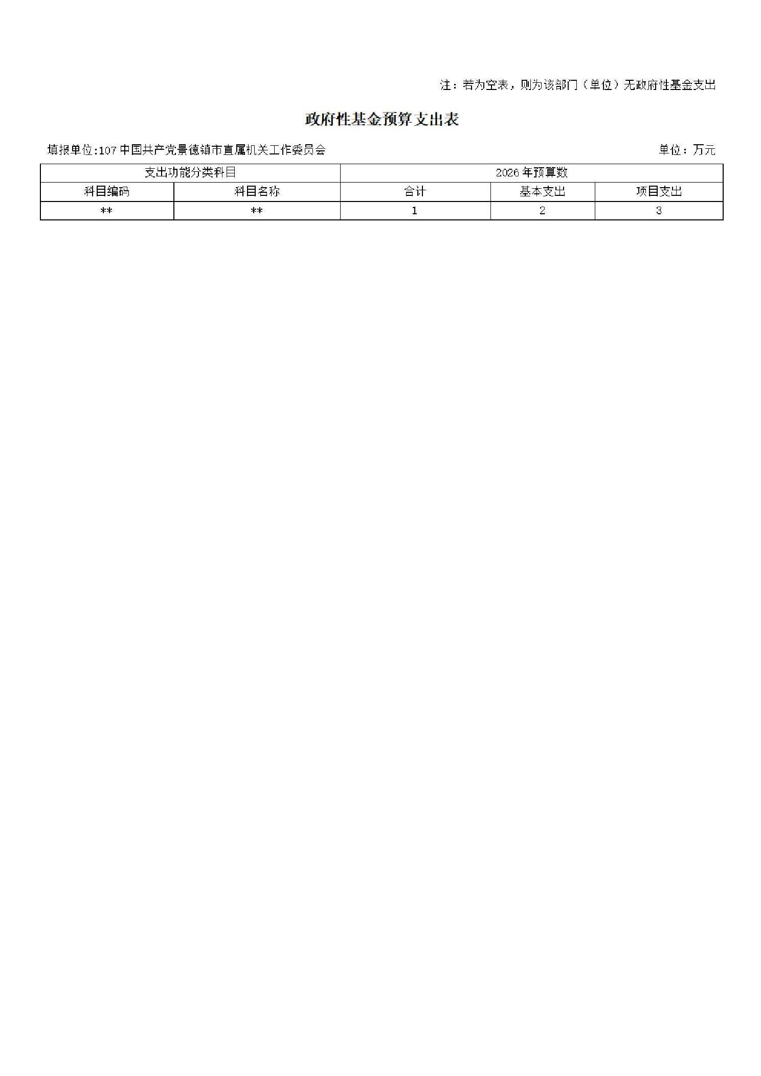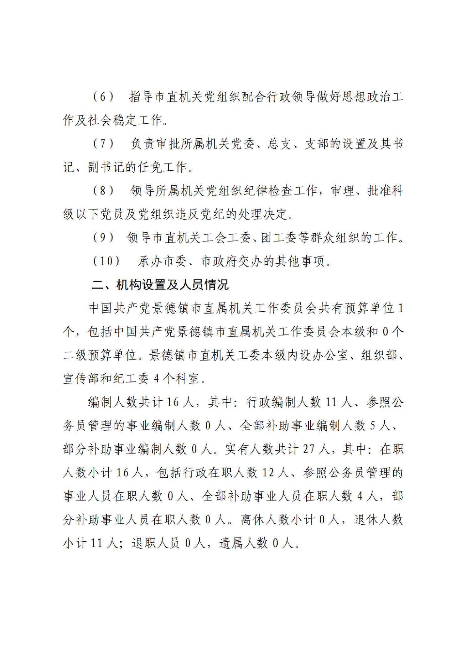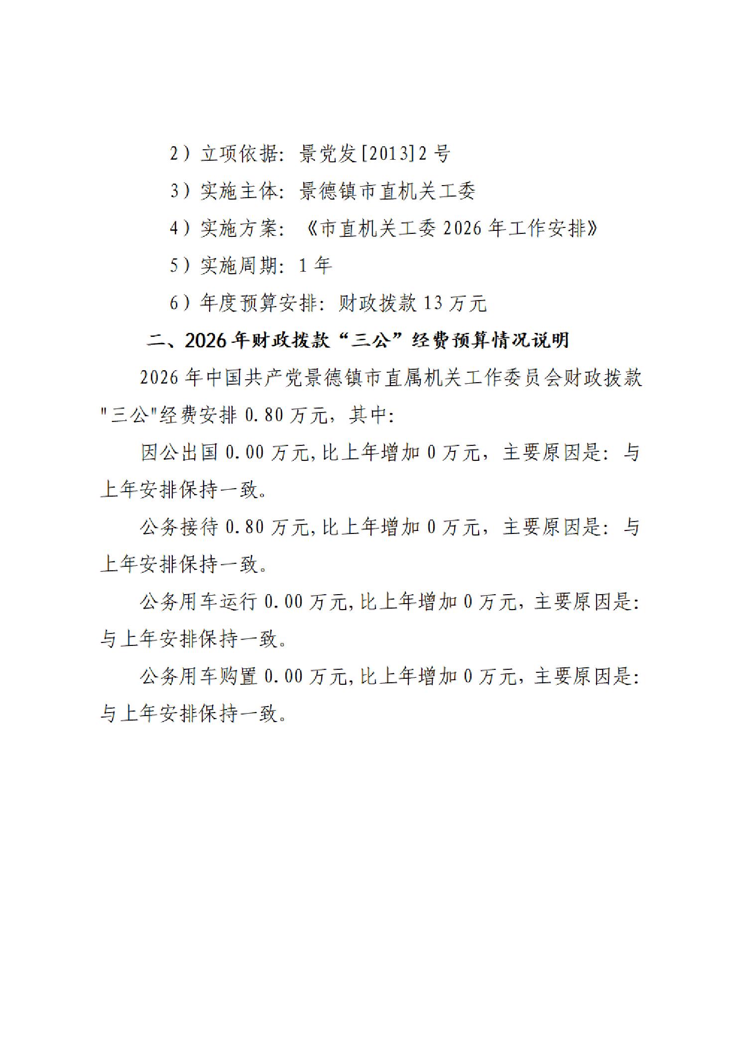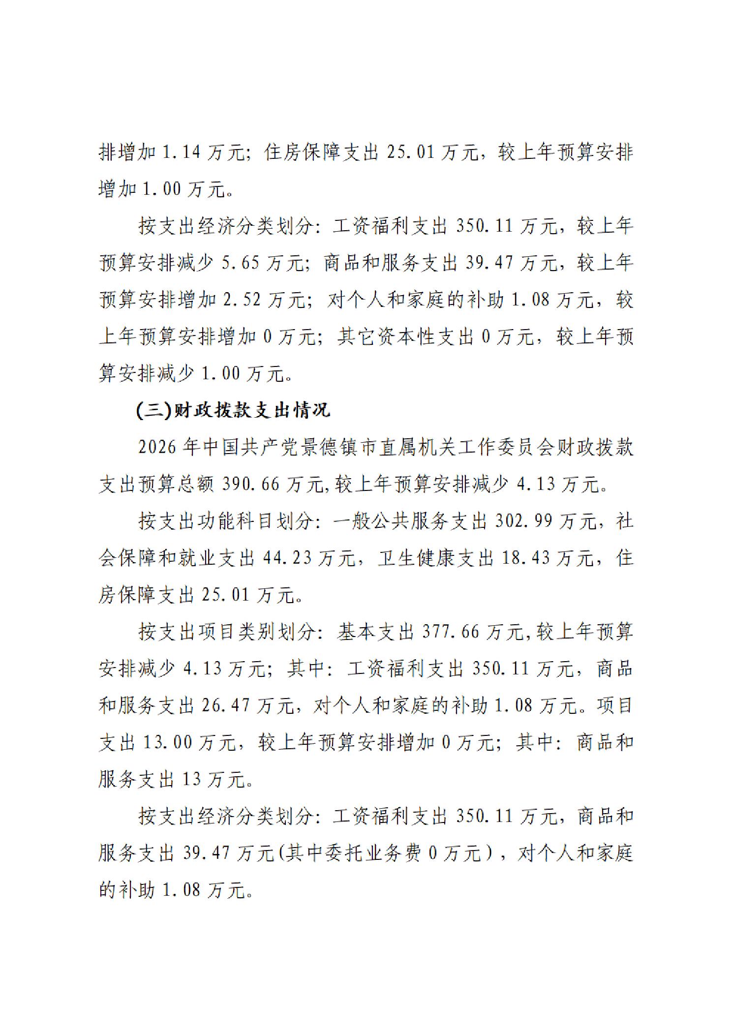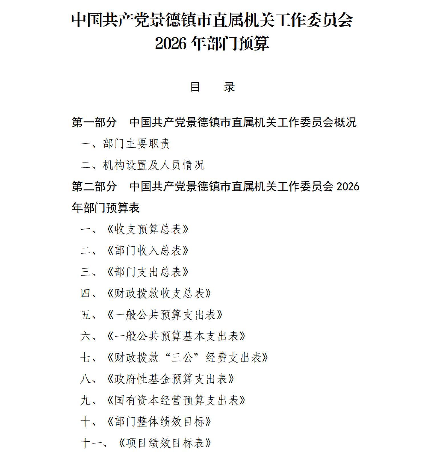中国共产党景德镇市直属机关工作委员会2026年部门预算