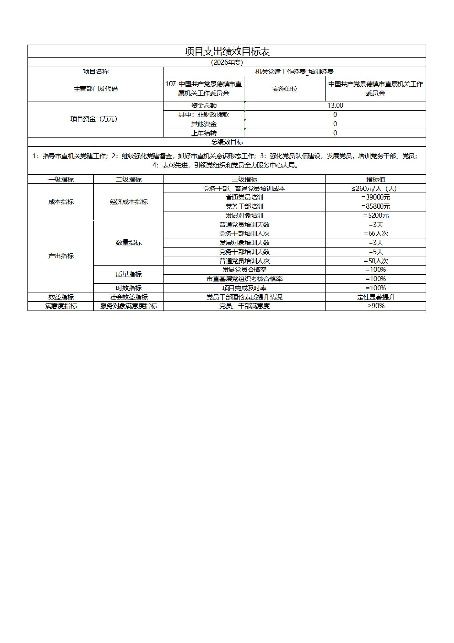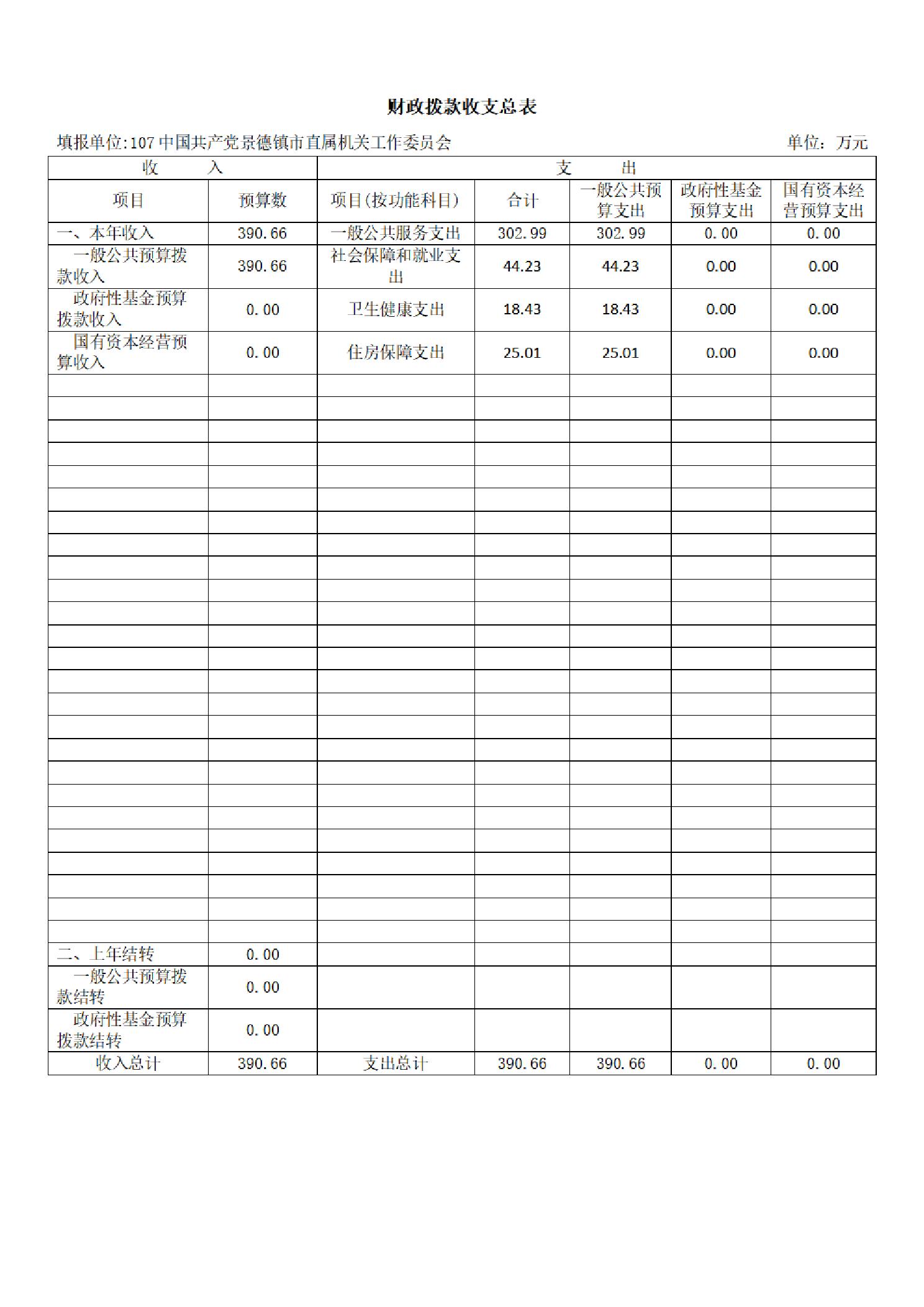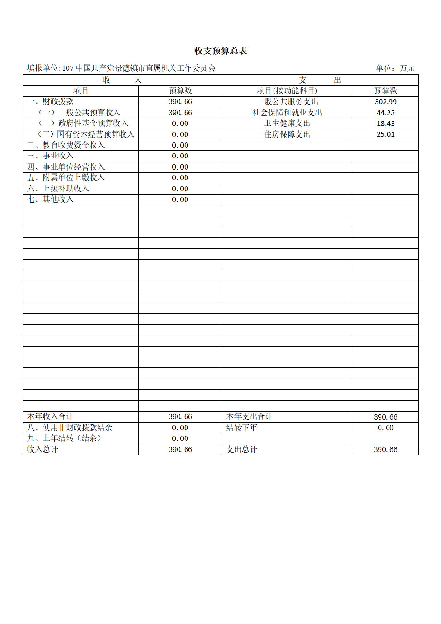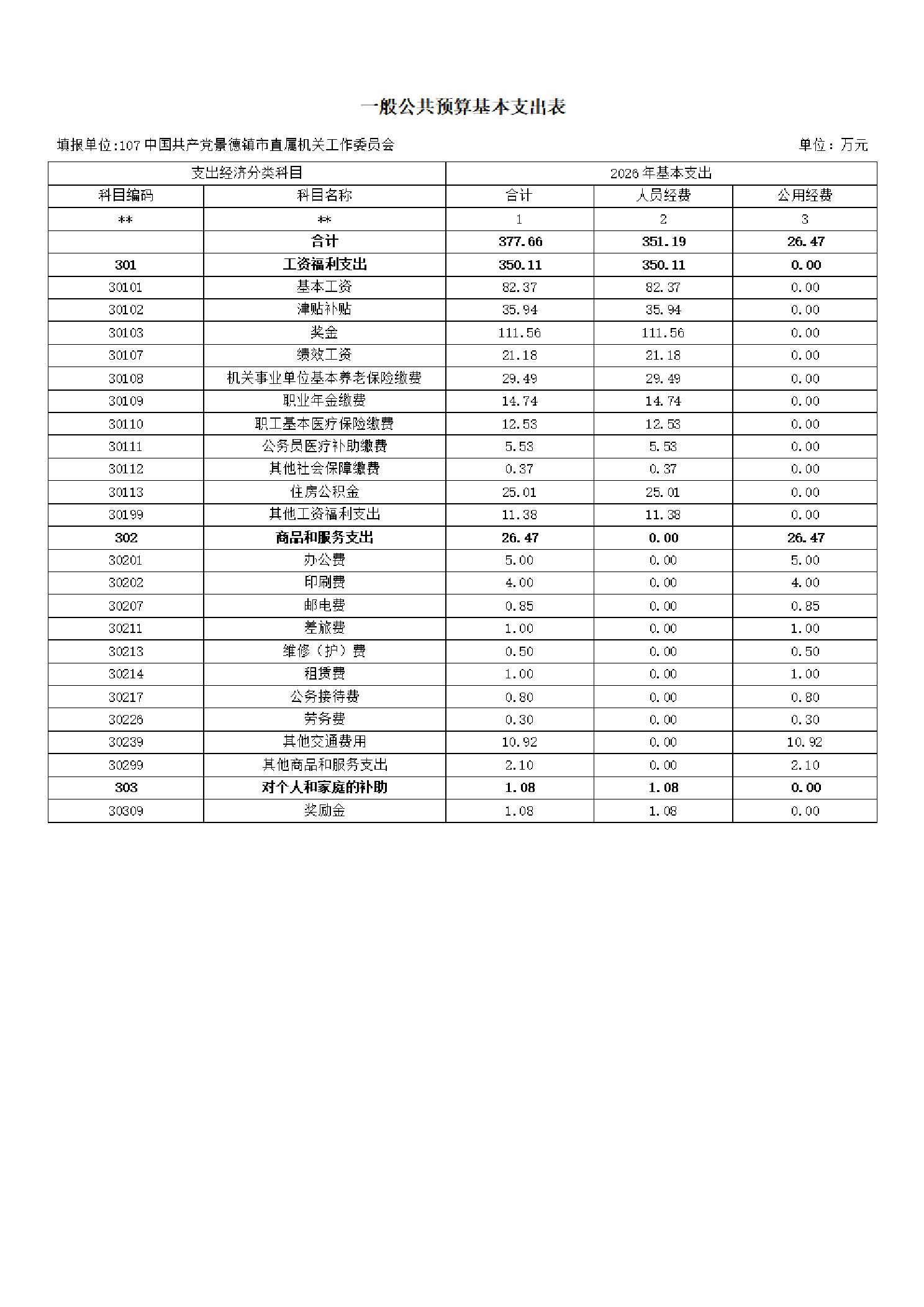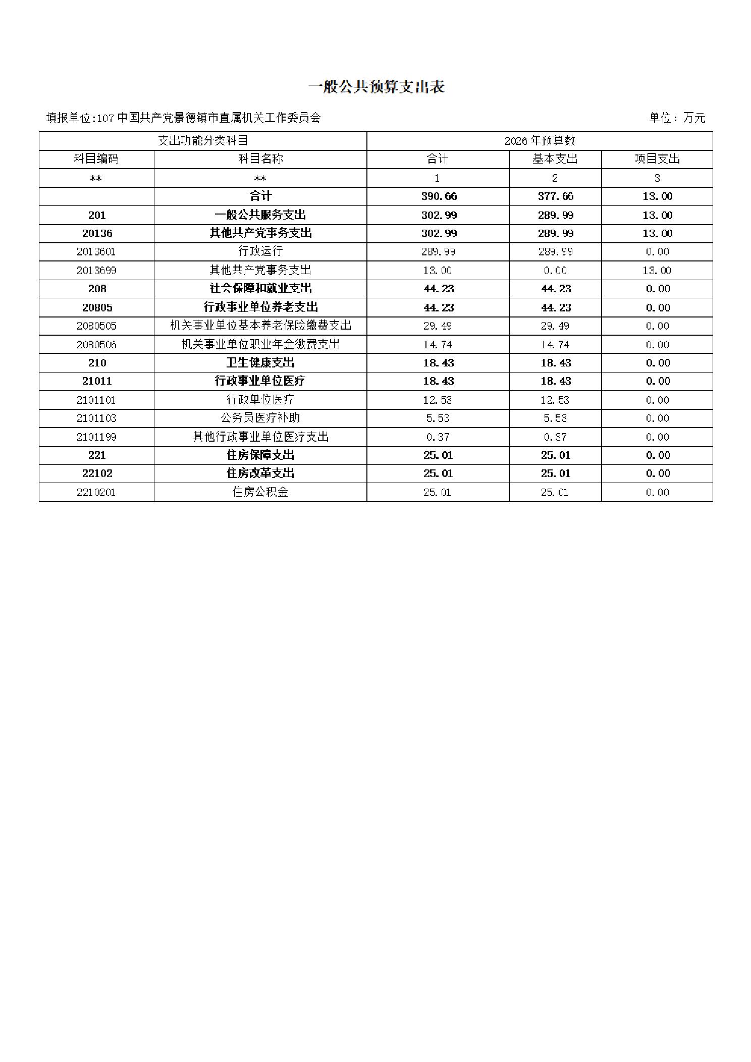 中国共产党景德镇市直属机关工作委员会2026年部门预算