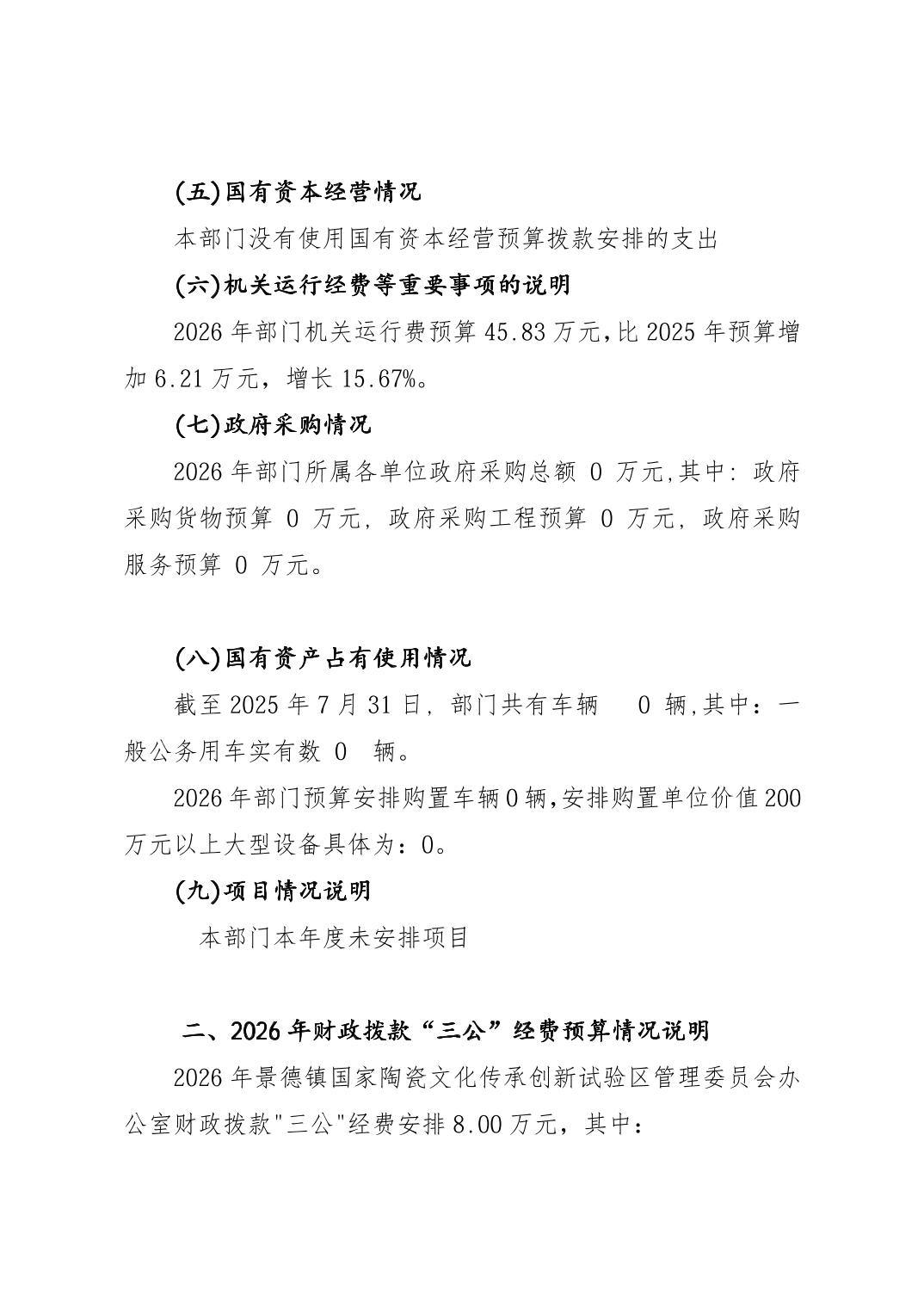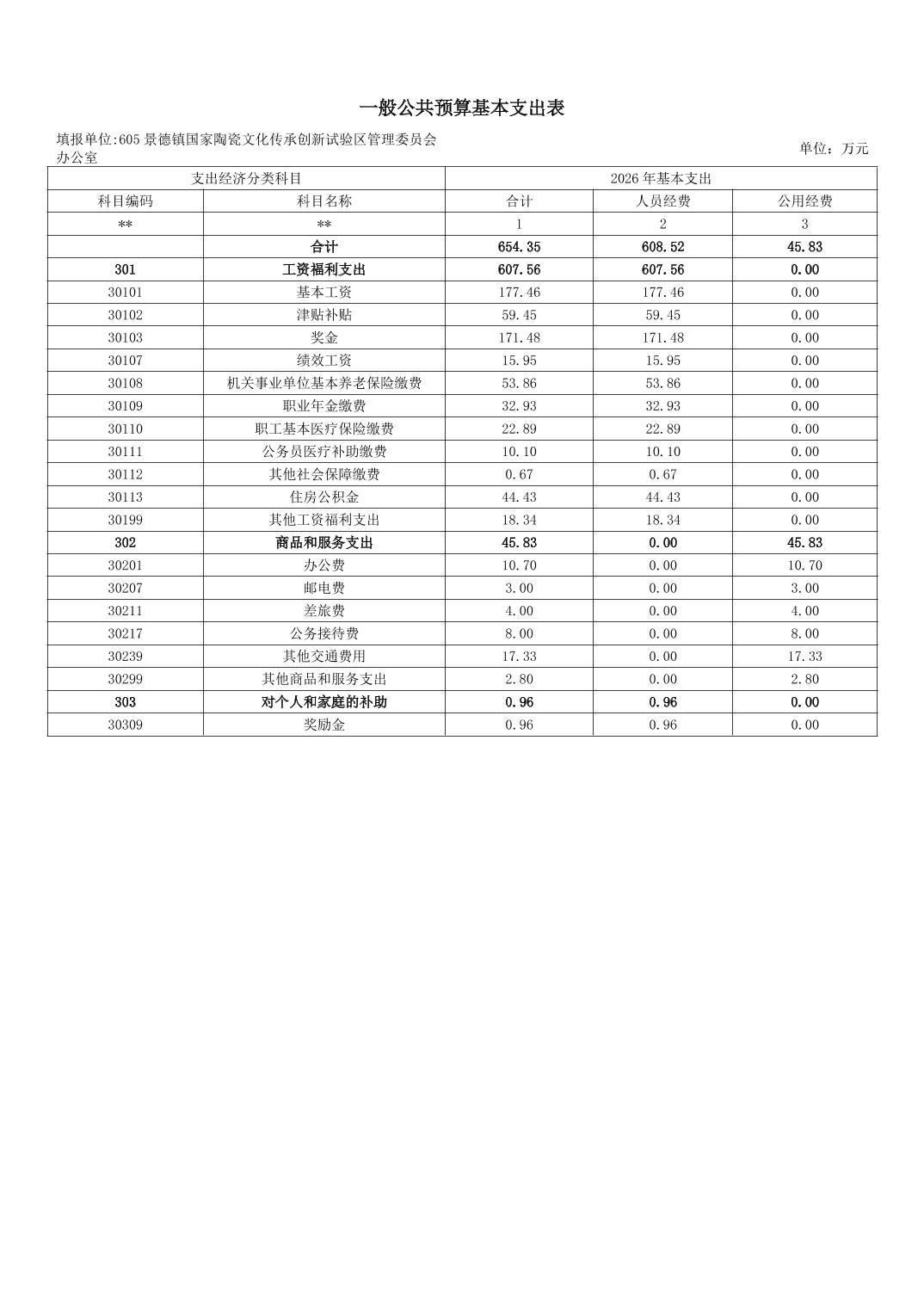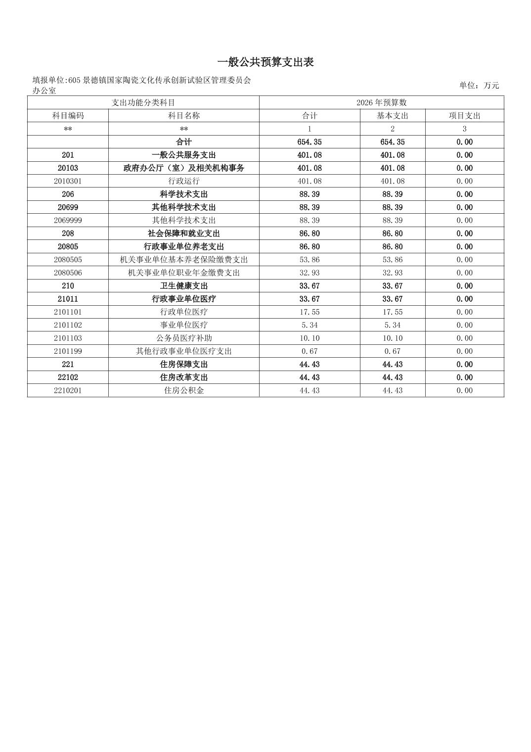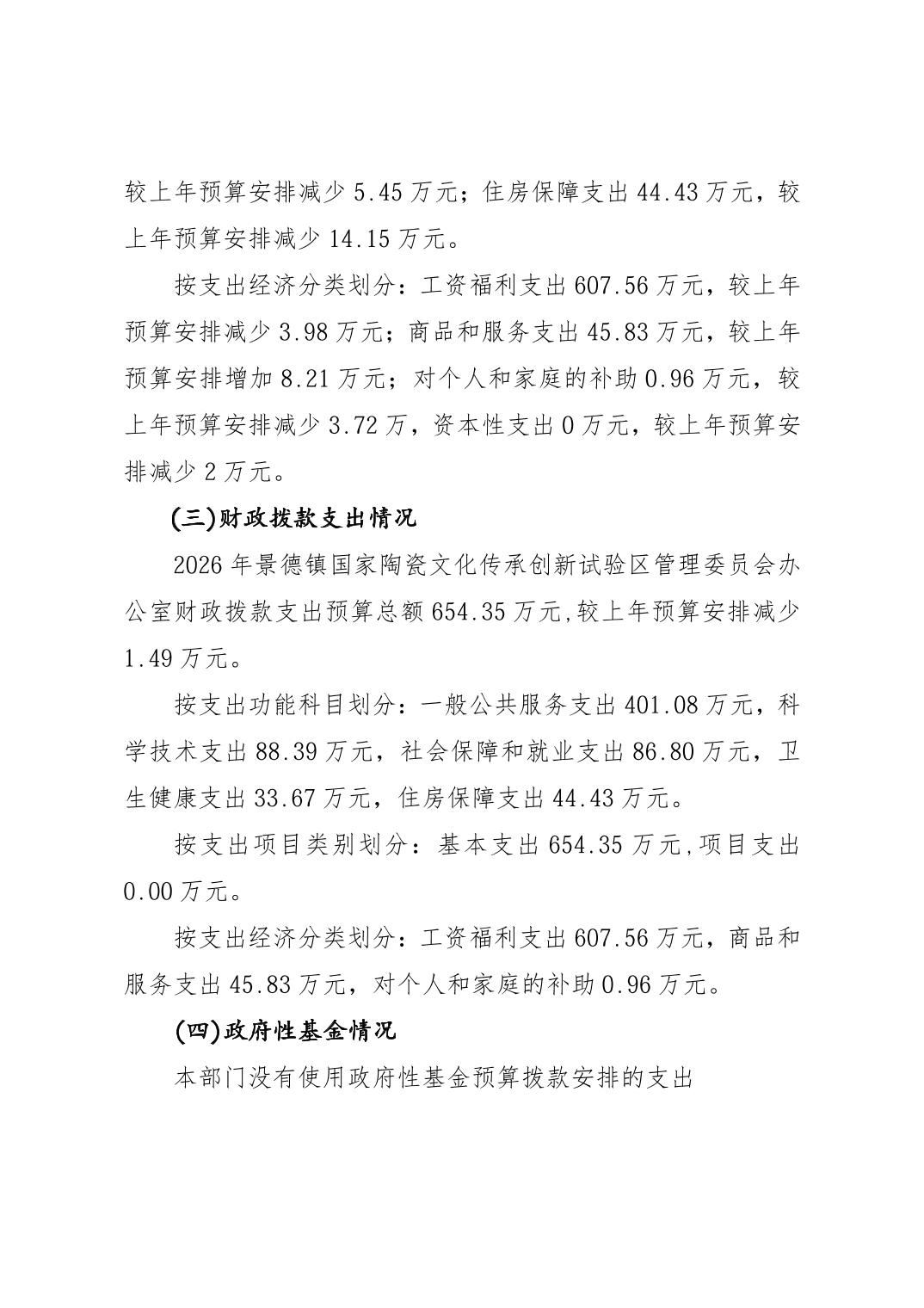 景德镇国家陶瓷文化传承创新试验区管理委员会办公室2026年部门预算