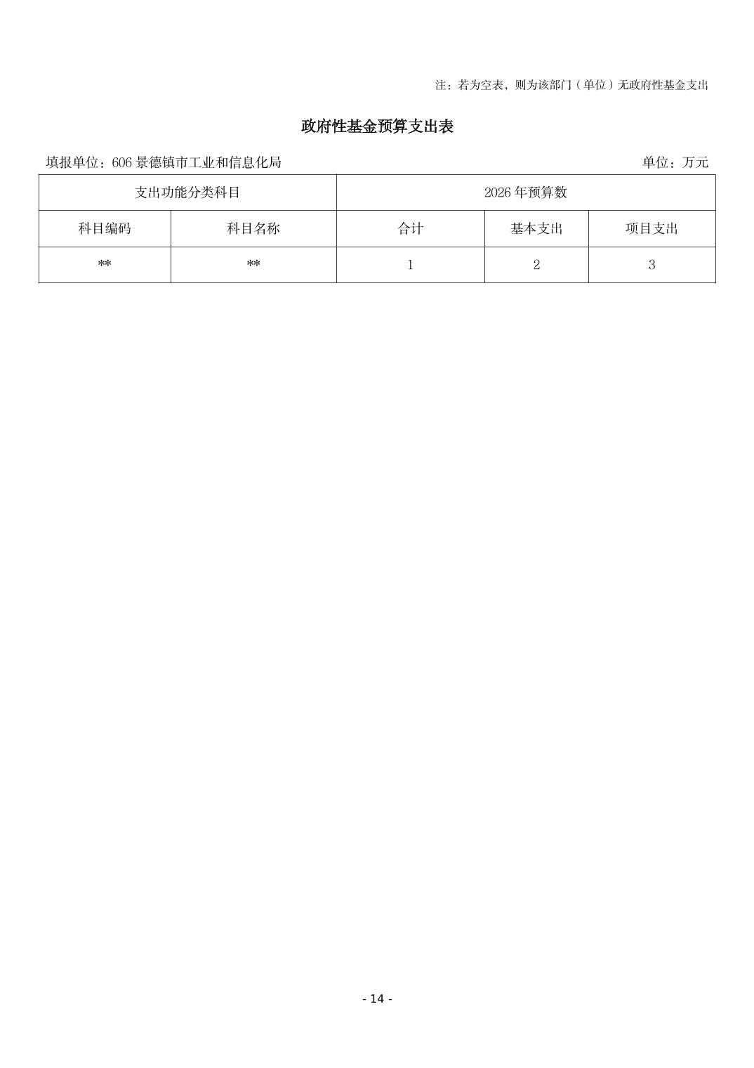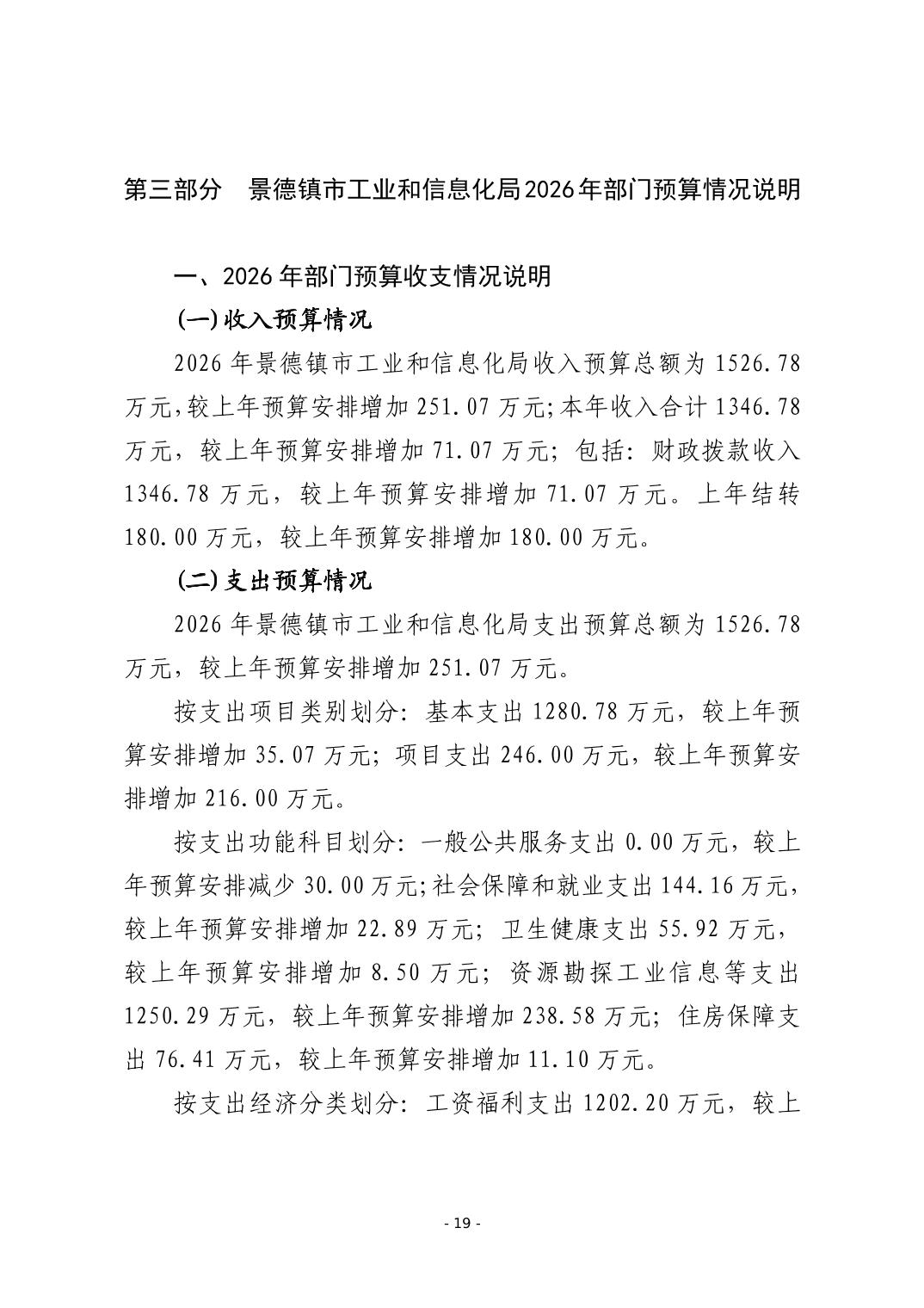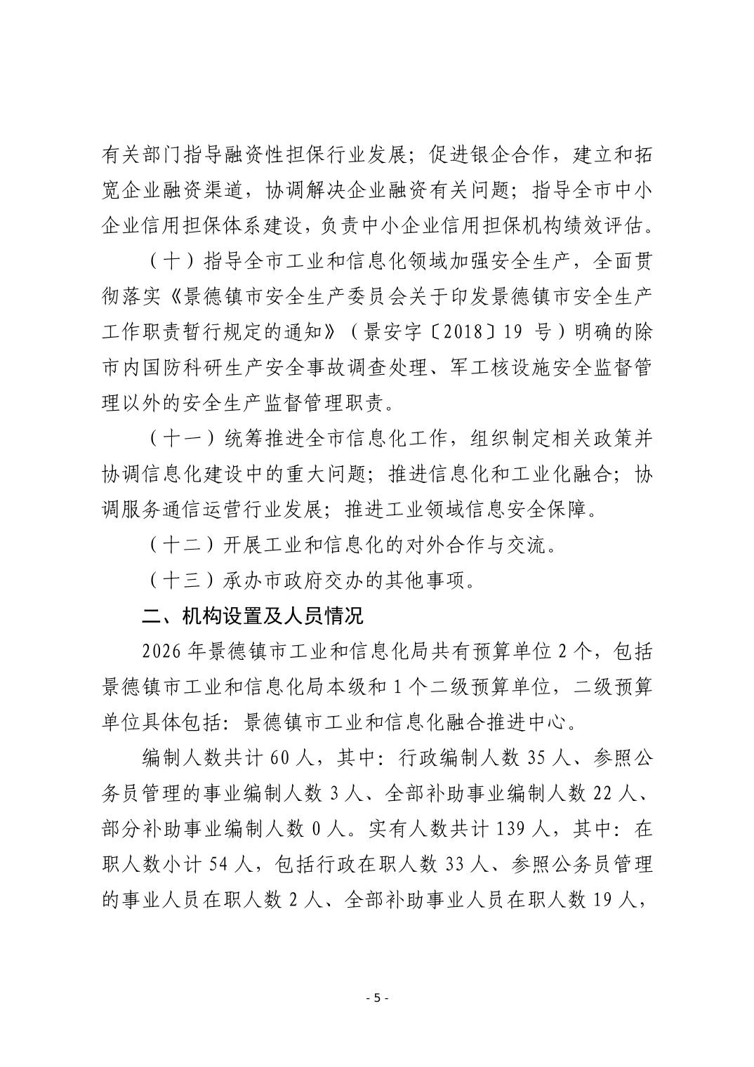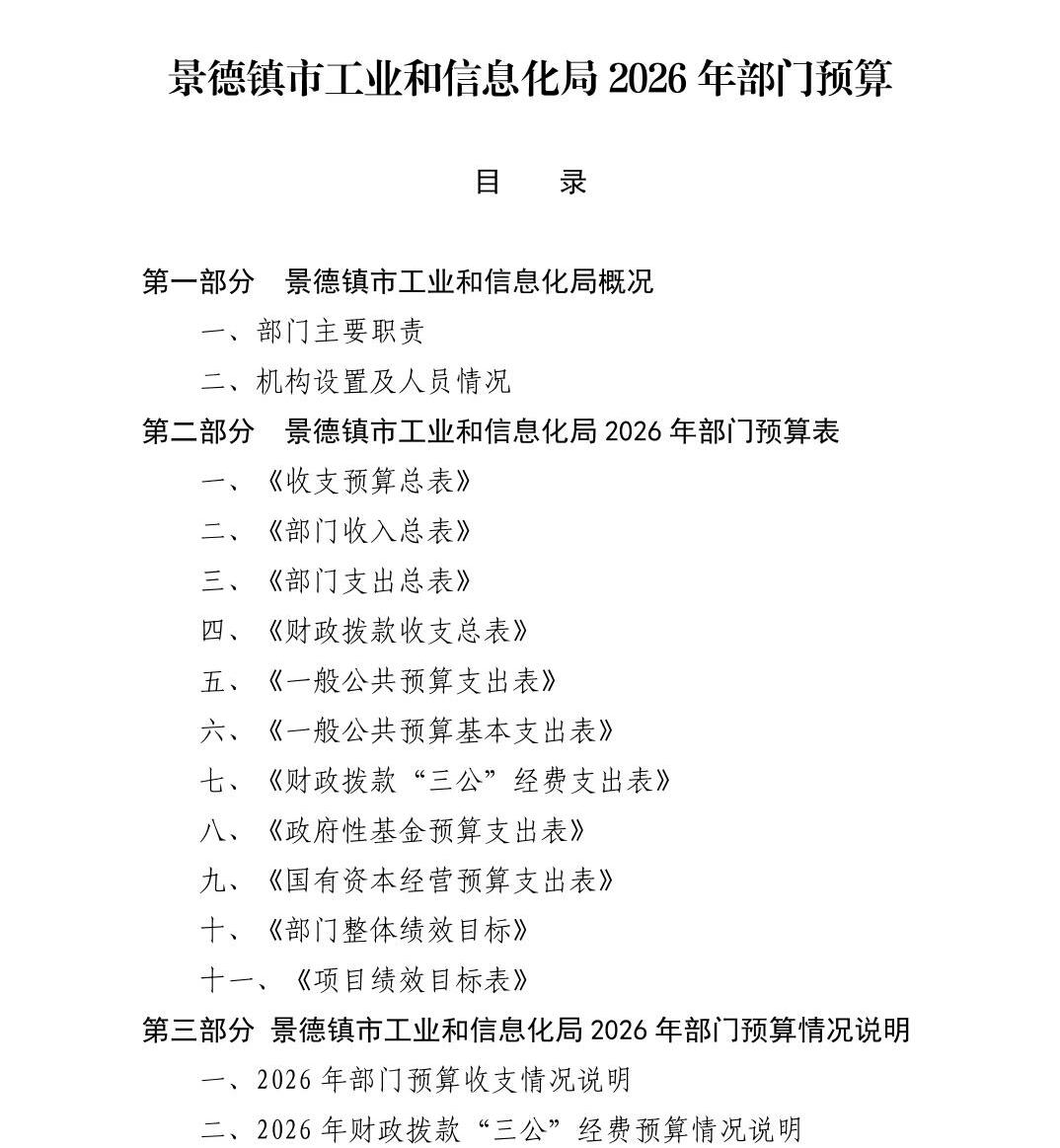 景德镇市工业和信息化局2026年部门预算