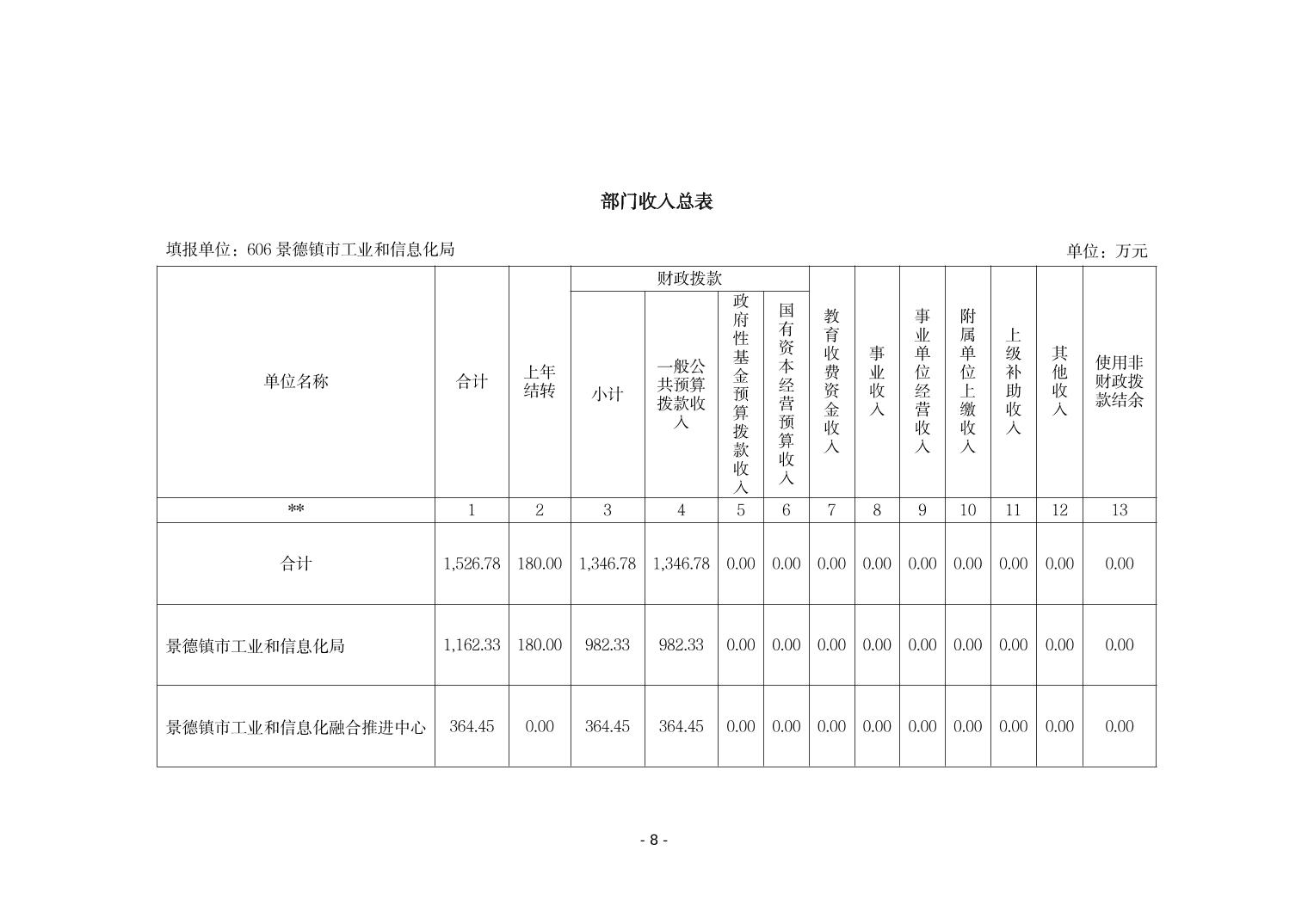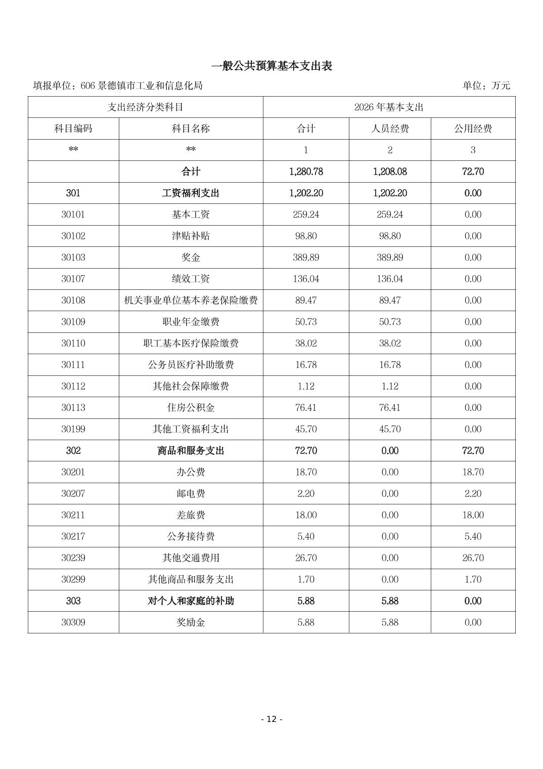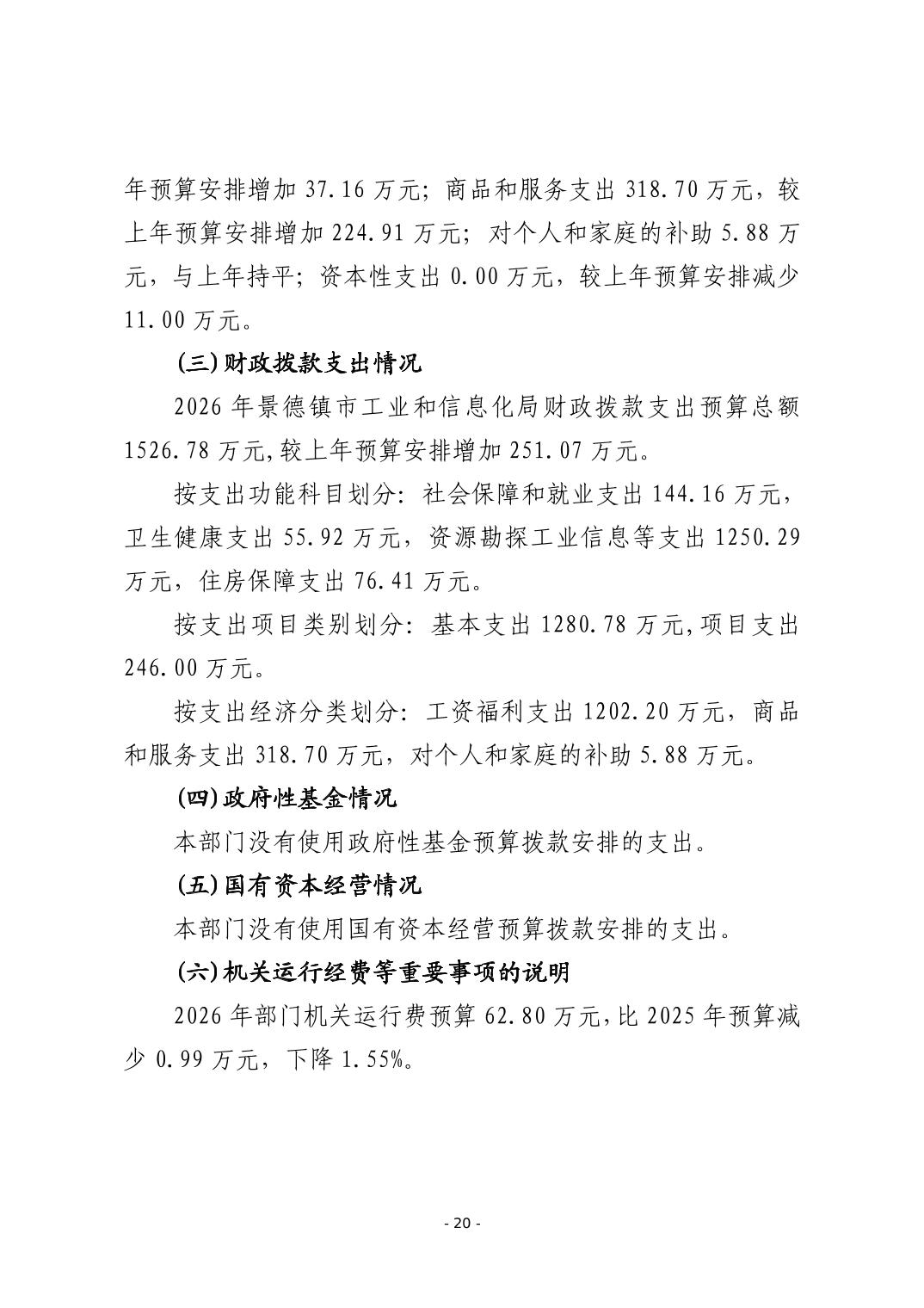 景德镇市工业和信息化局2026年部门预算