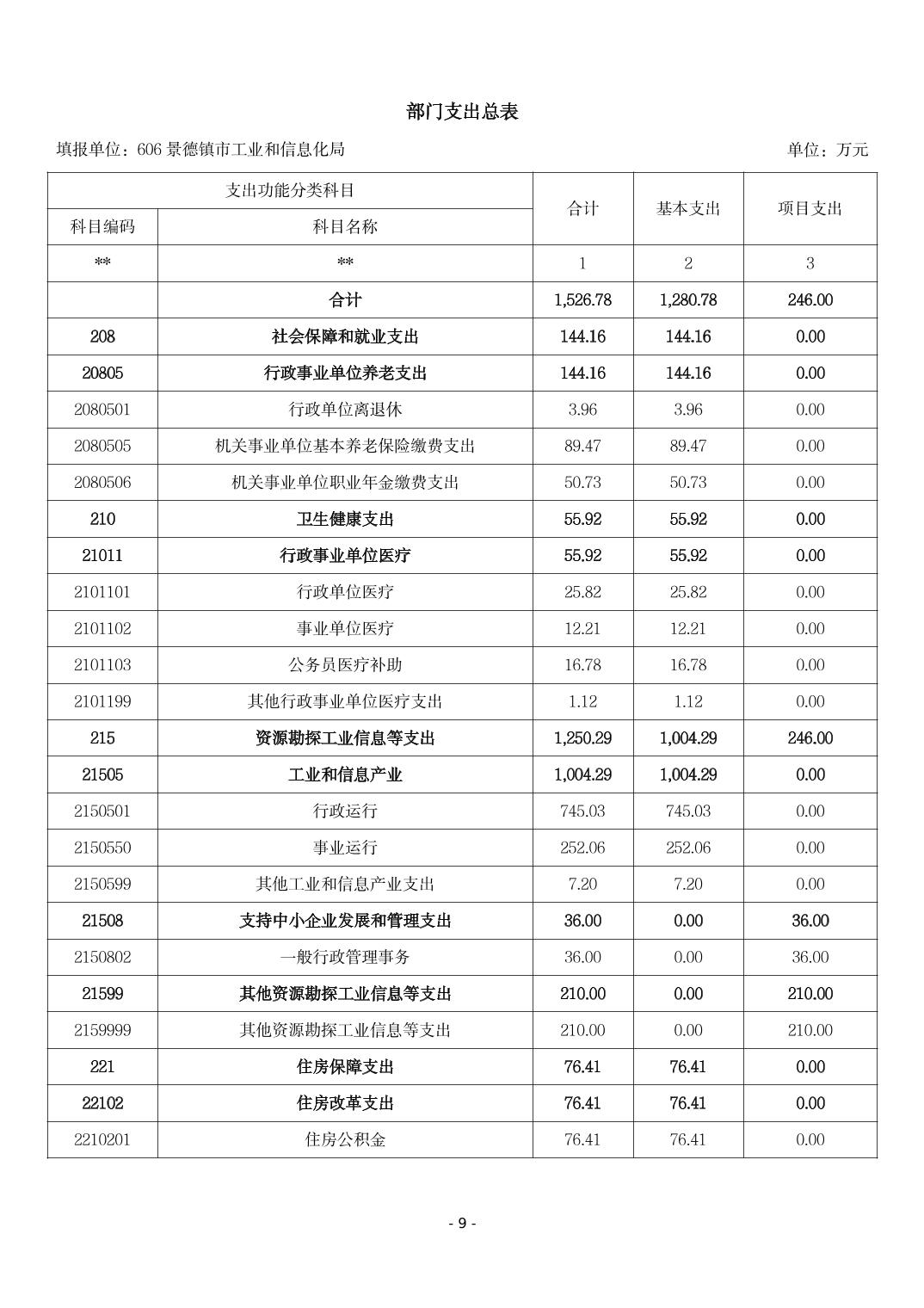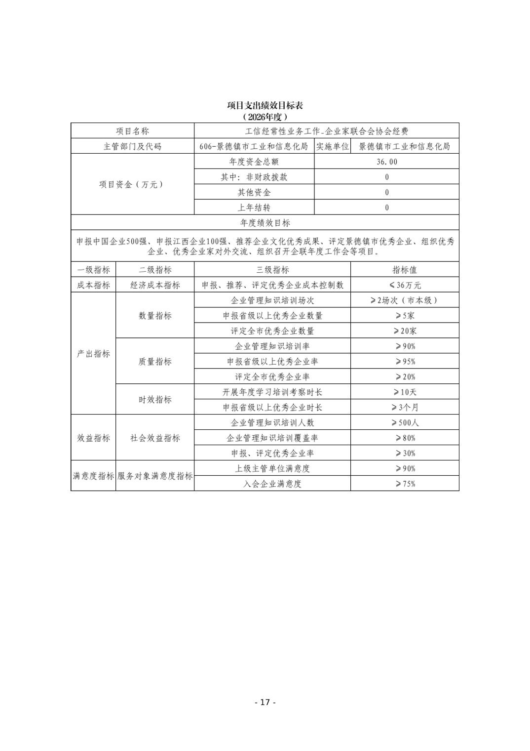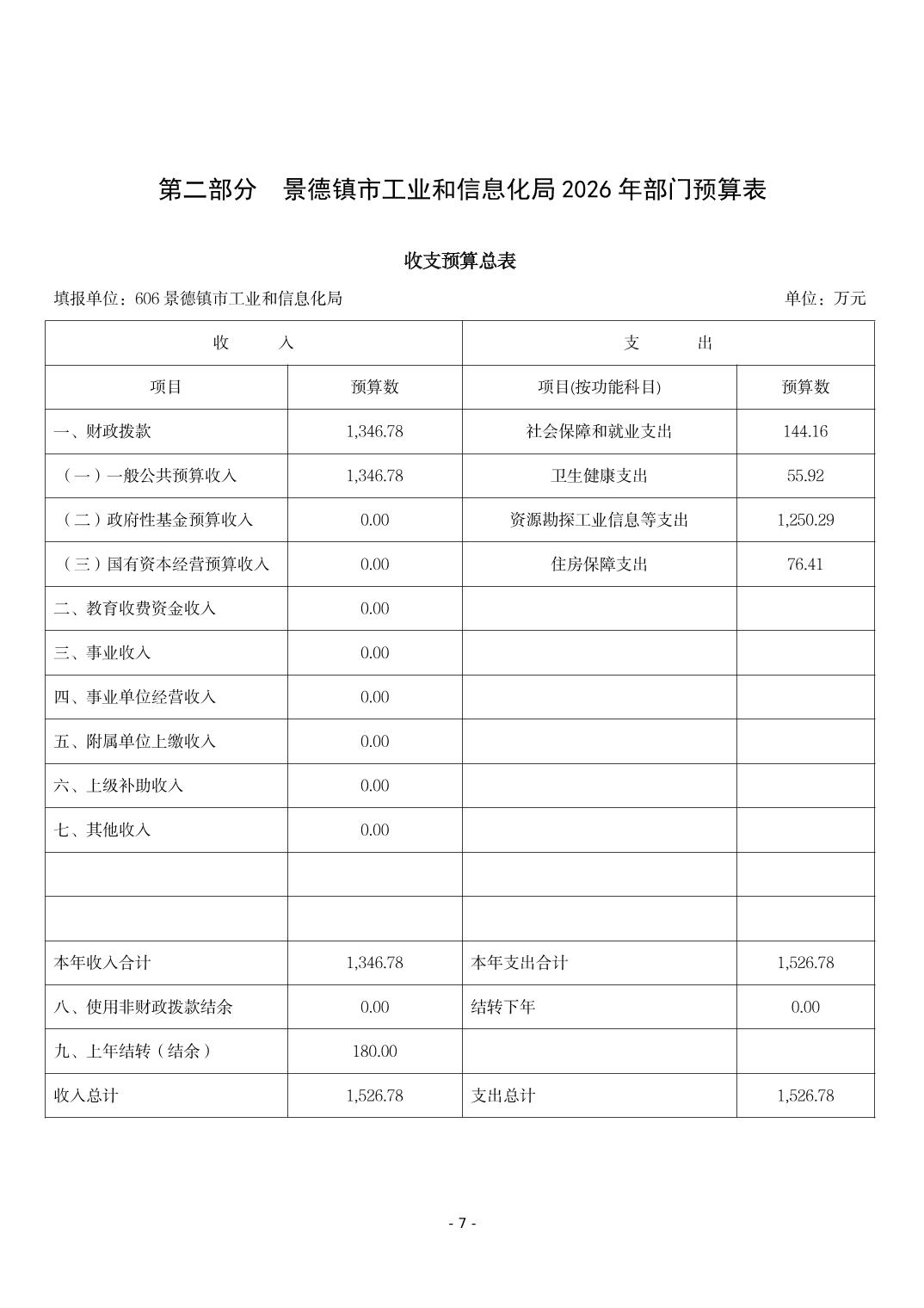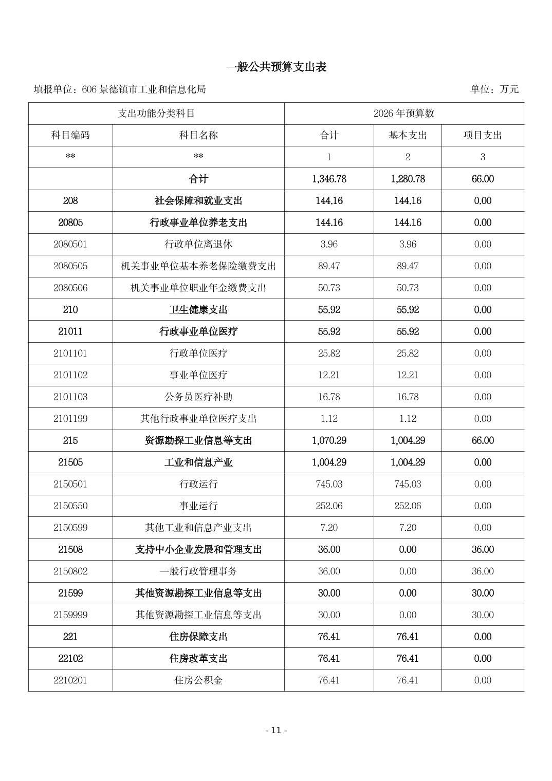 景德镇市工业和信息化局2026年部门预算