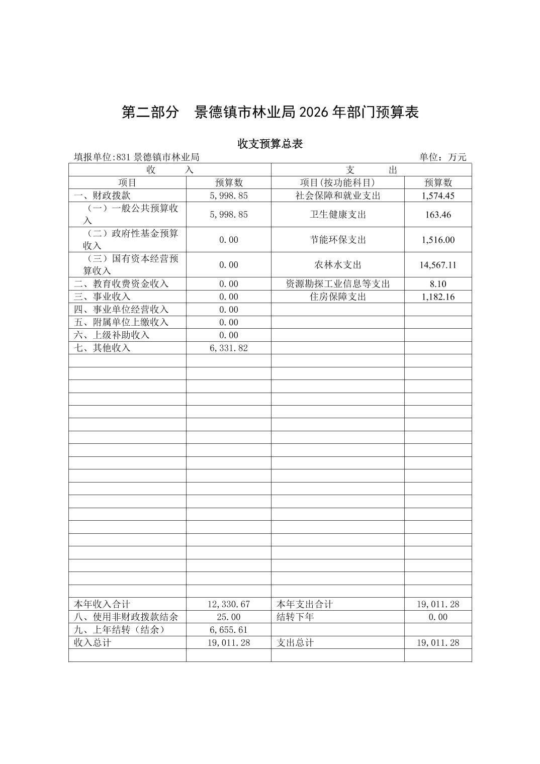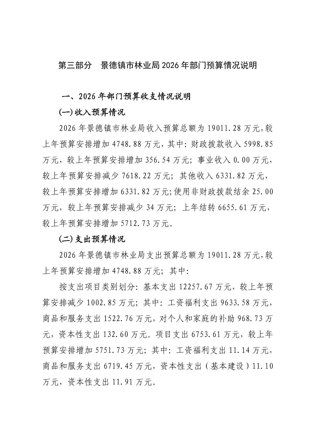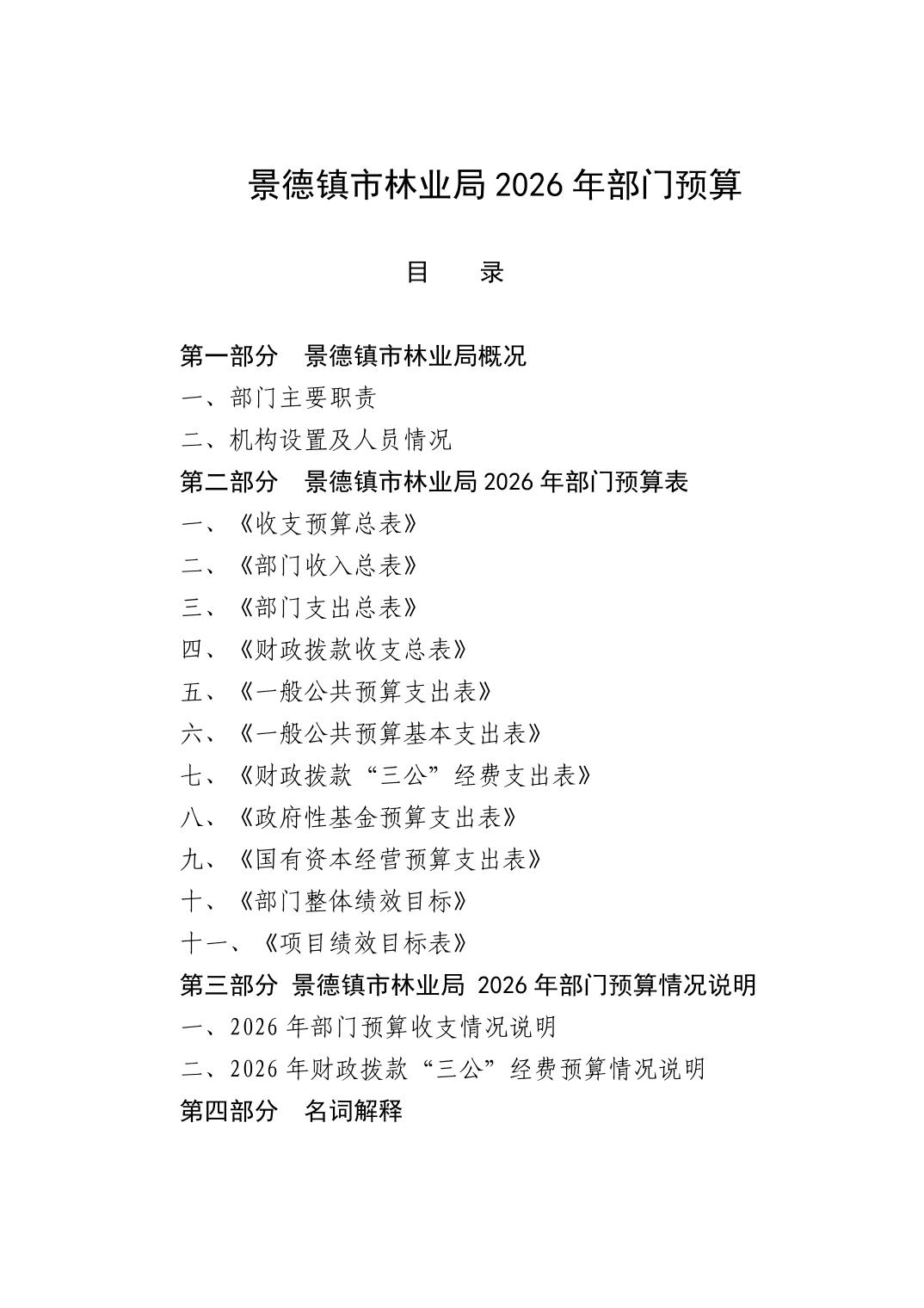 景德镇市林业局2026年部门预算