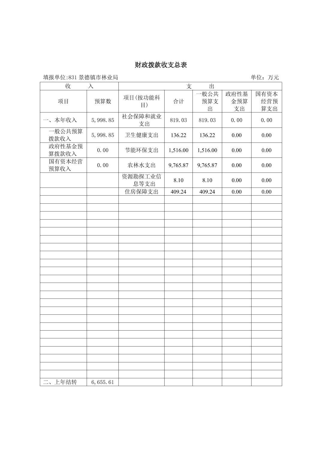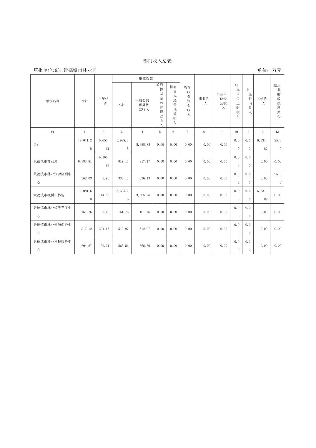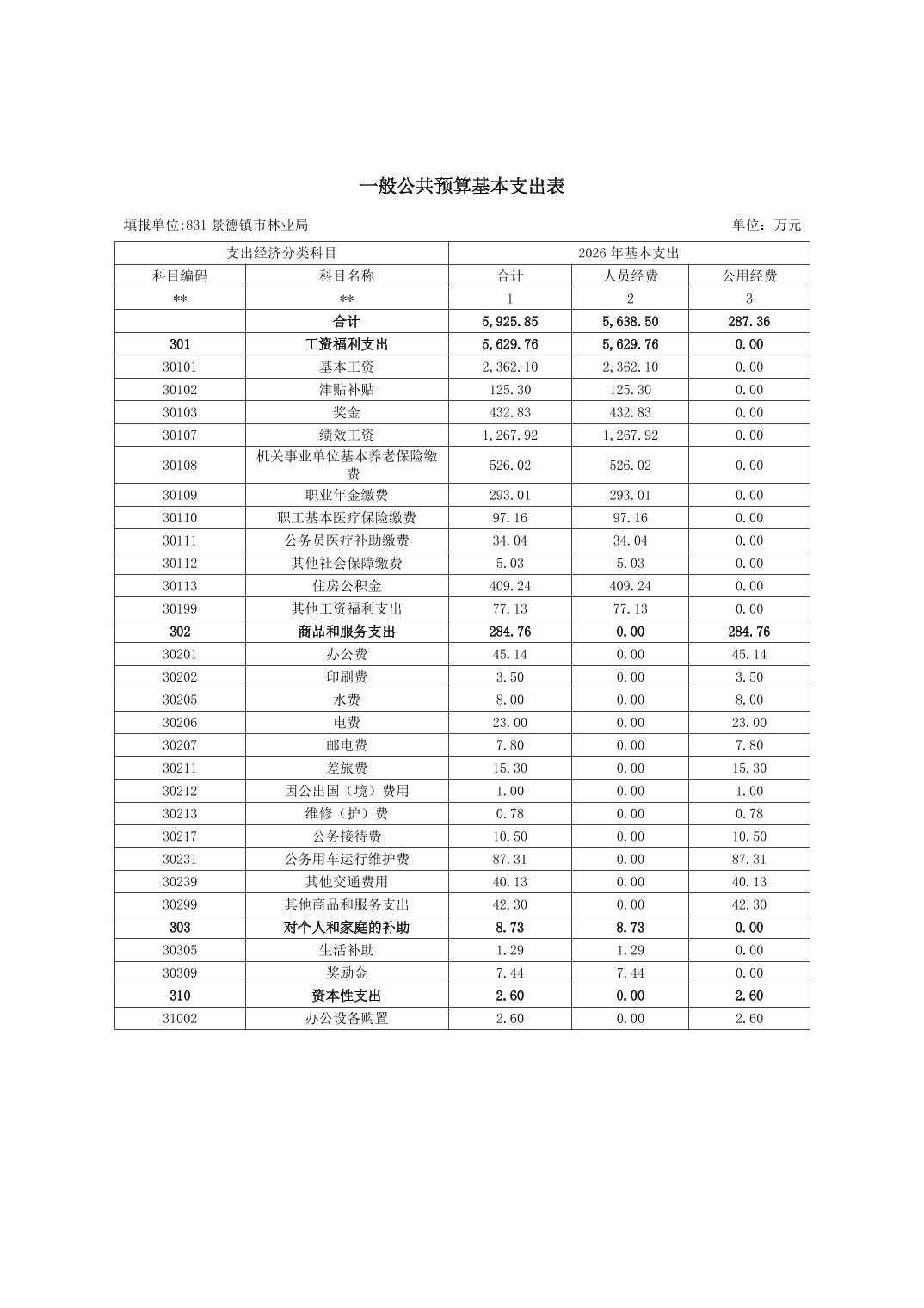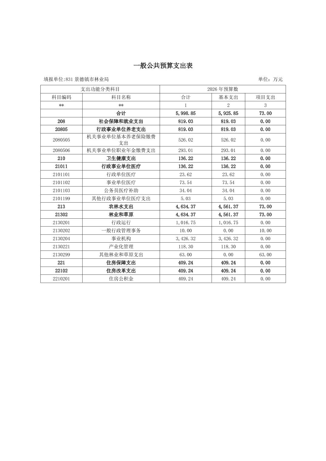 景德镇市林业局2026年部门预算