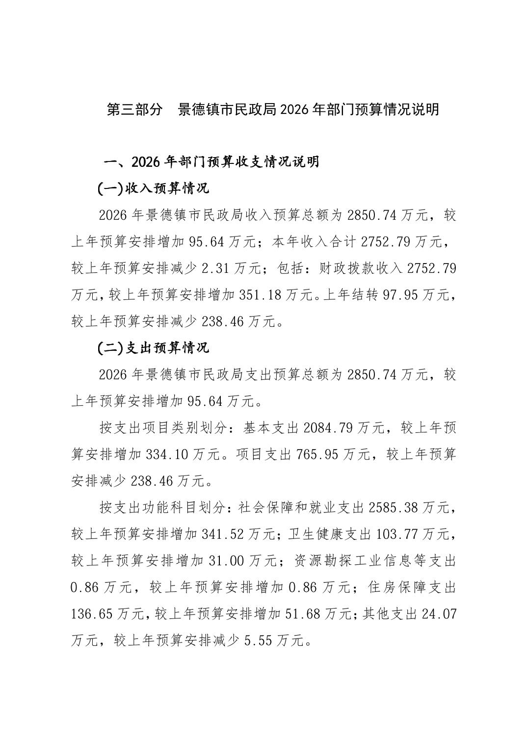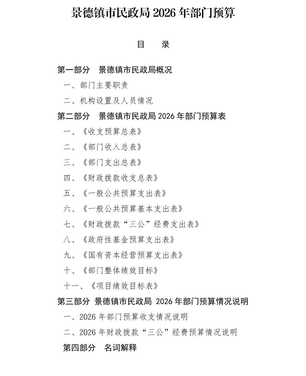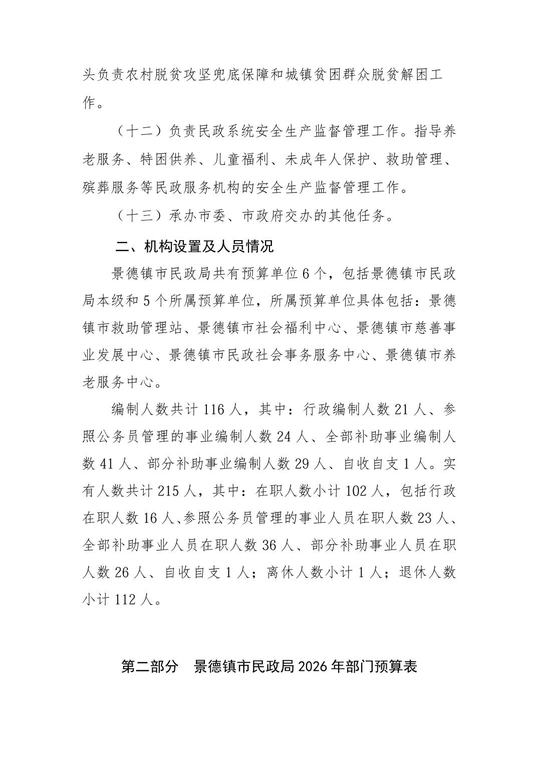 景德镇市民政局2026年部门预算