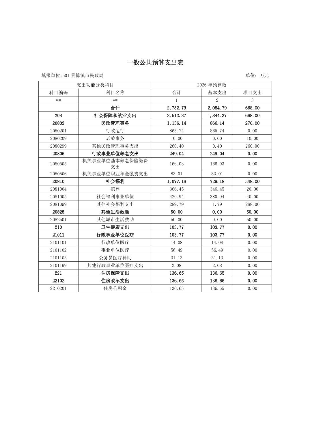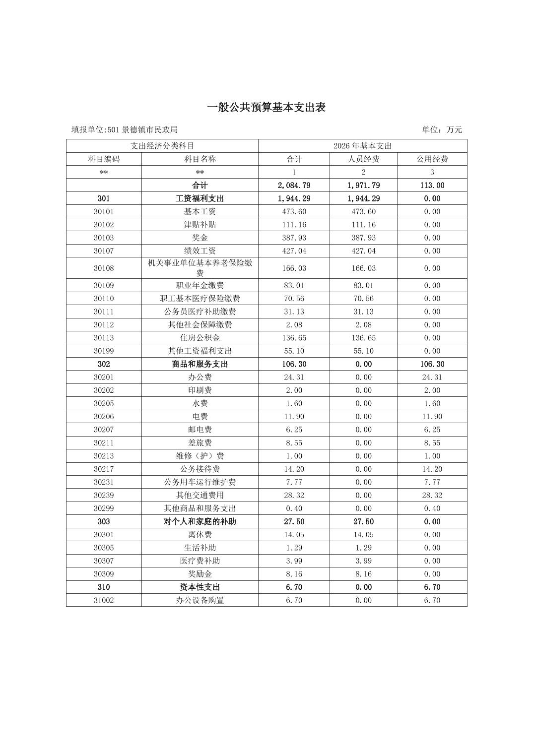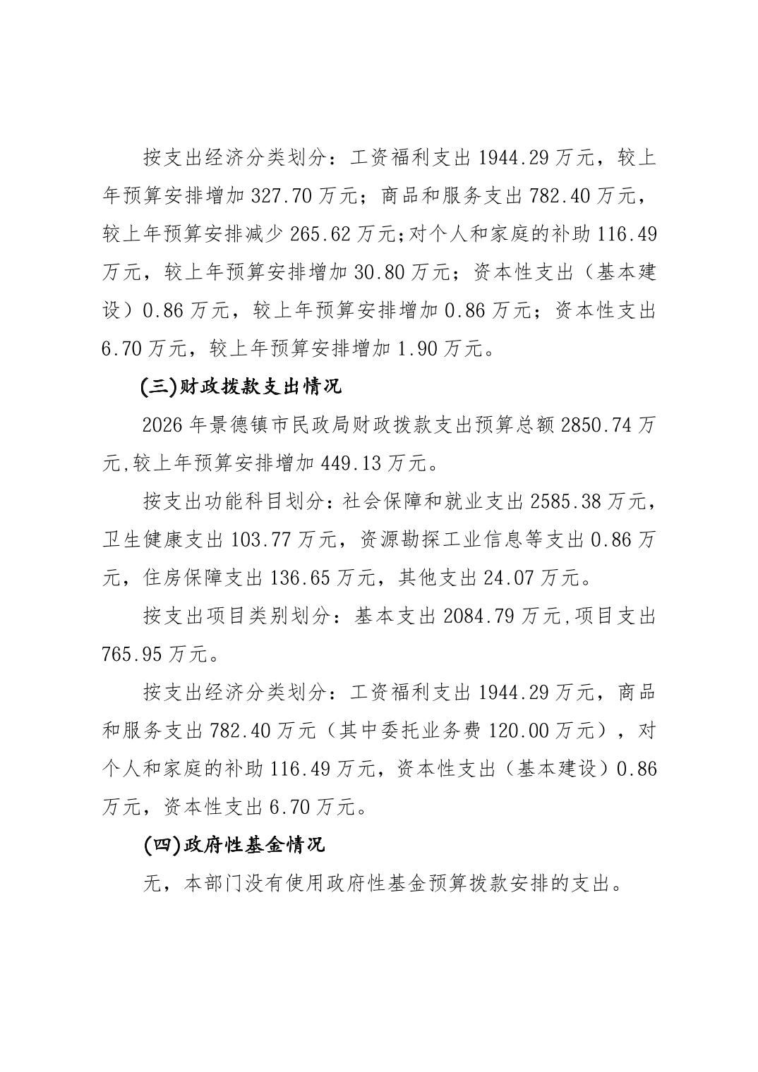 景德镇市民政局2026年部门预算