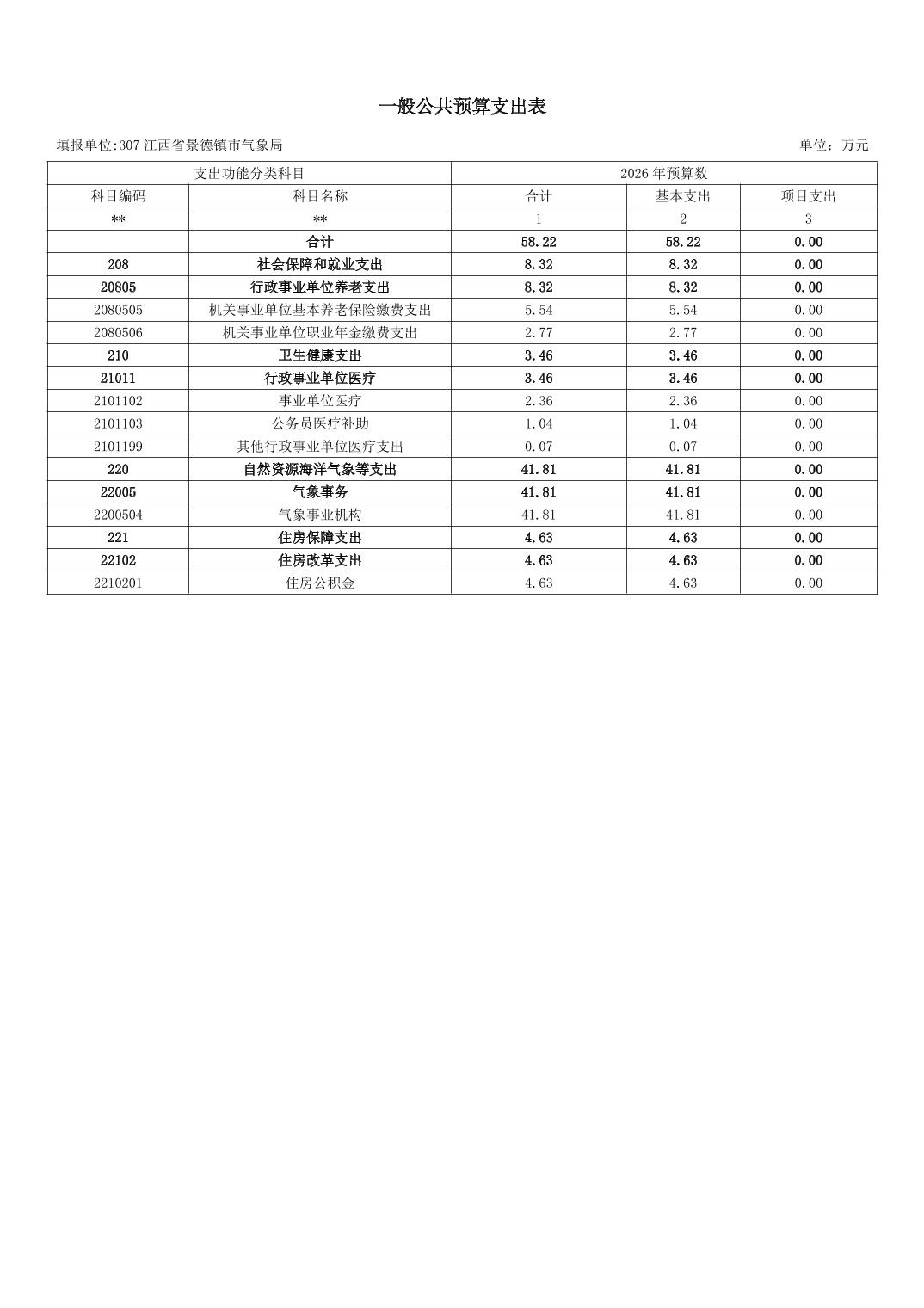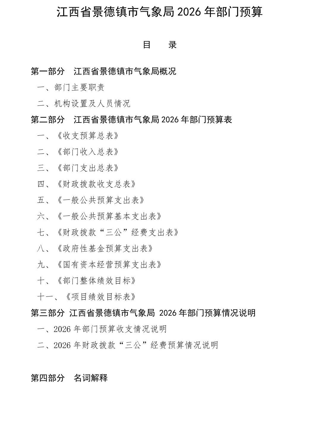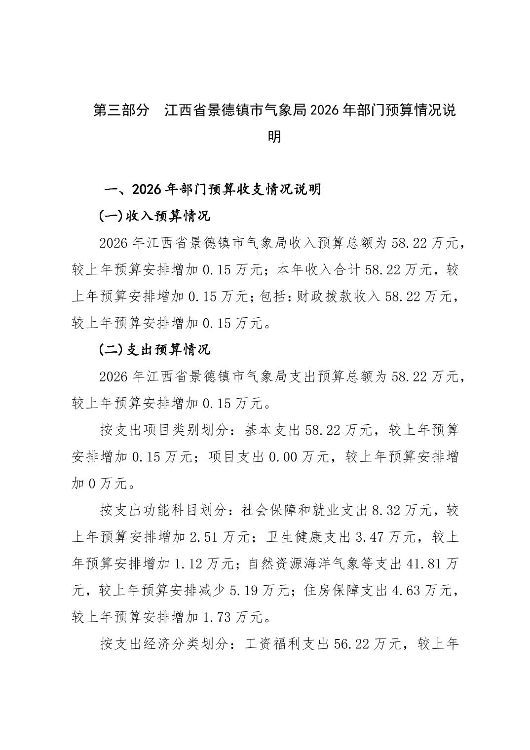 江西省景德镇市气象局2026年部门预算