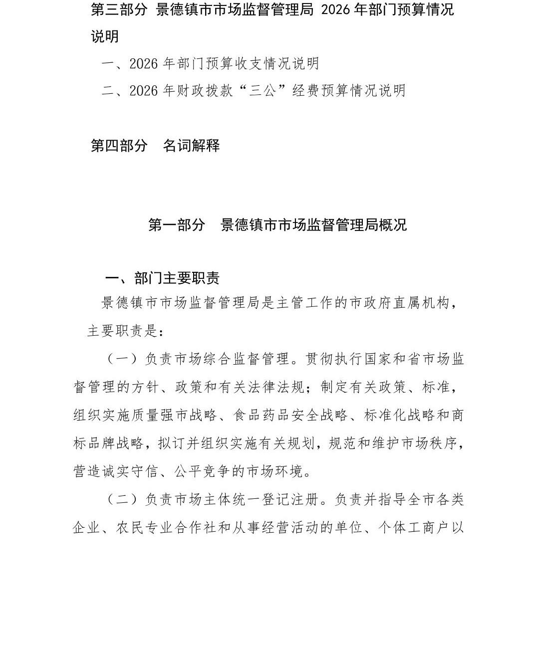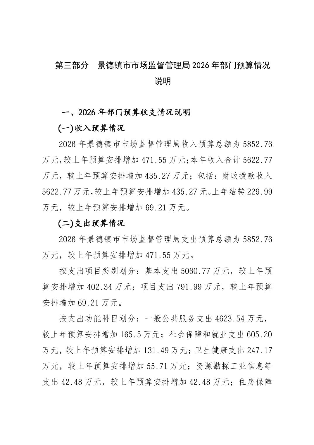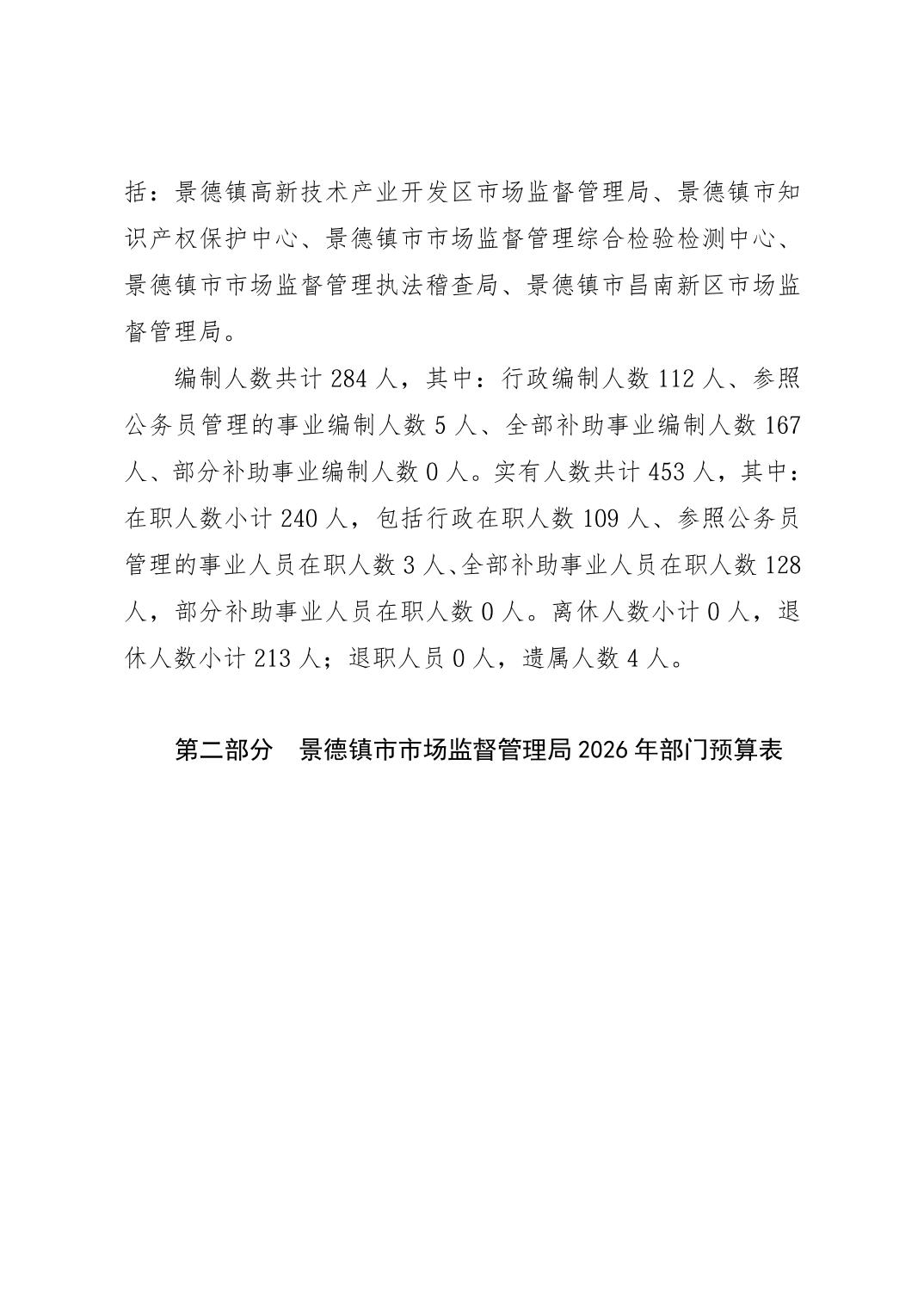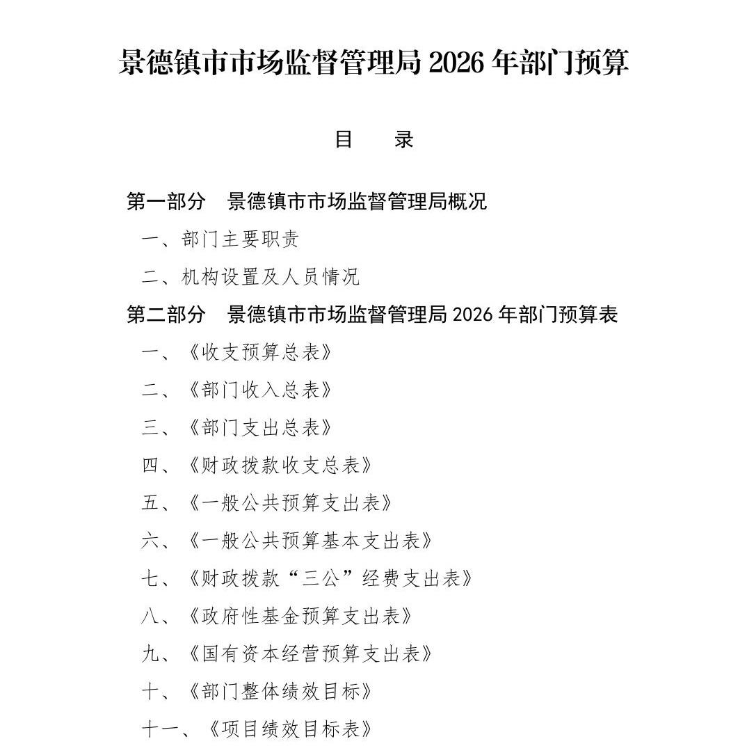 景德镇市市场监督管理局2026年部门预算