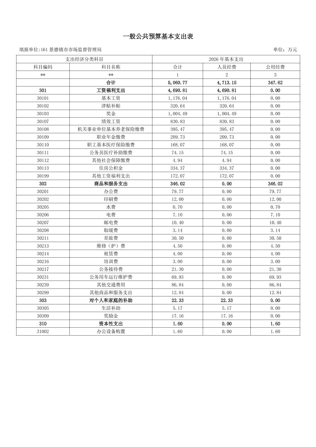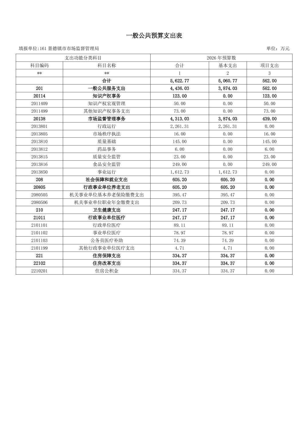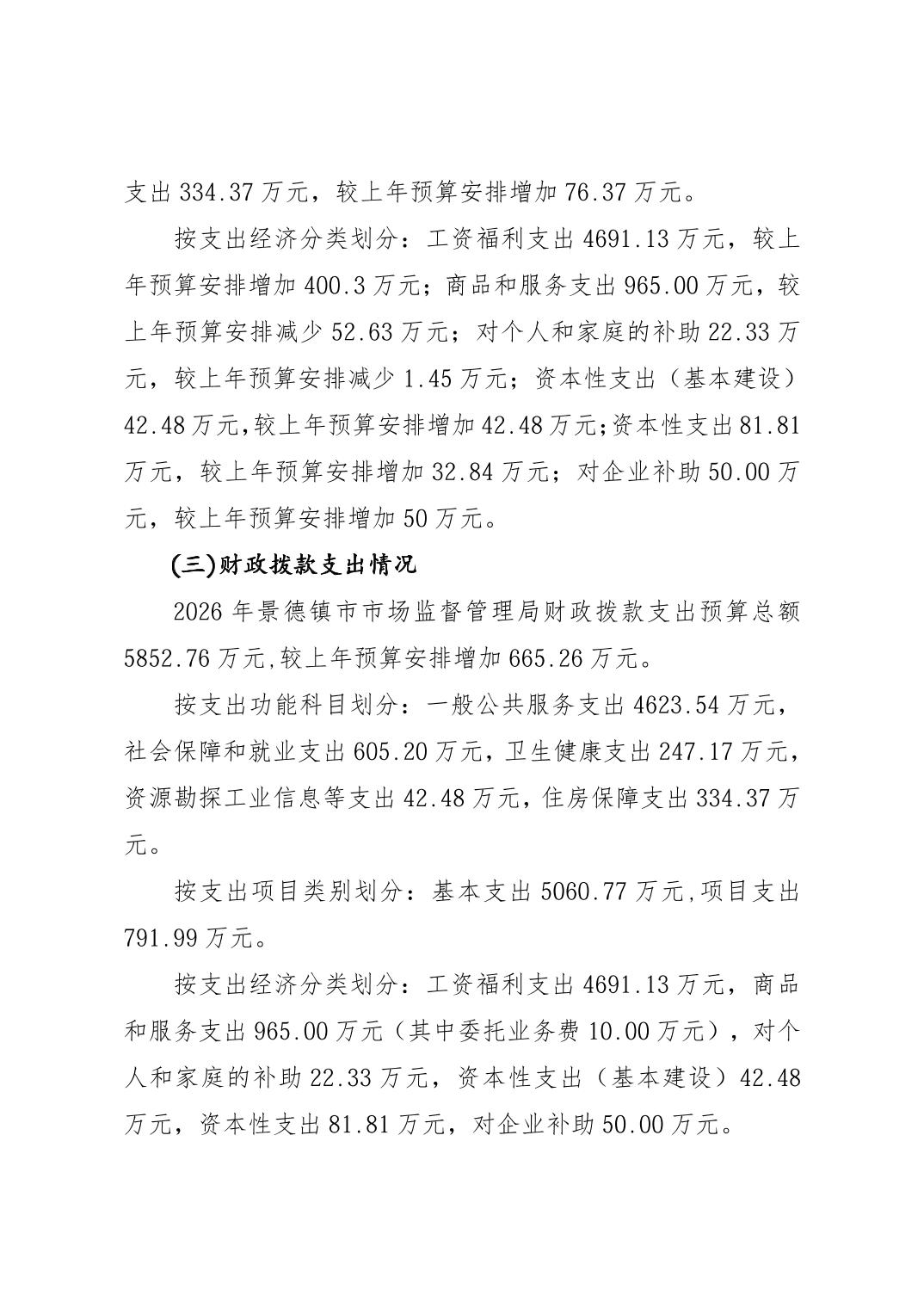 景德镇市市场监督管理局2026年部门预算