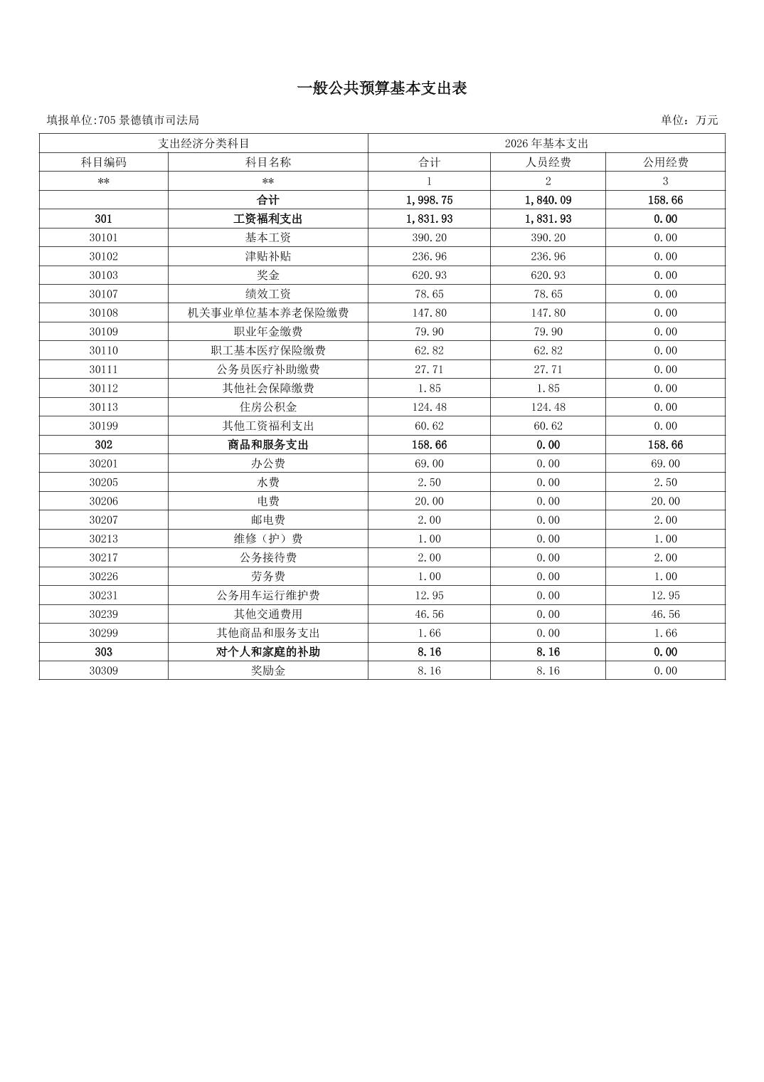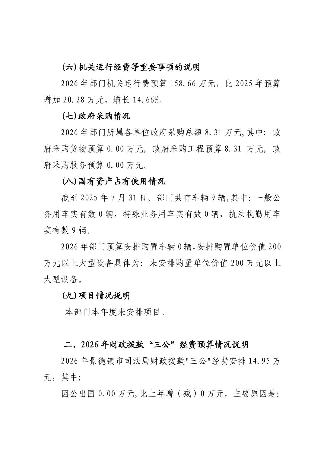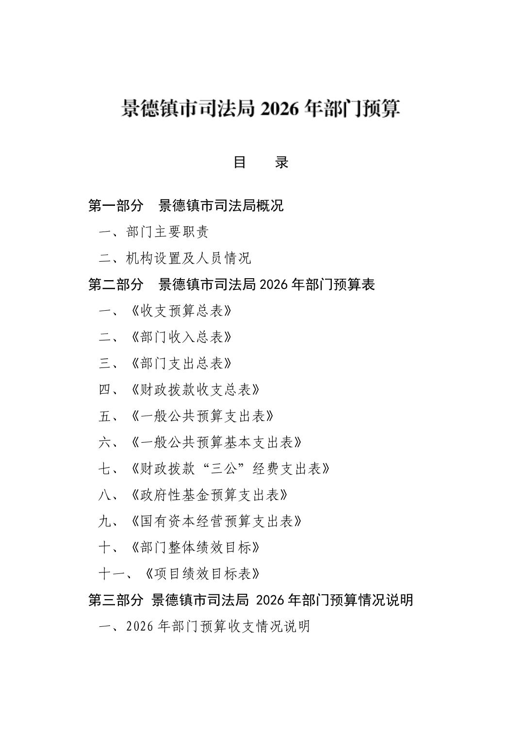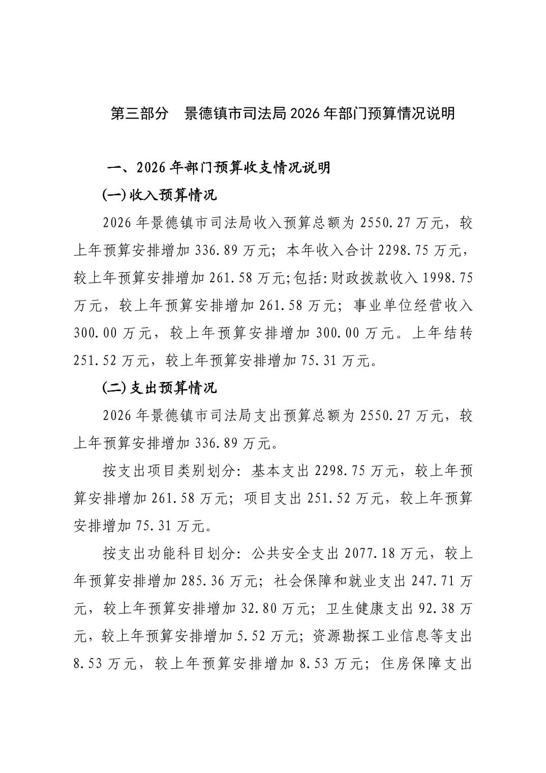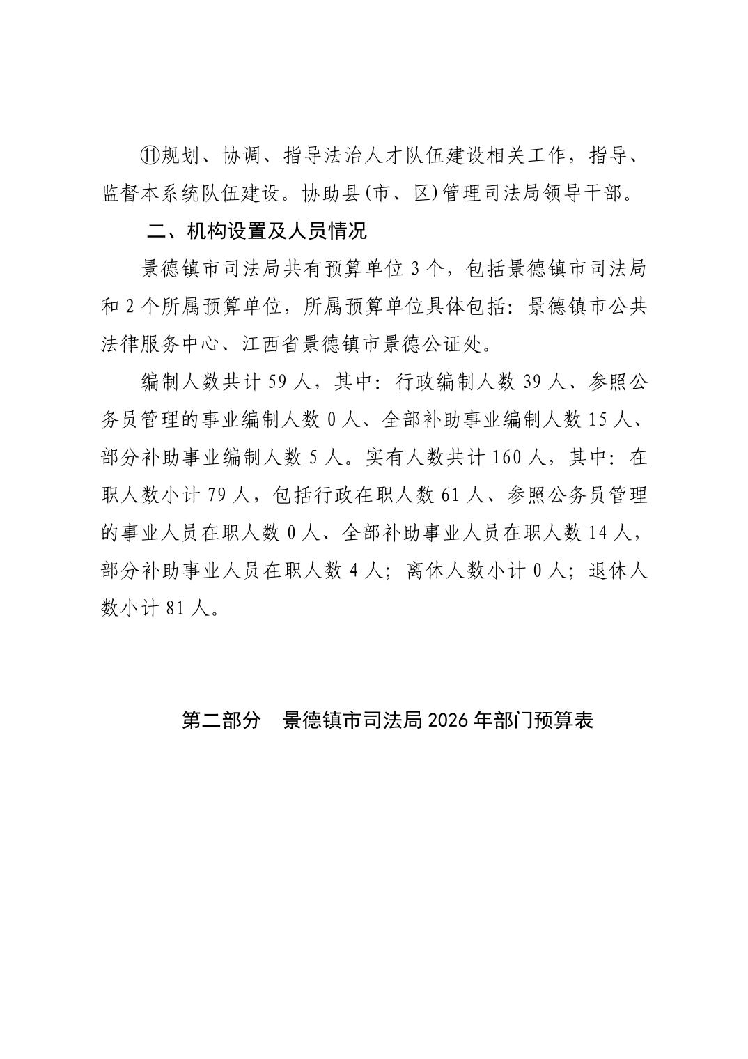 景德镇市司法局2026年部门预算