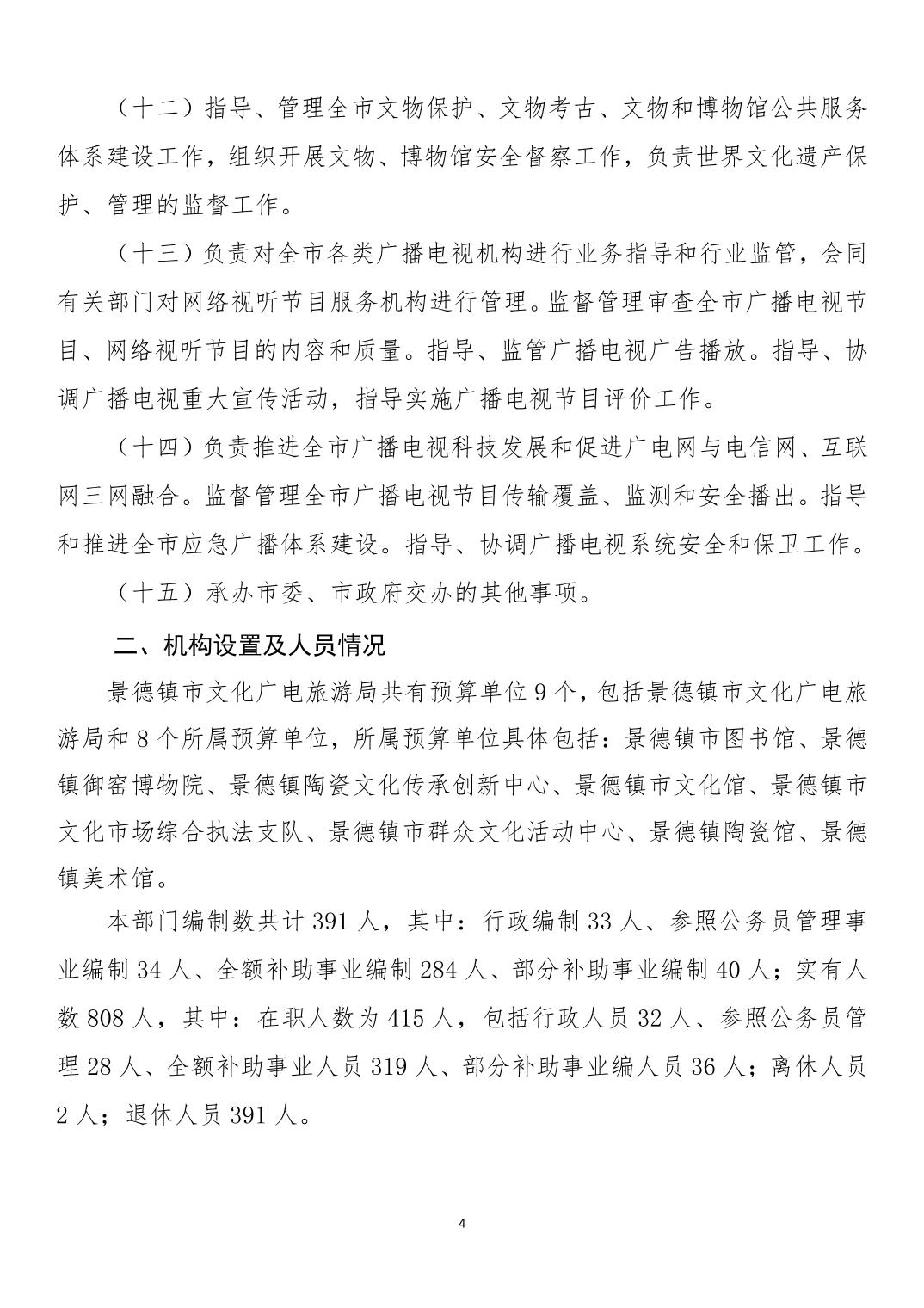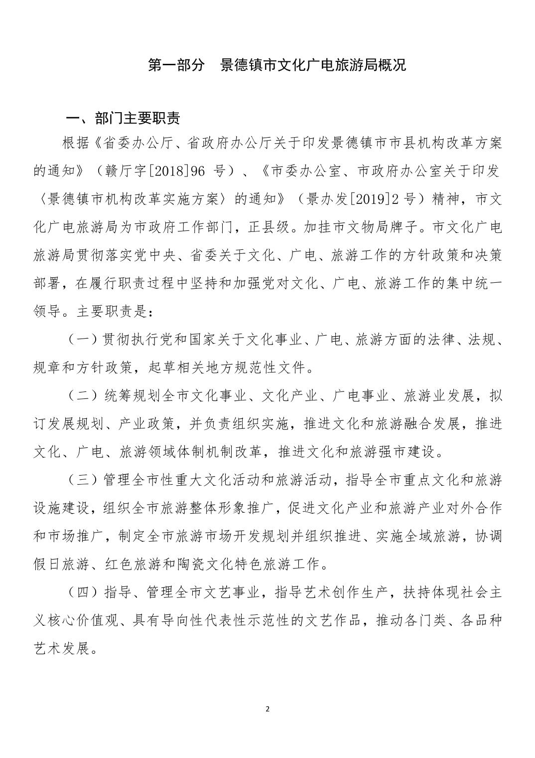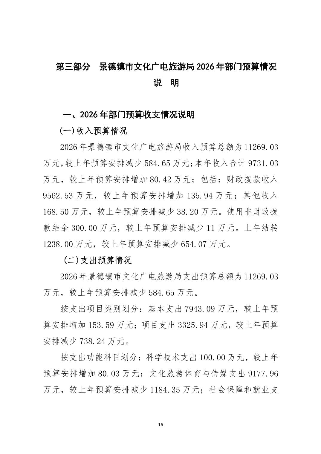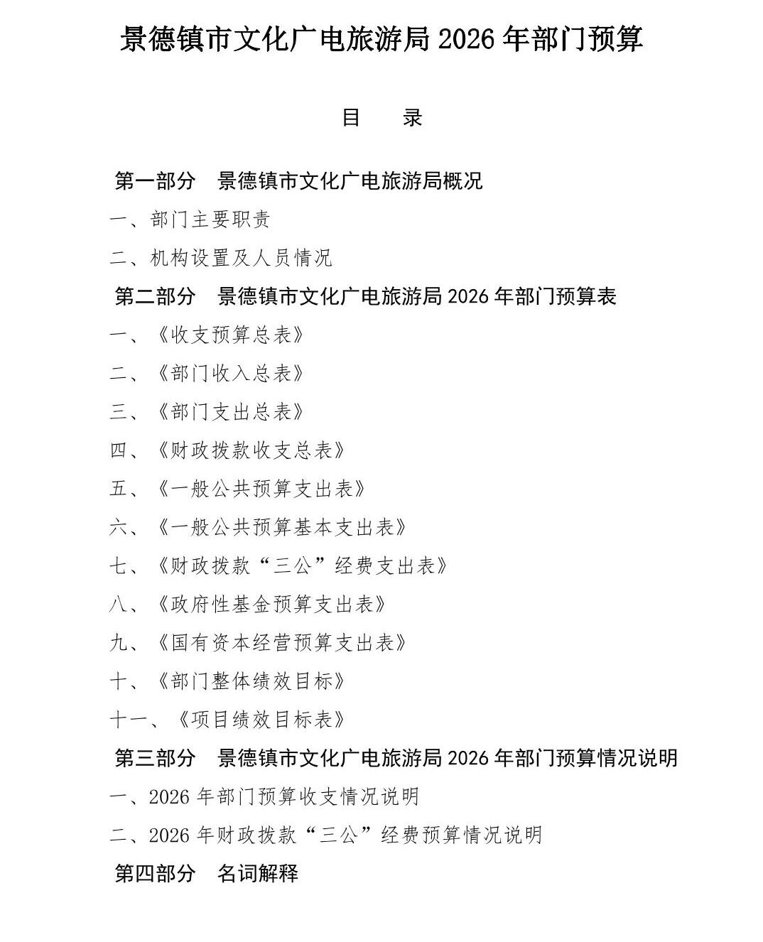 景德镇市文化广电旅游局2026年部门预算