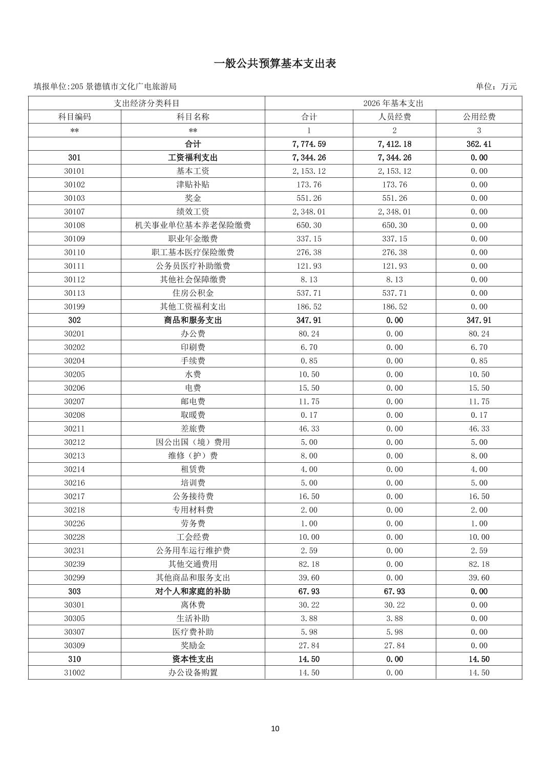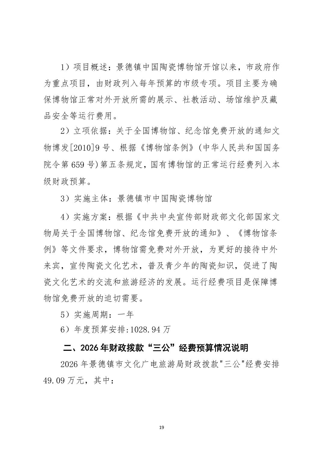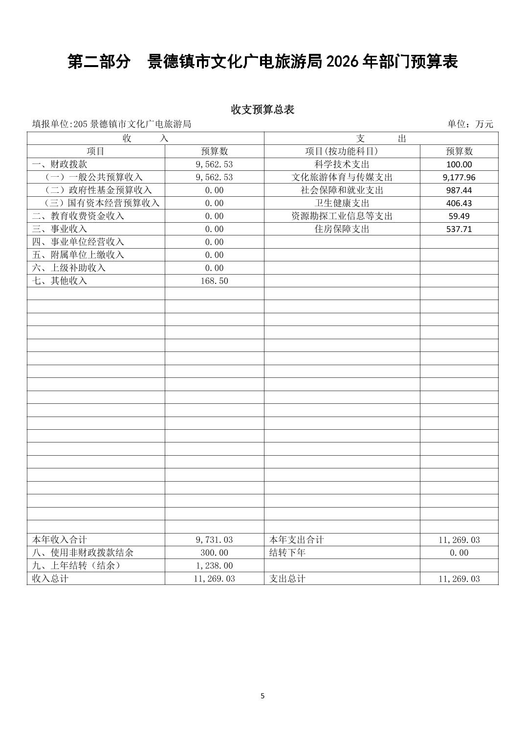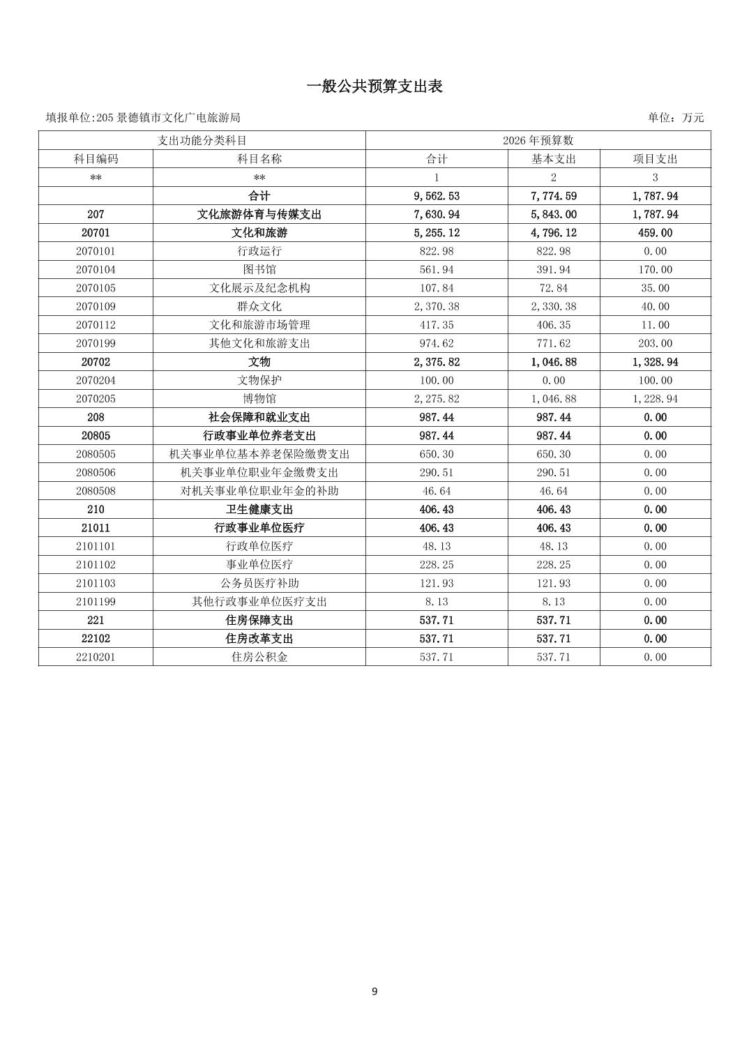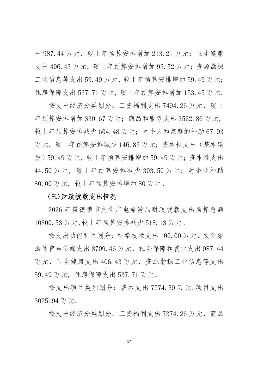 景德镇市文化广电旅游局2026年部门预算