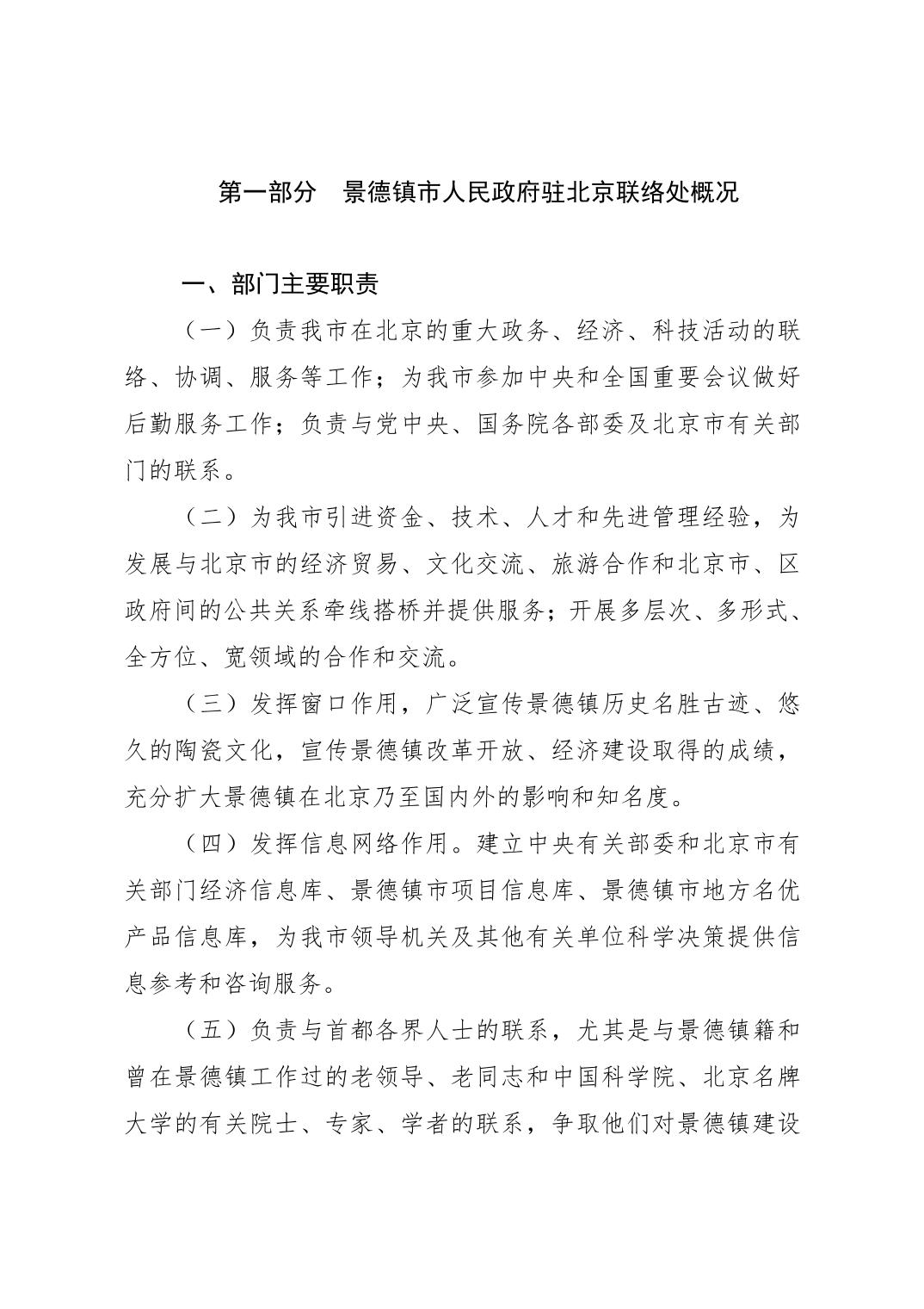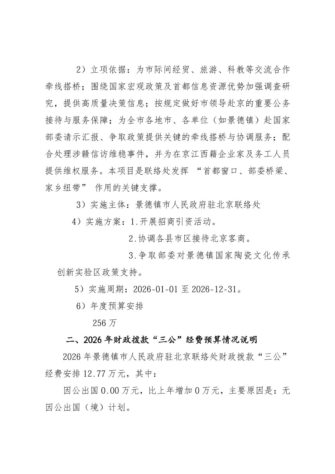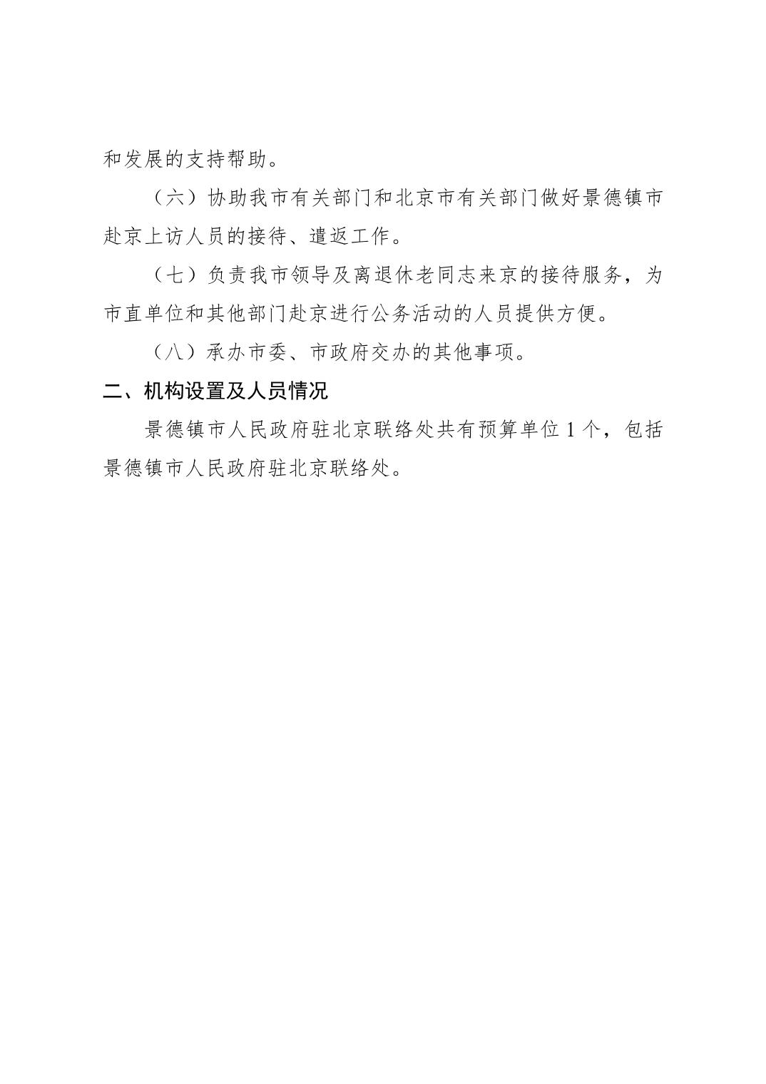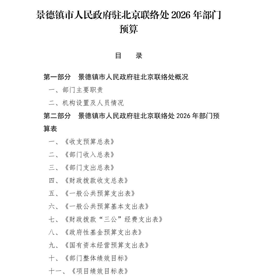 景德镇市人民政府驻北京联络处2026年部门预算