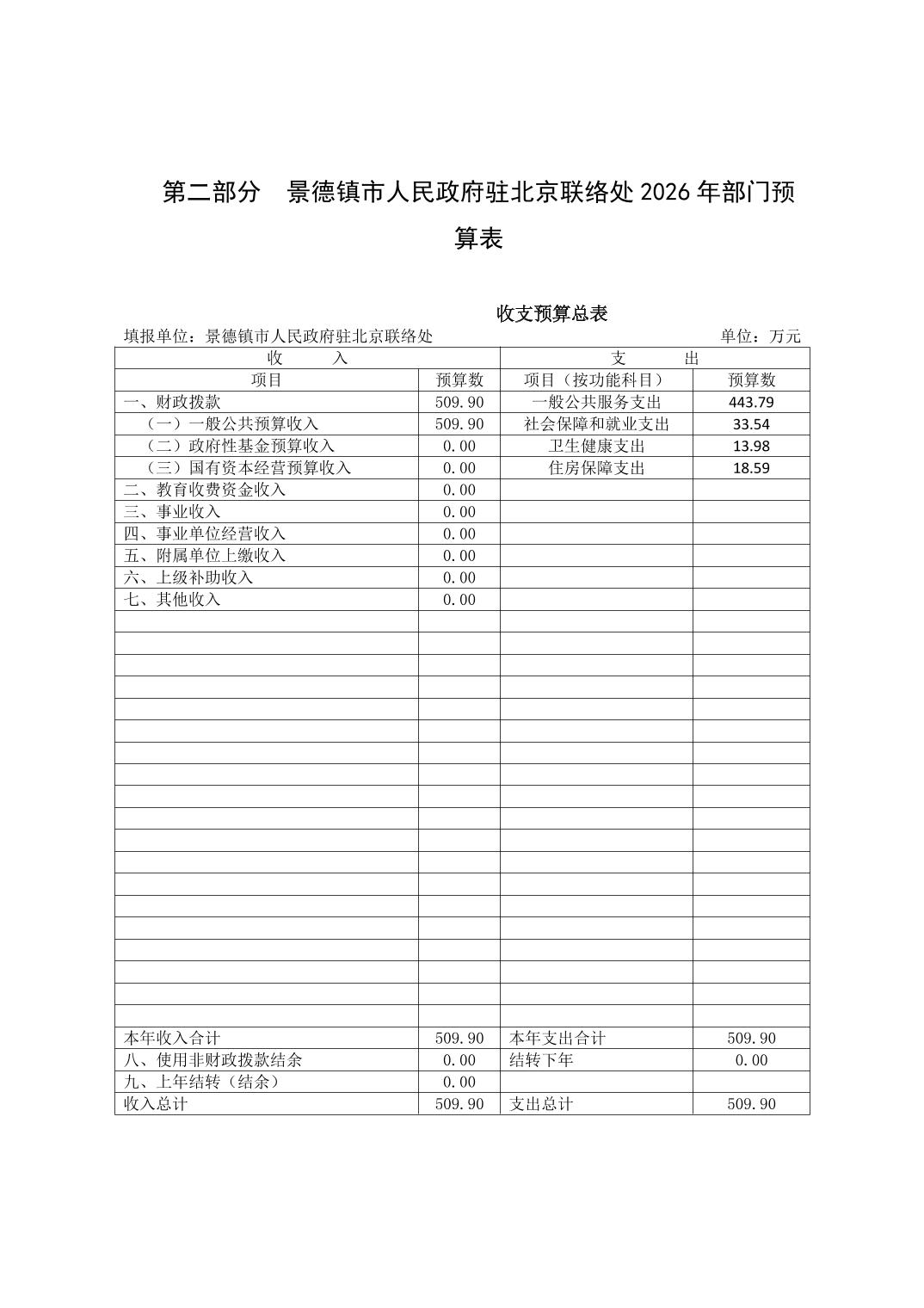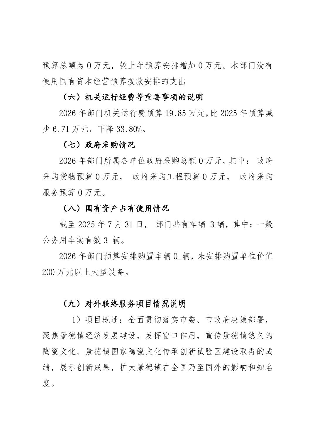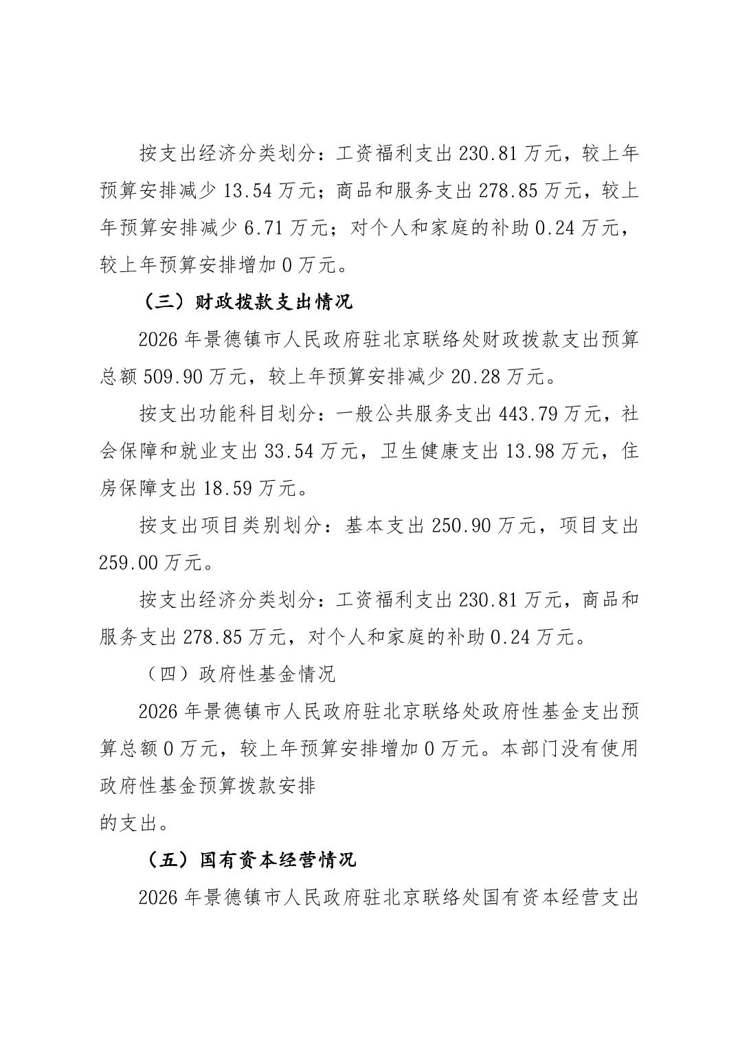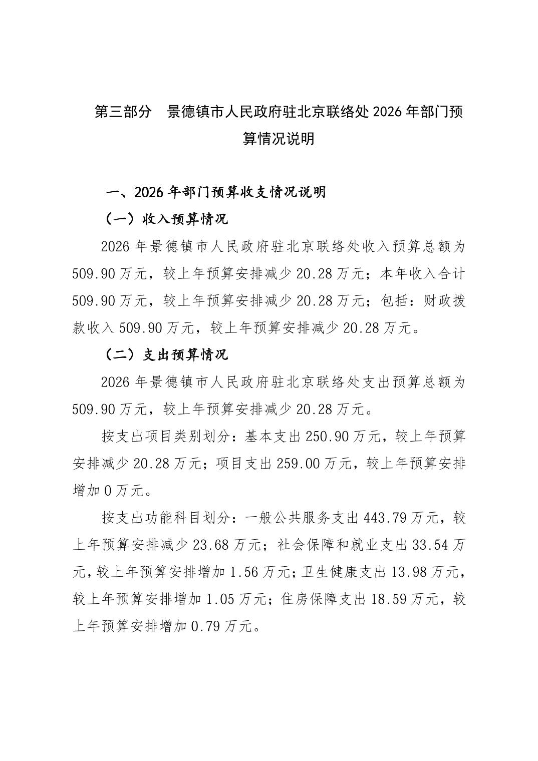 景德镇市人民政府驻北京联络处2026年部门预算