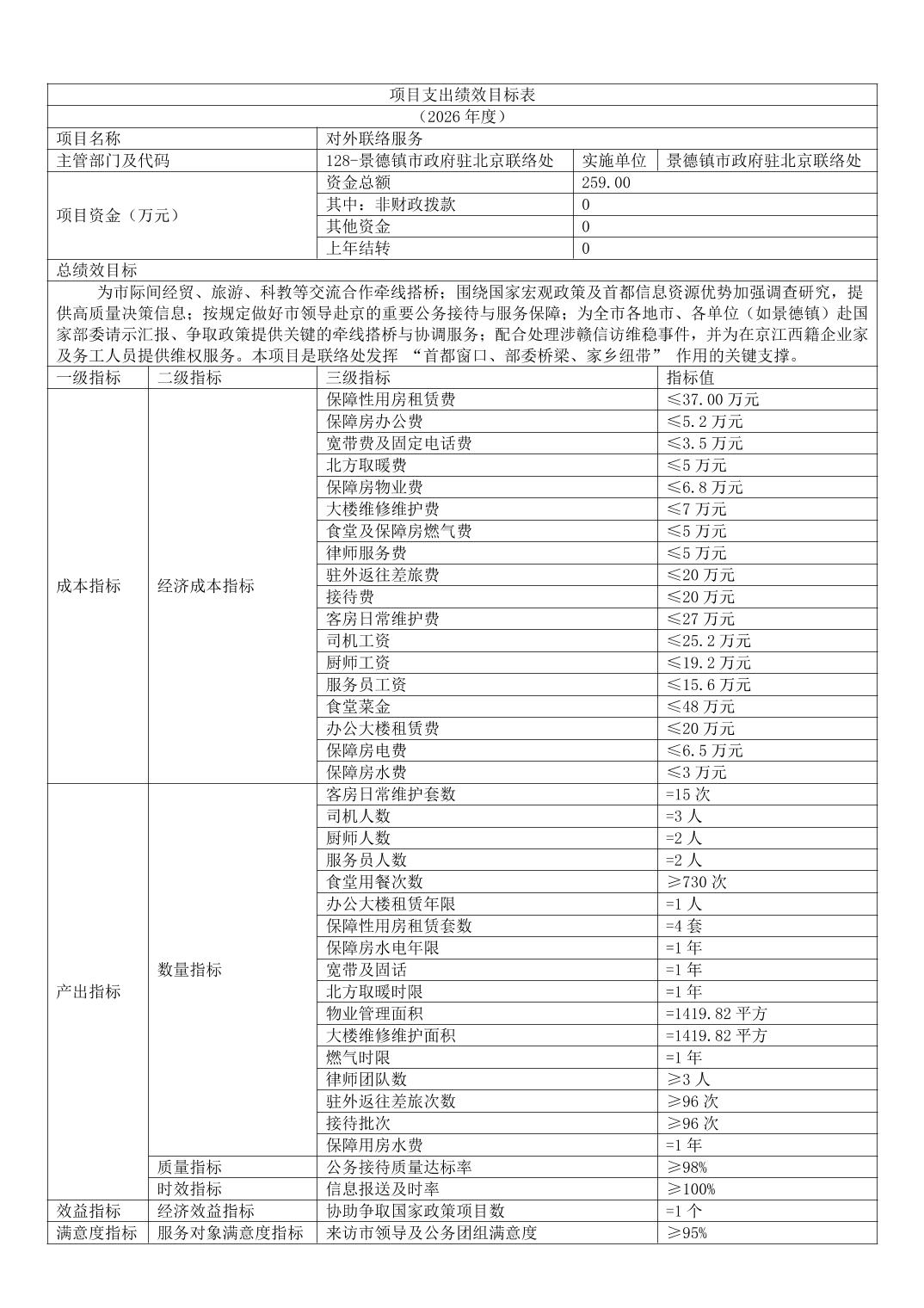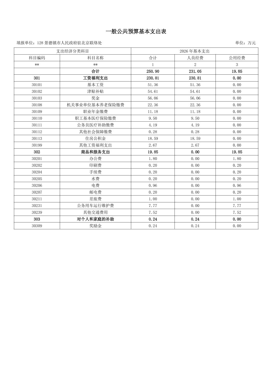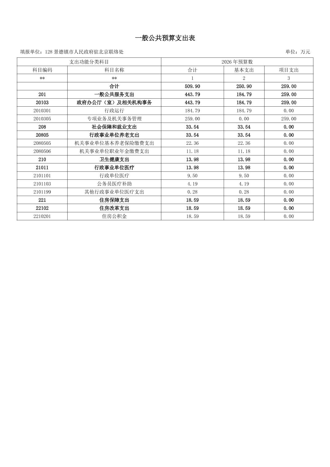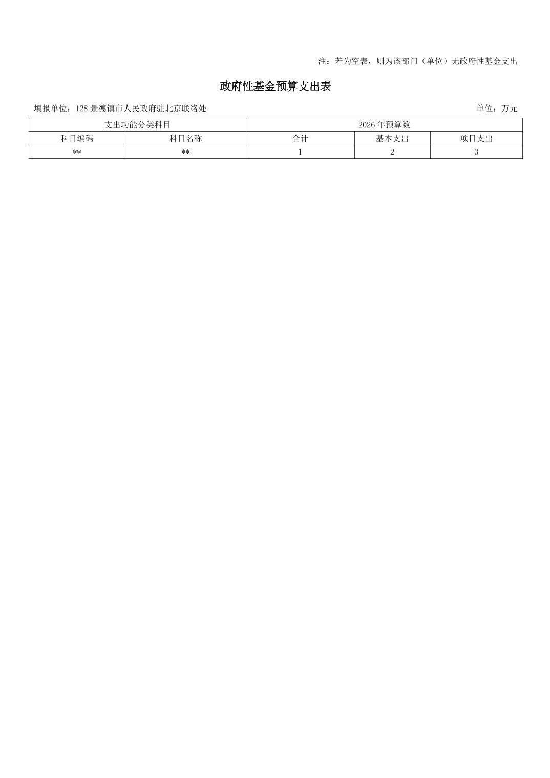 景德镇市人民政府驻北京联络处2026年部门预算