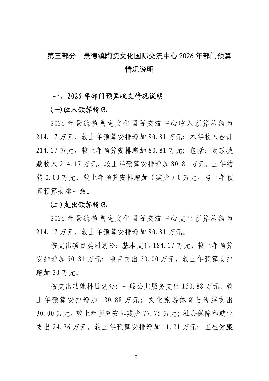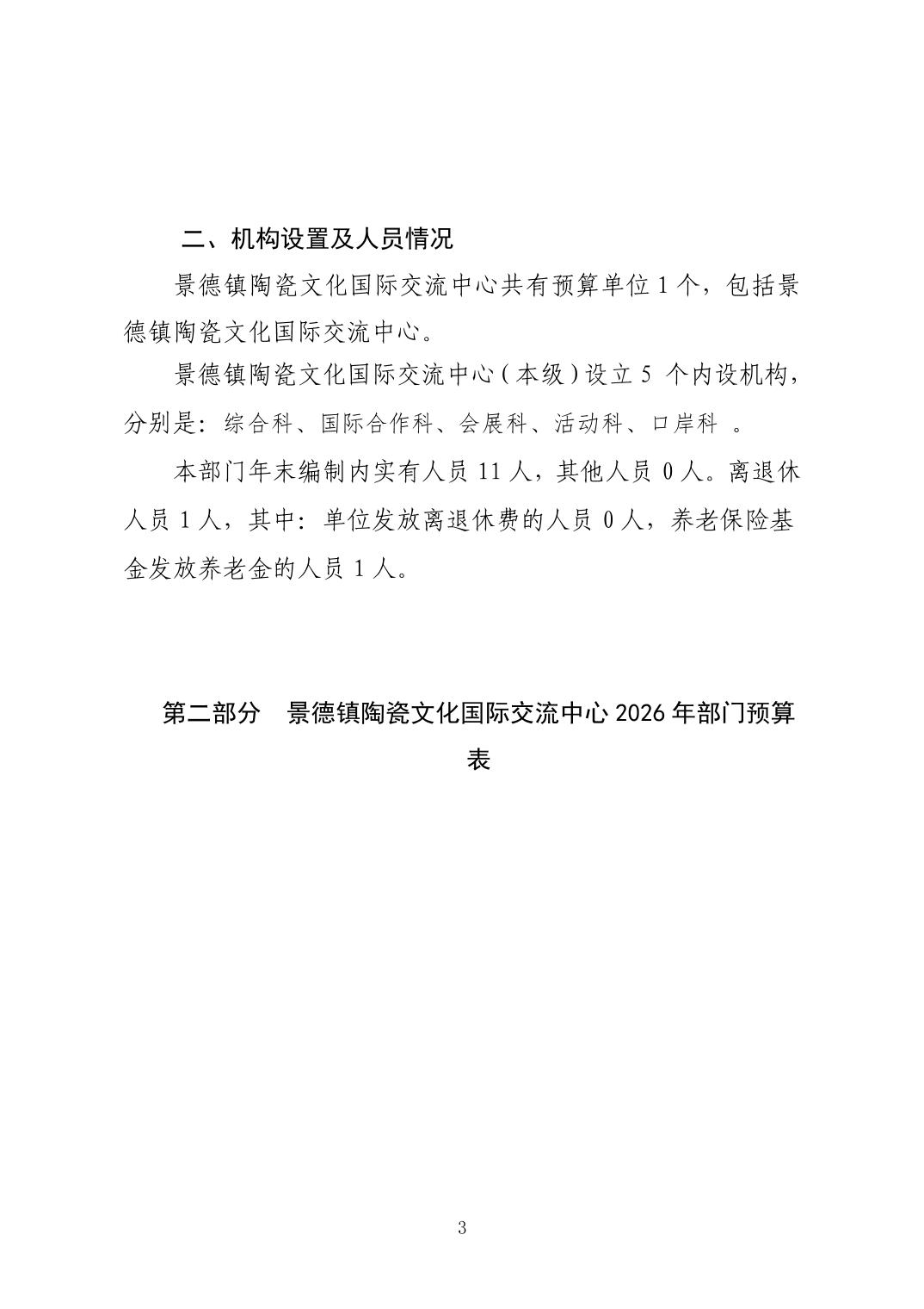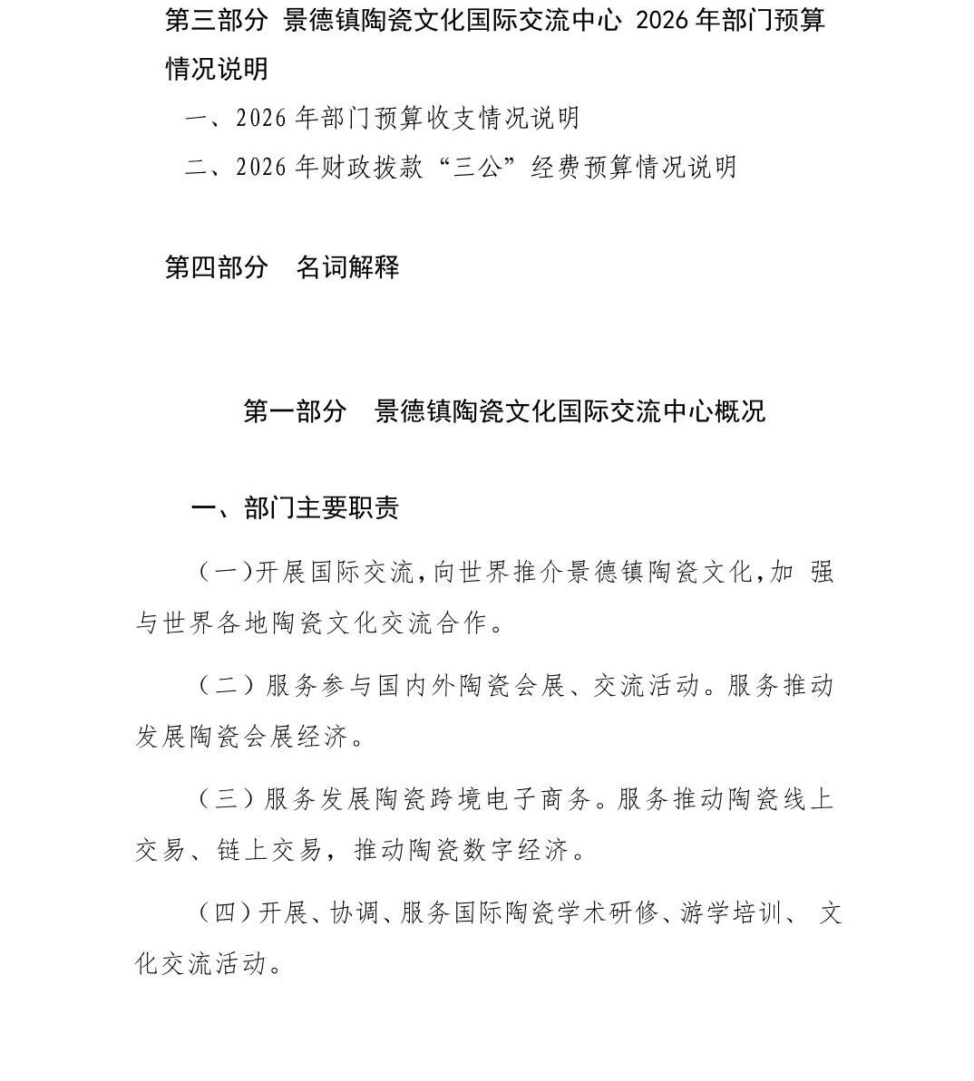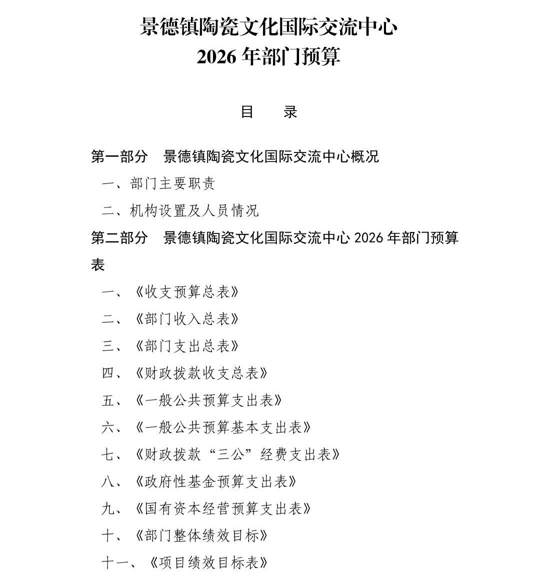景德镇陶瓷文化国际交流中心2026年部门预算