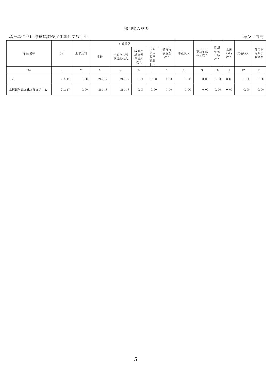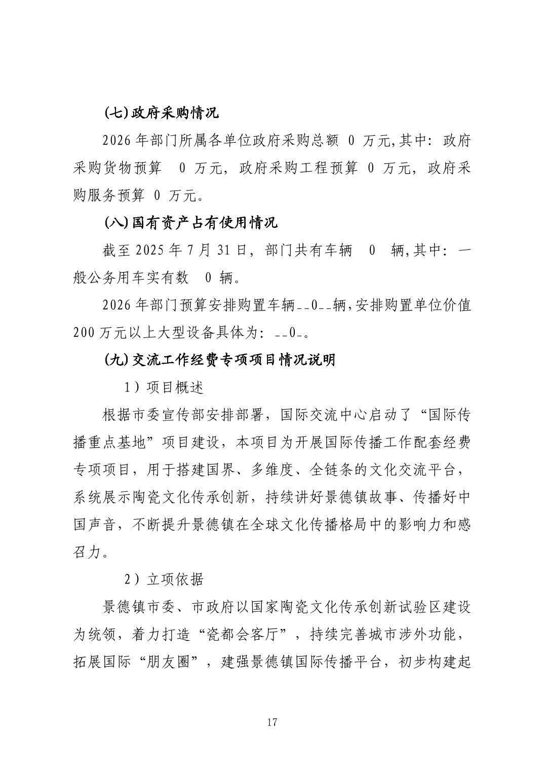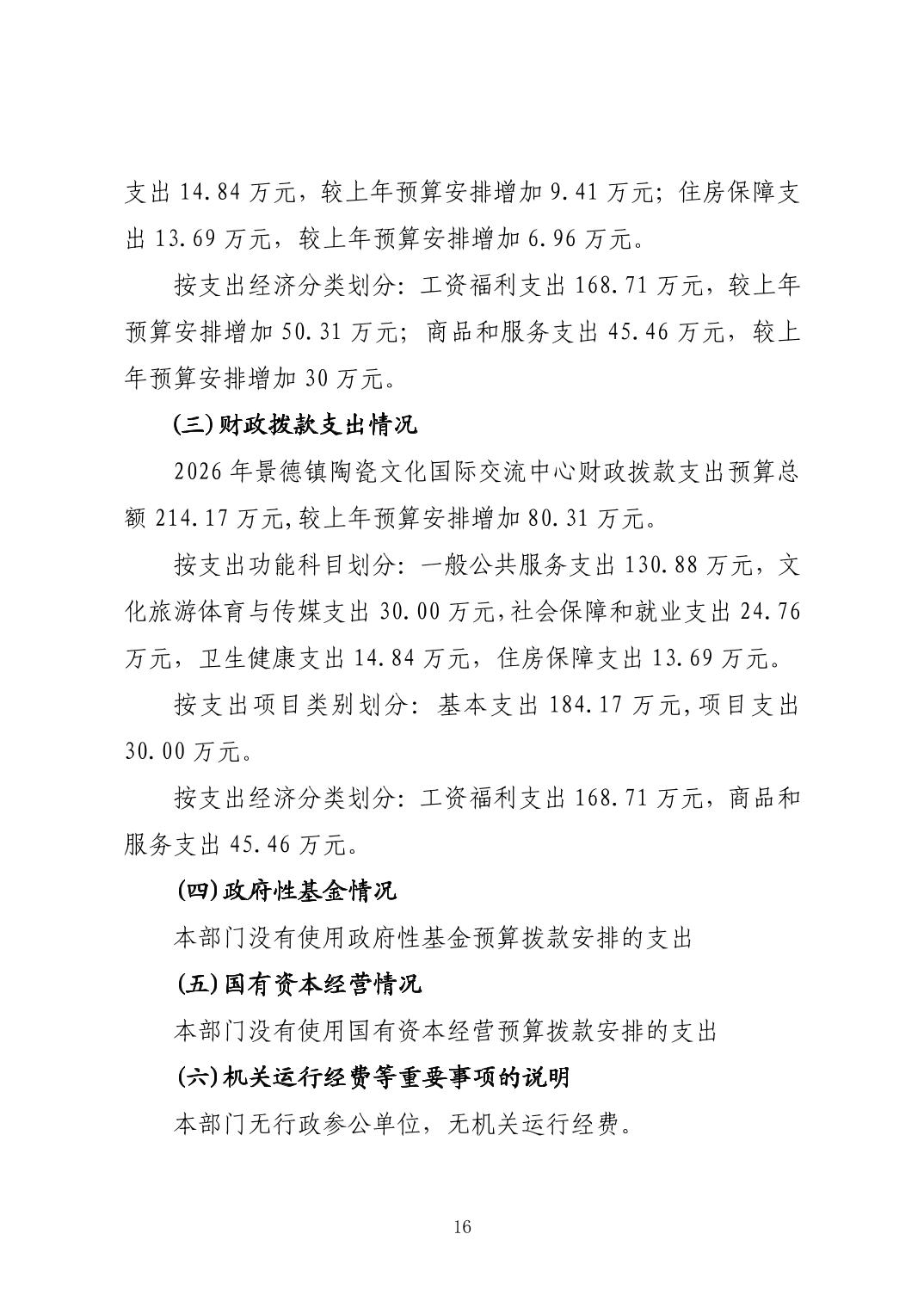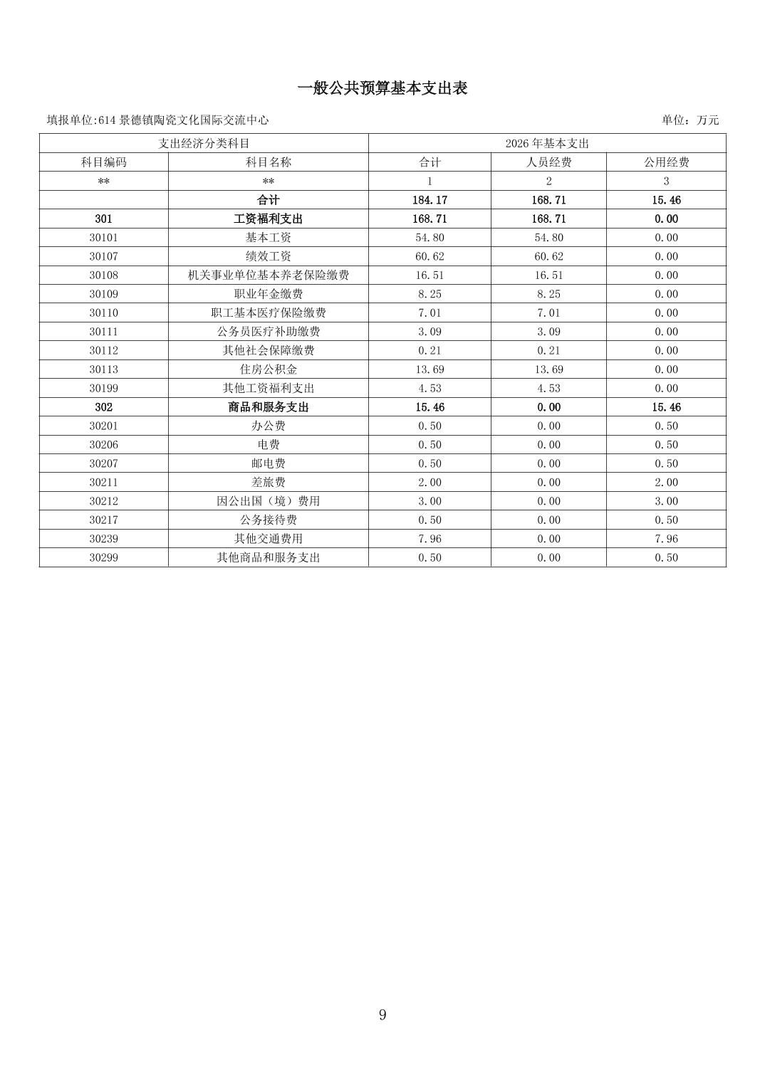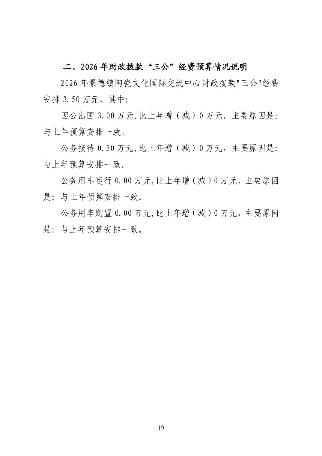 景德镇陶瓷文化国际交流中心2026年部门预算