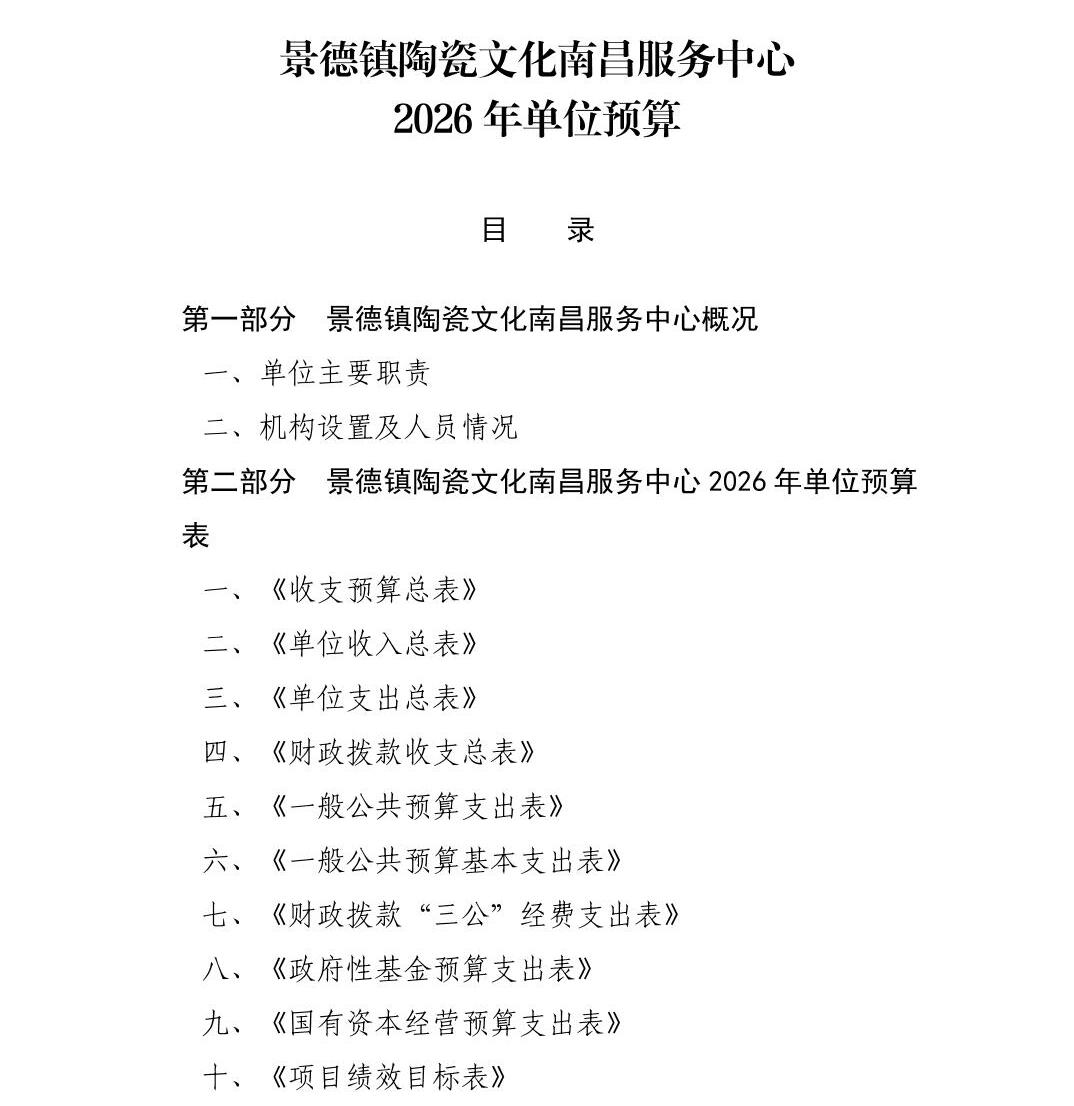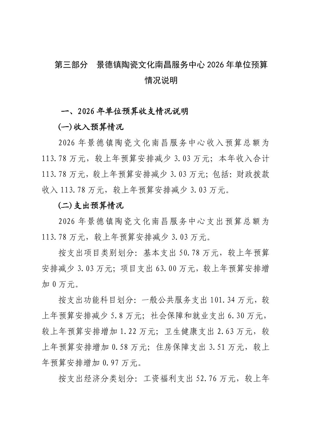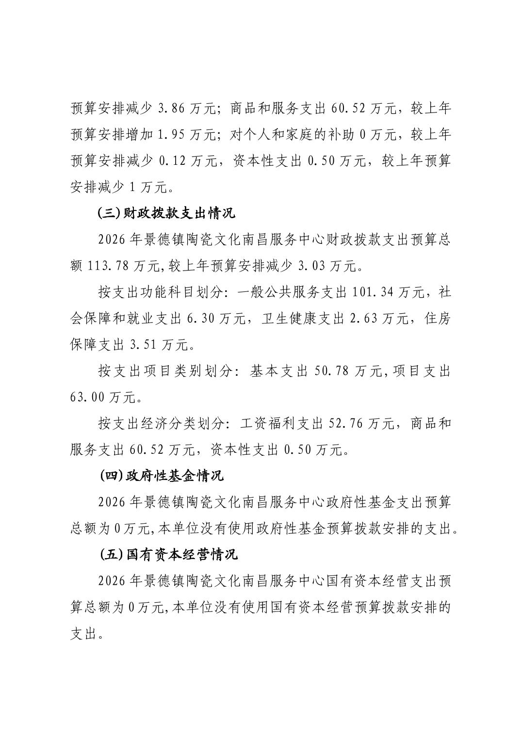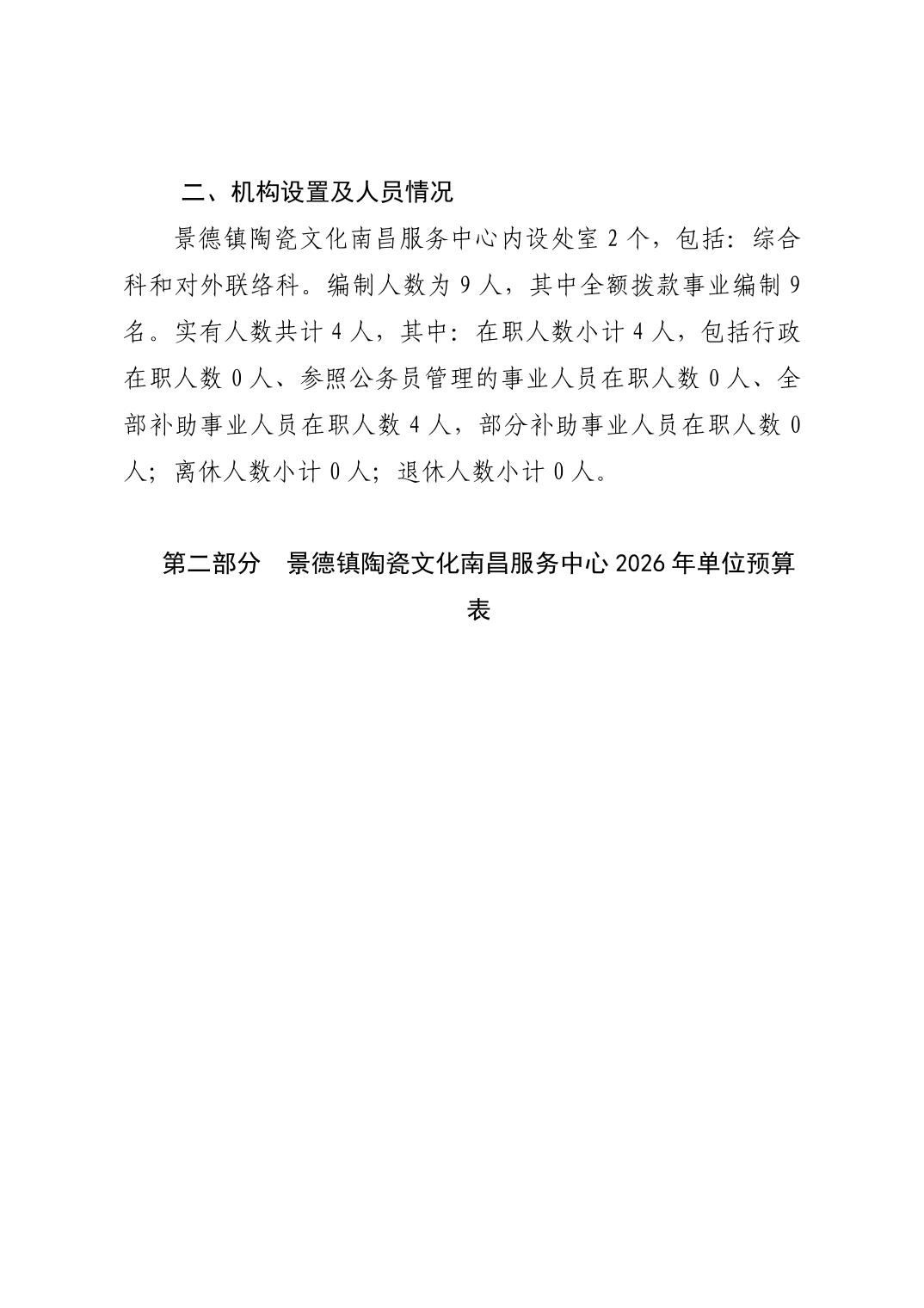 景德镇陶瓷文化南昌服务中心2026年部门预算