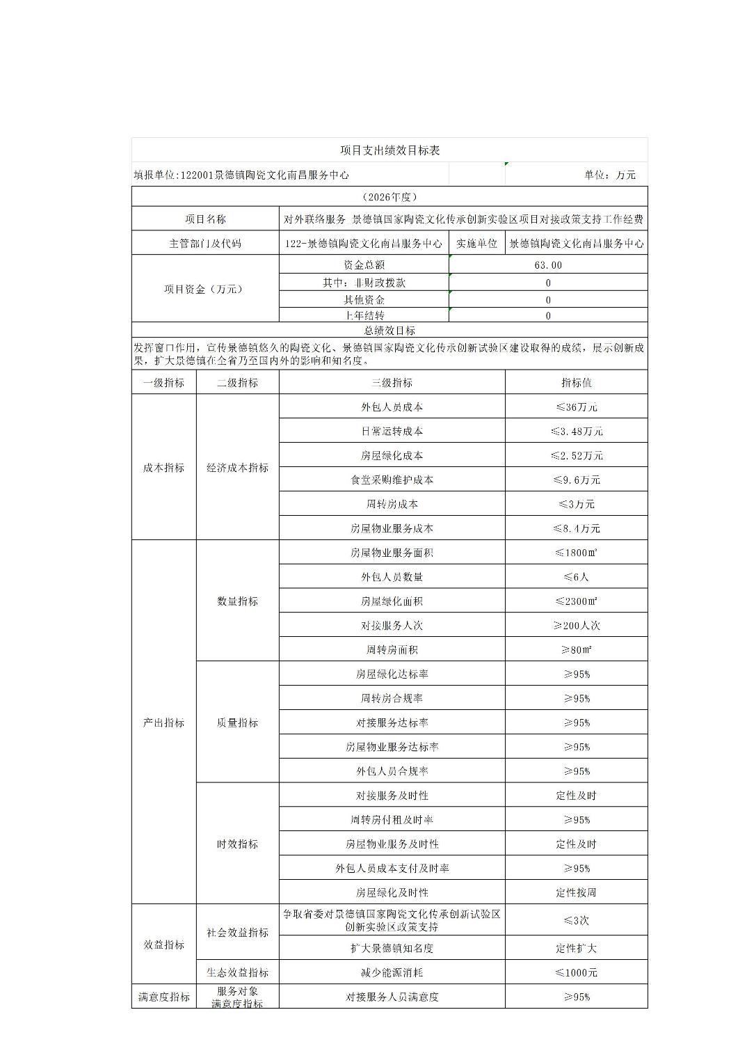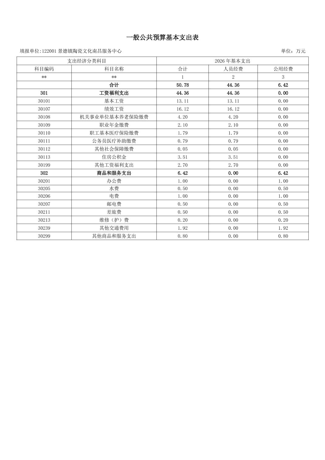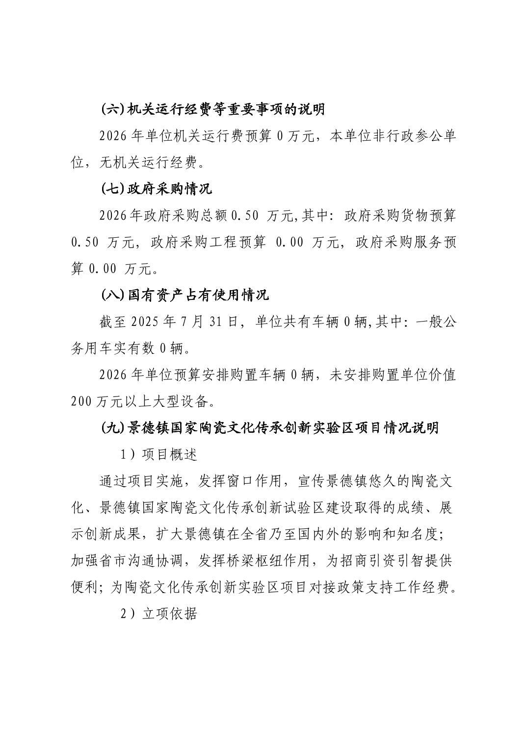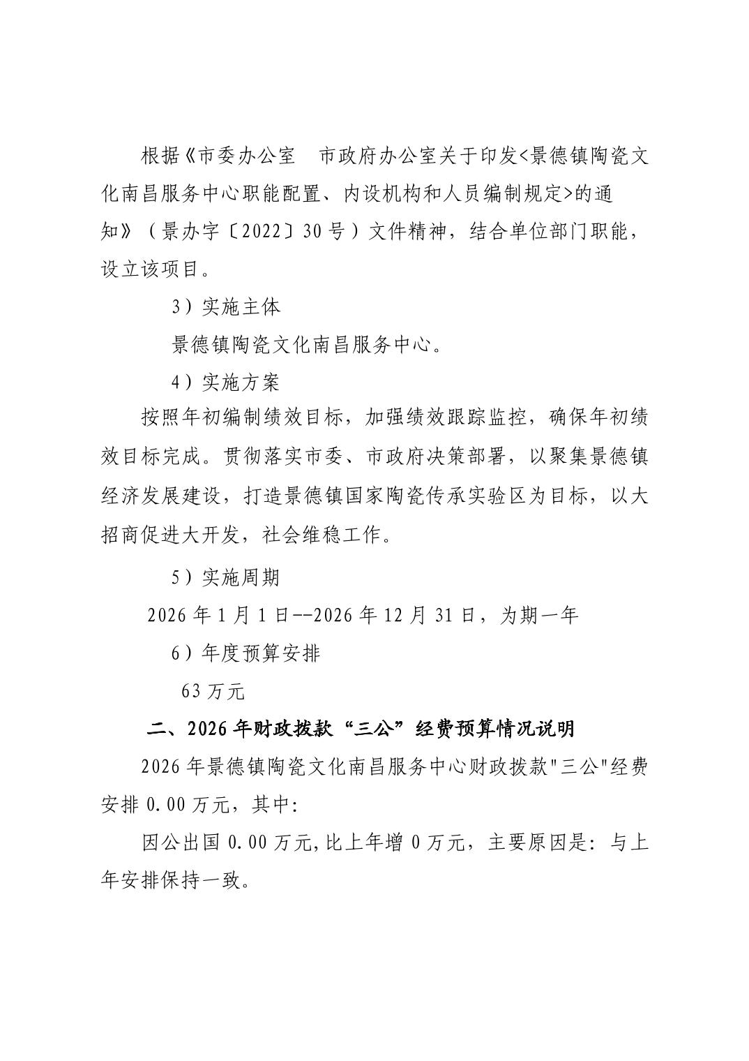 景德镇陶瓷文化南昌服务中心2026年部门预算