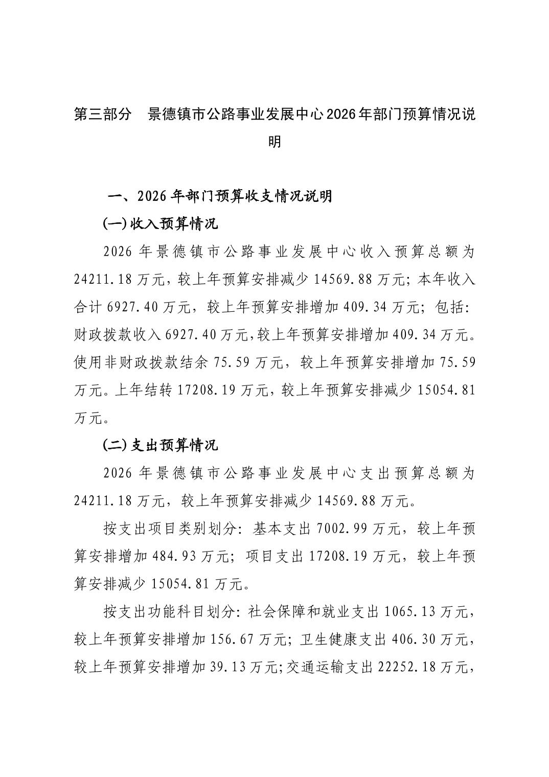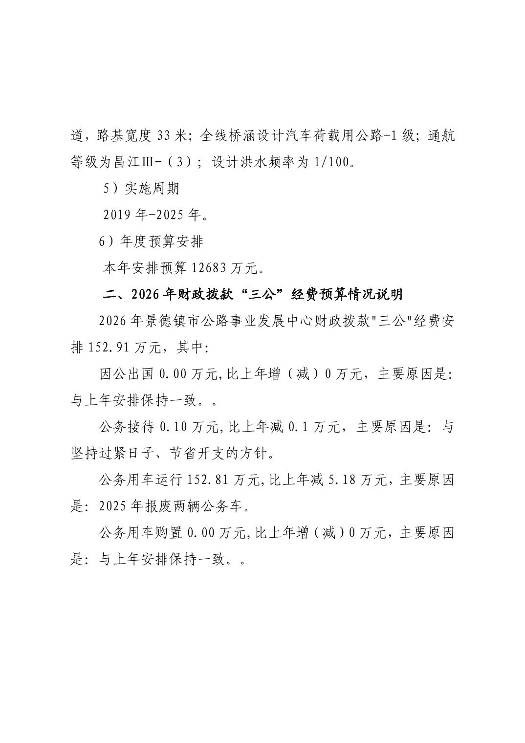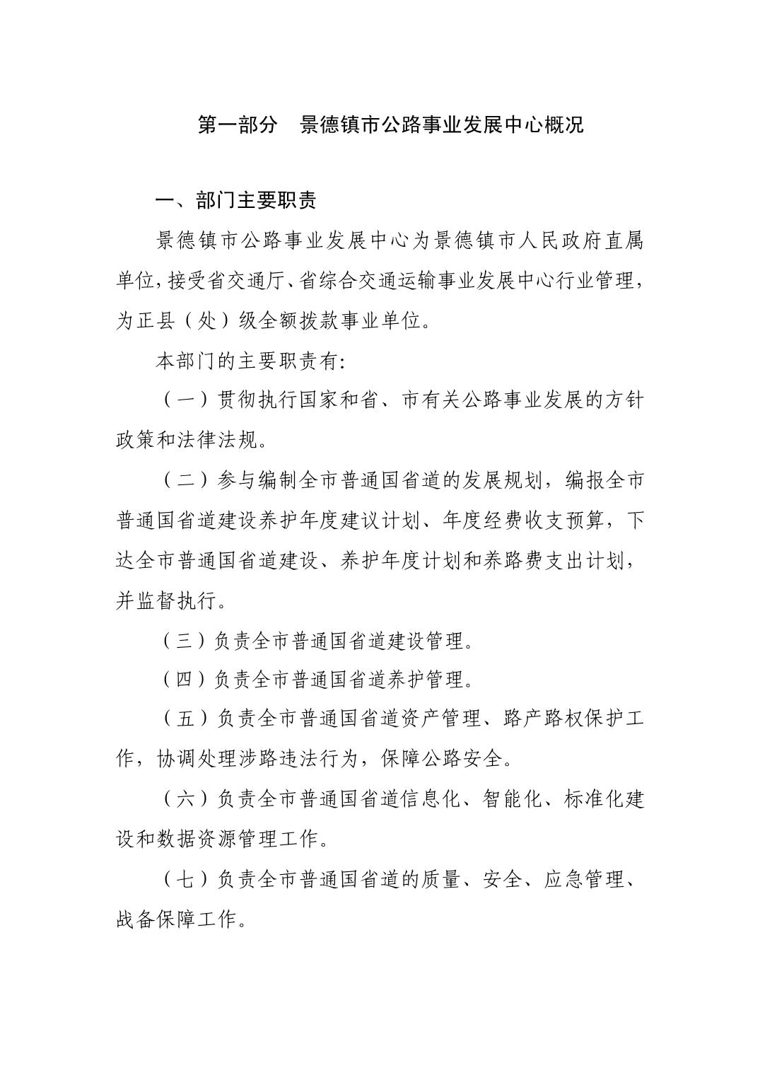 景德镇市公路事业发展中心2026年部门预算