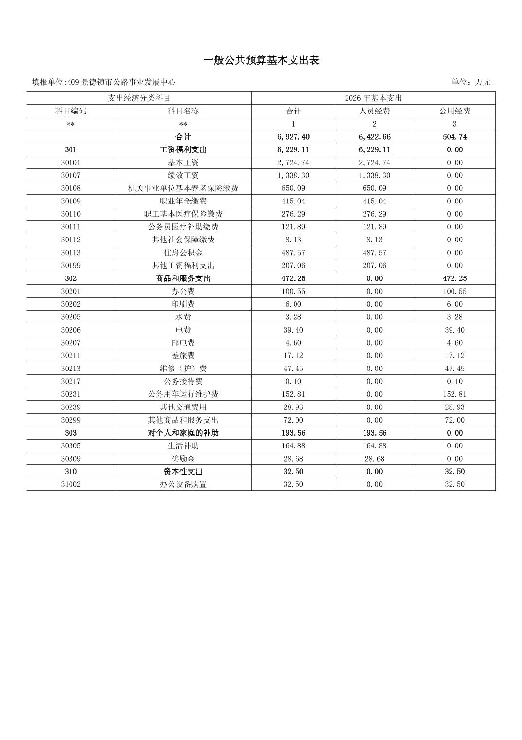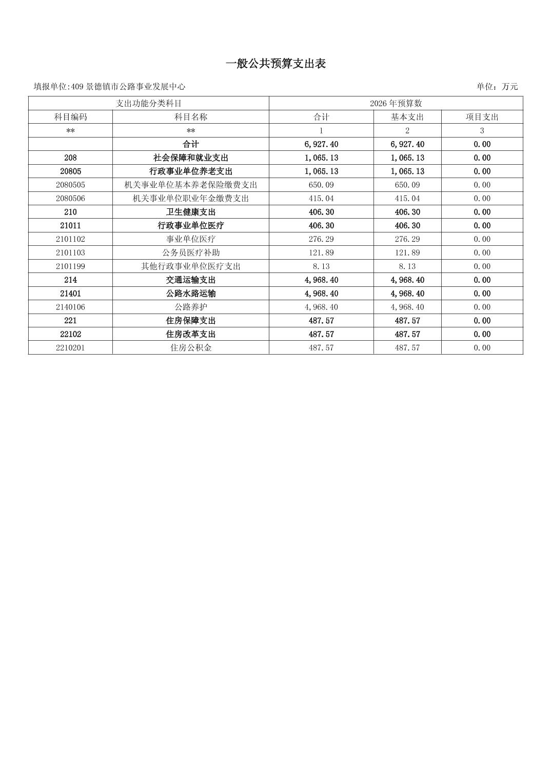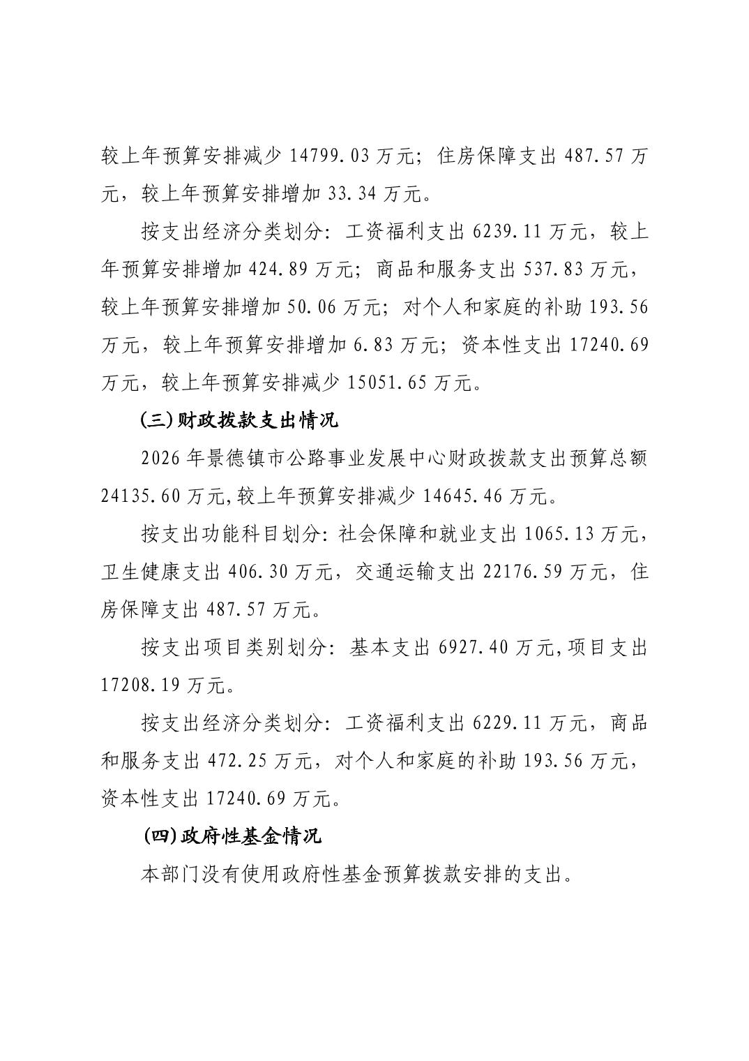 景德镇市公路事业发展中心2026年部门预算