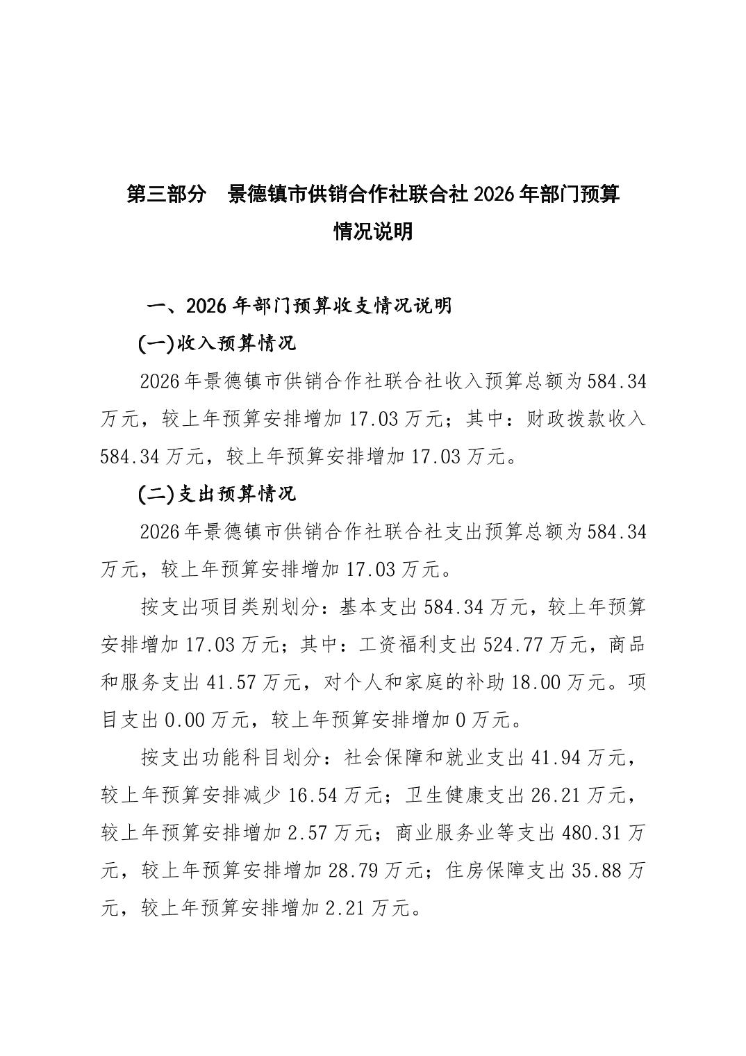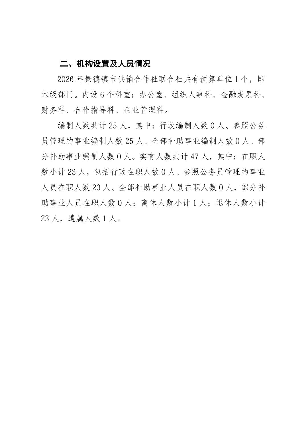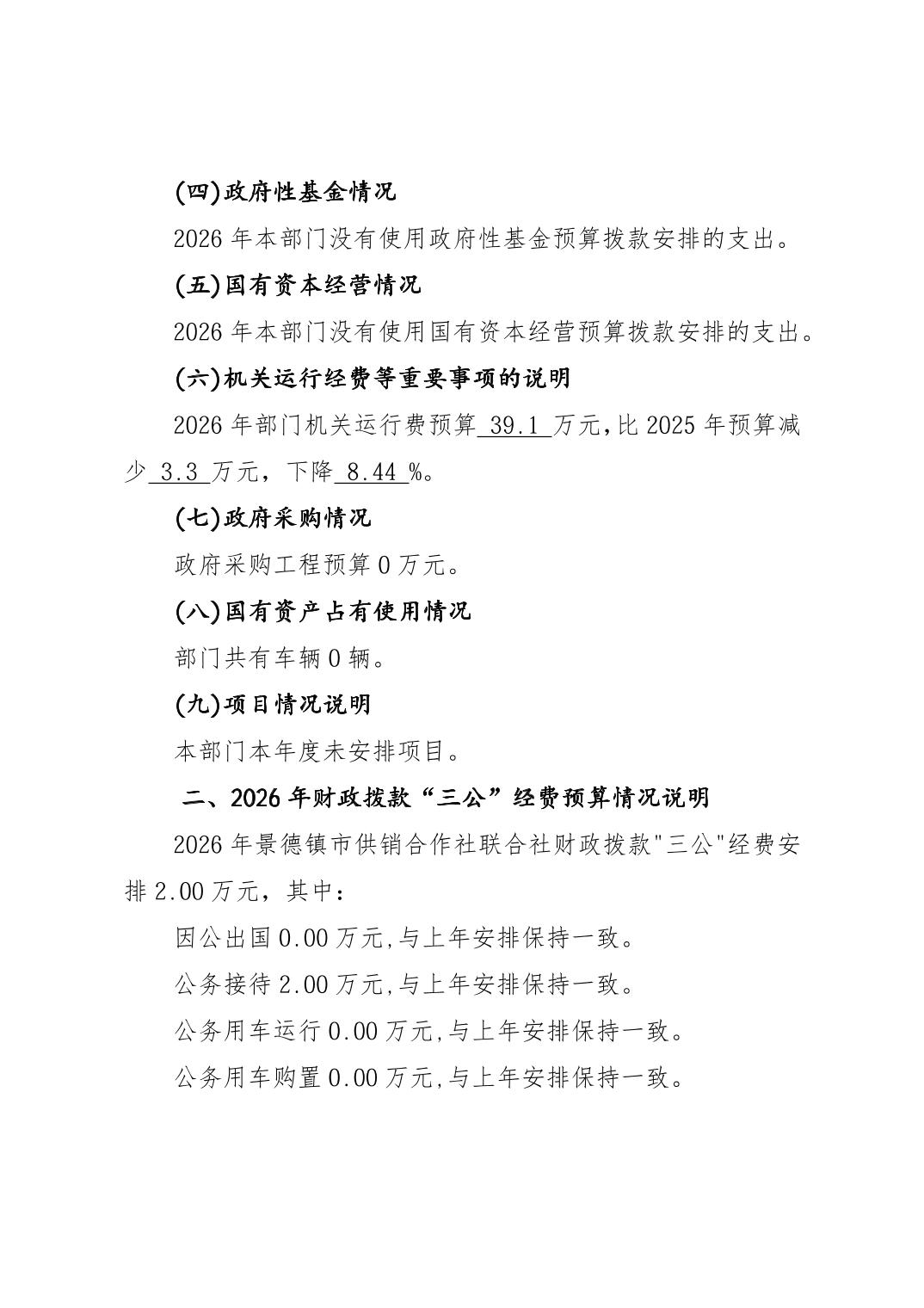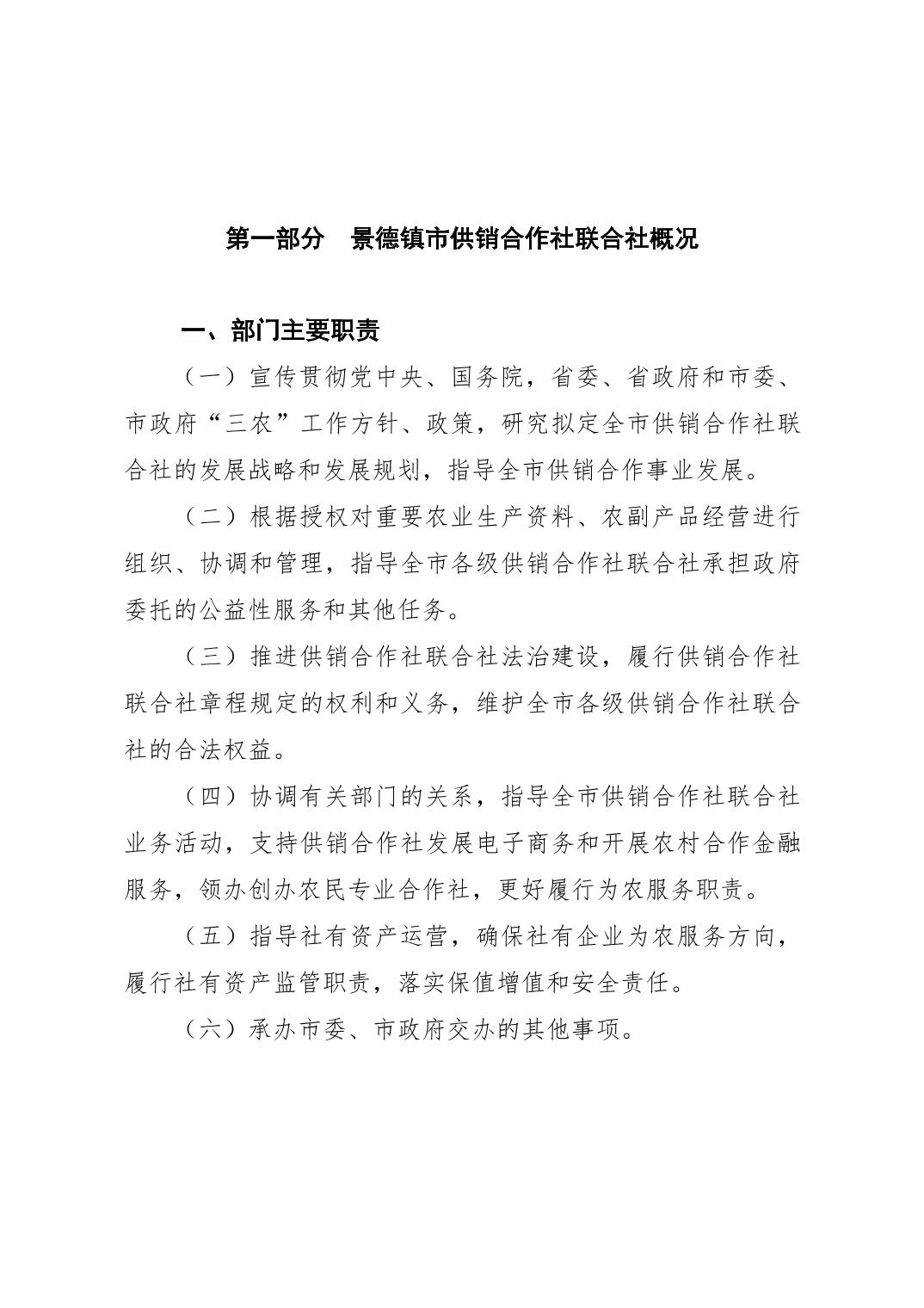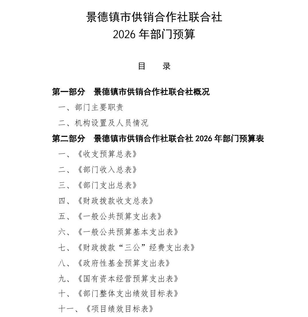 景德镇市供销合作社联合社2026年部门预算