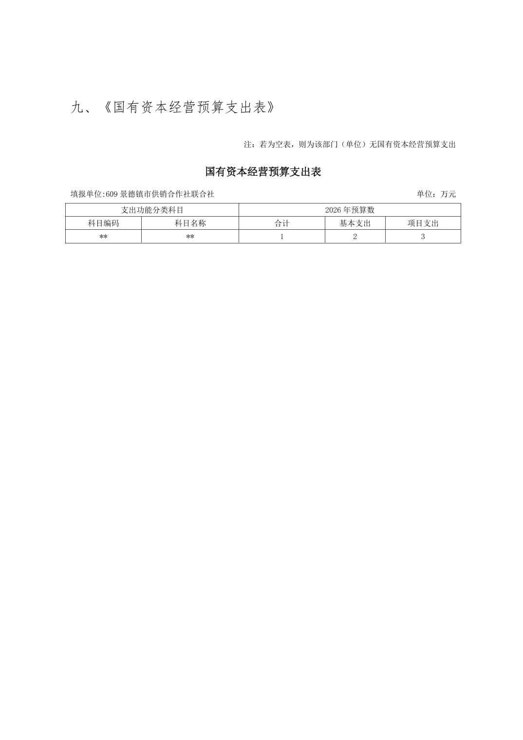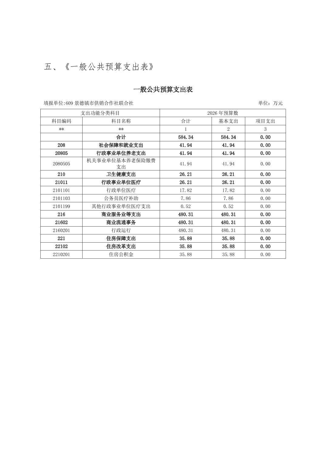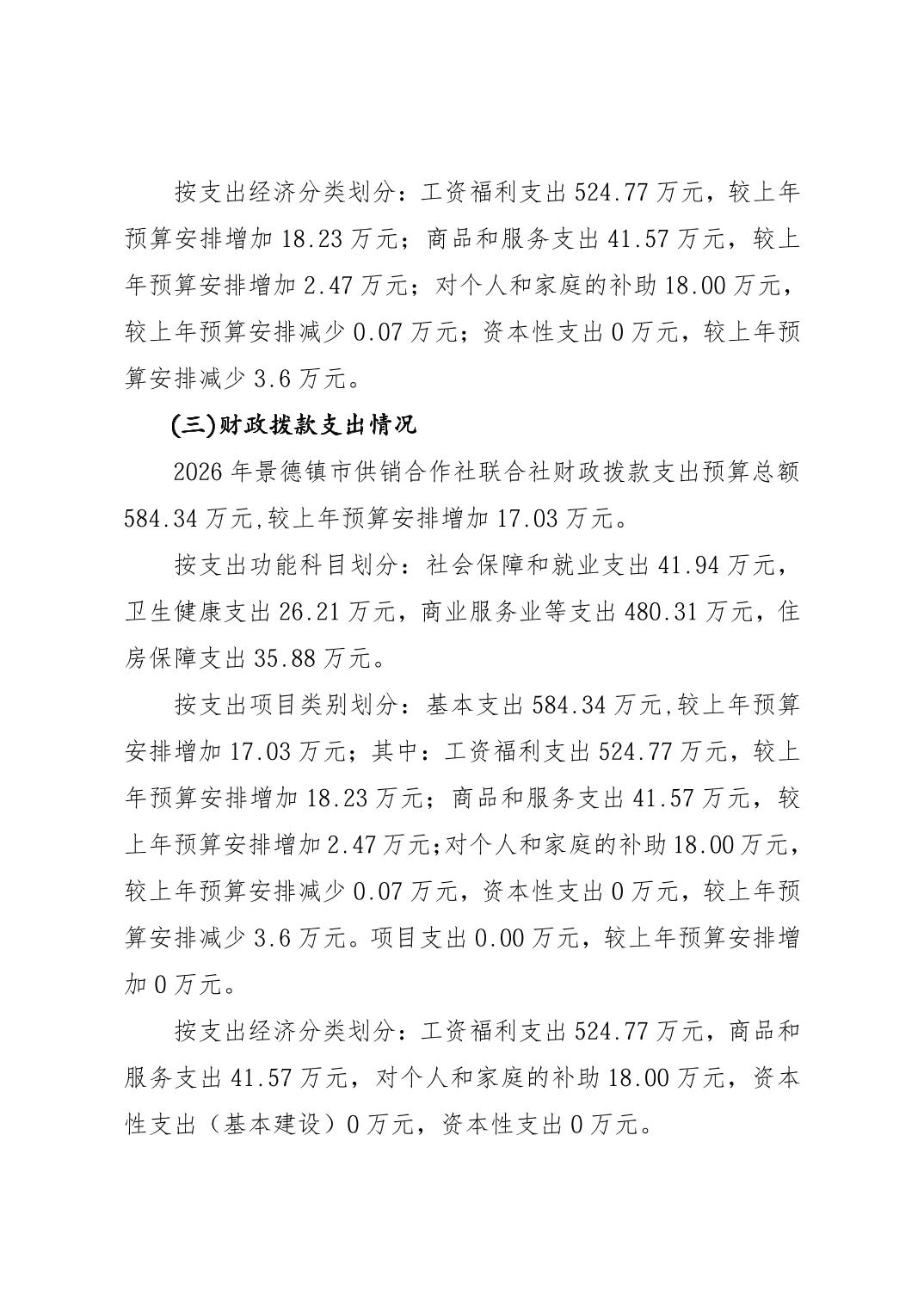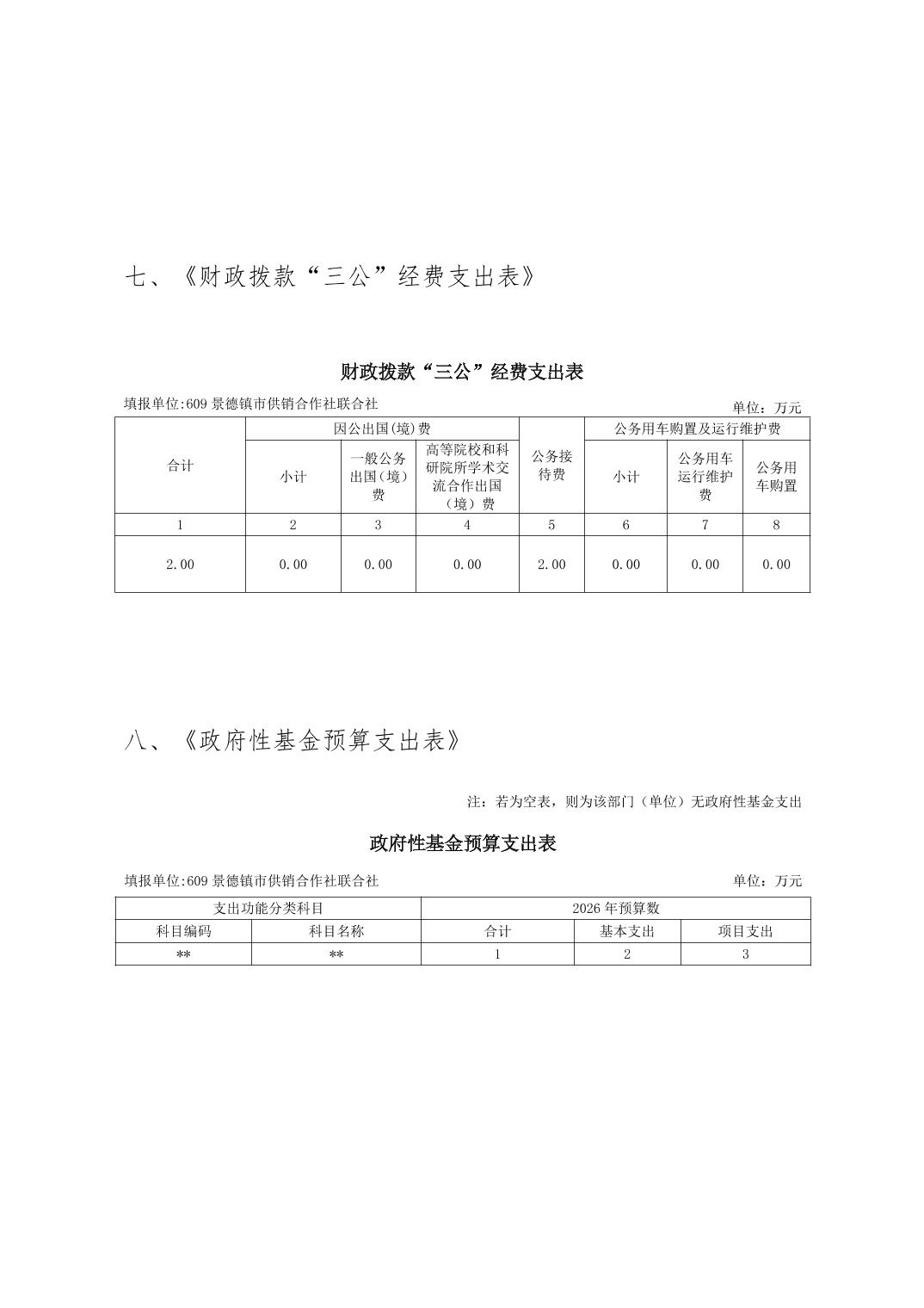 景德镇市供销合作社联合社2026年部门预算