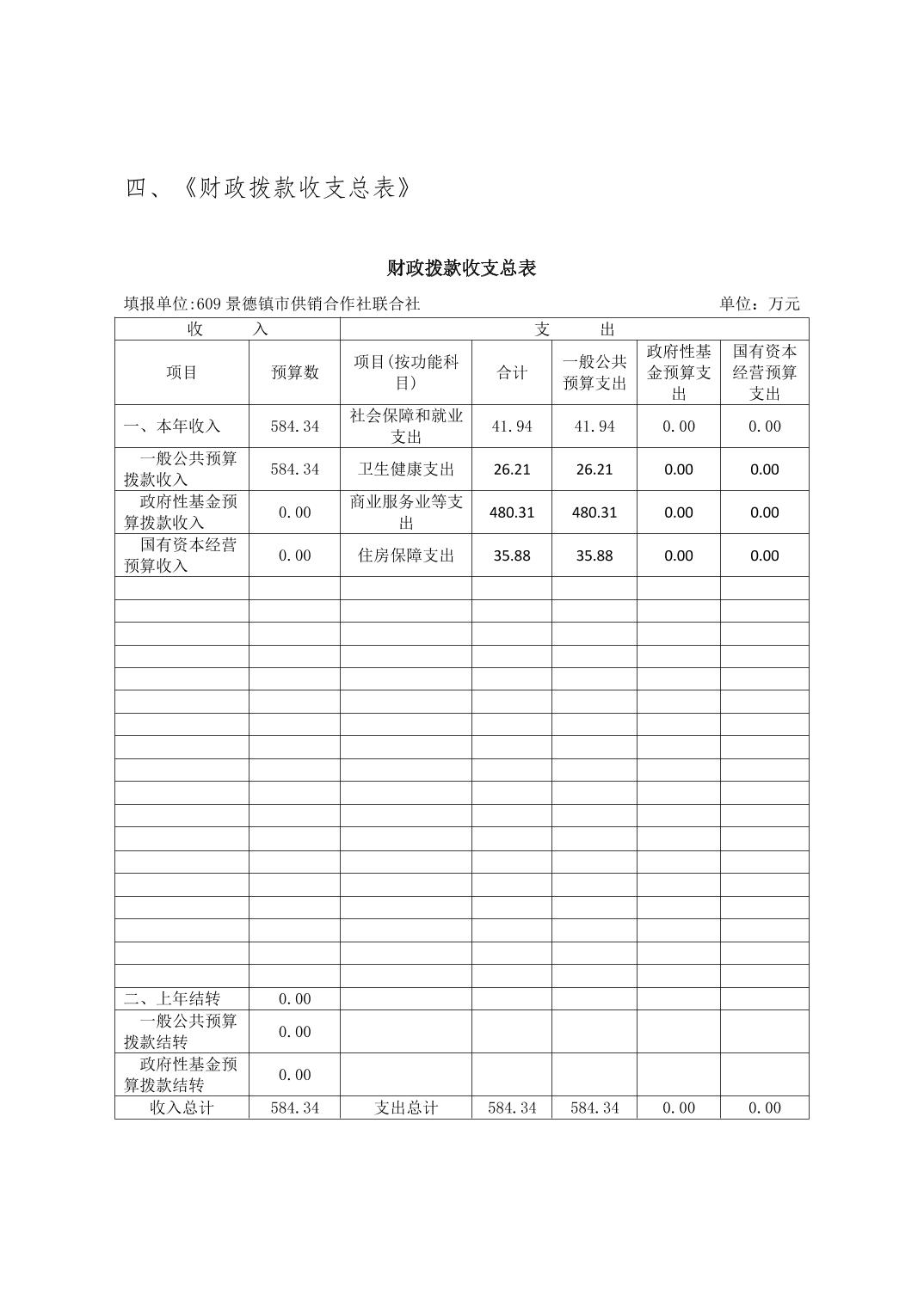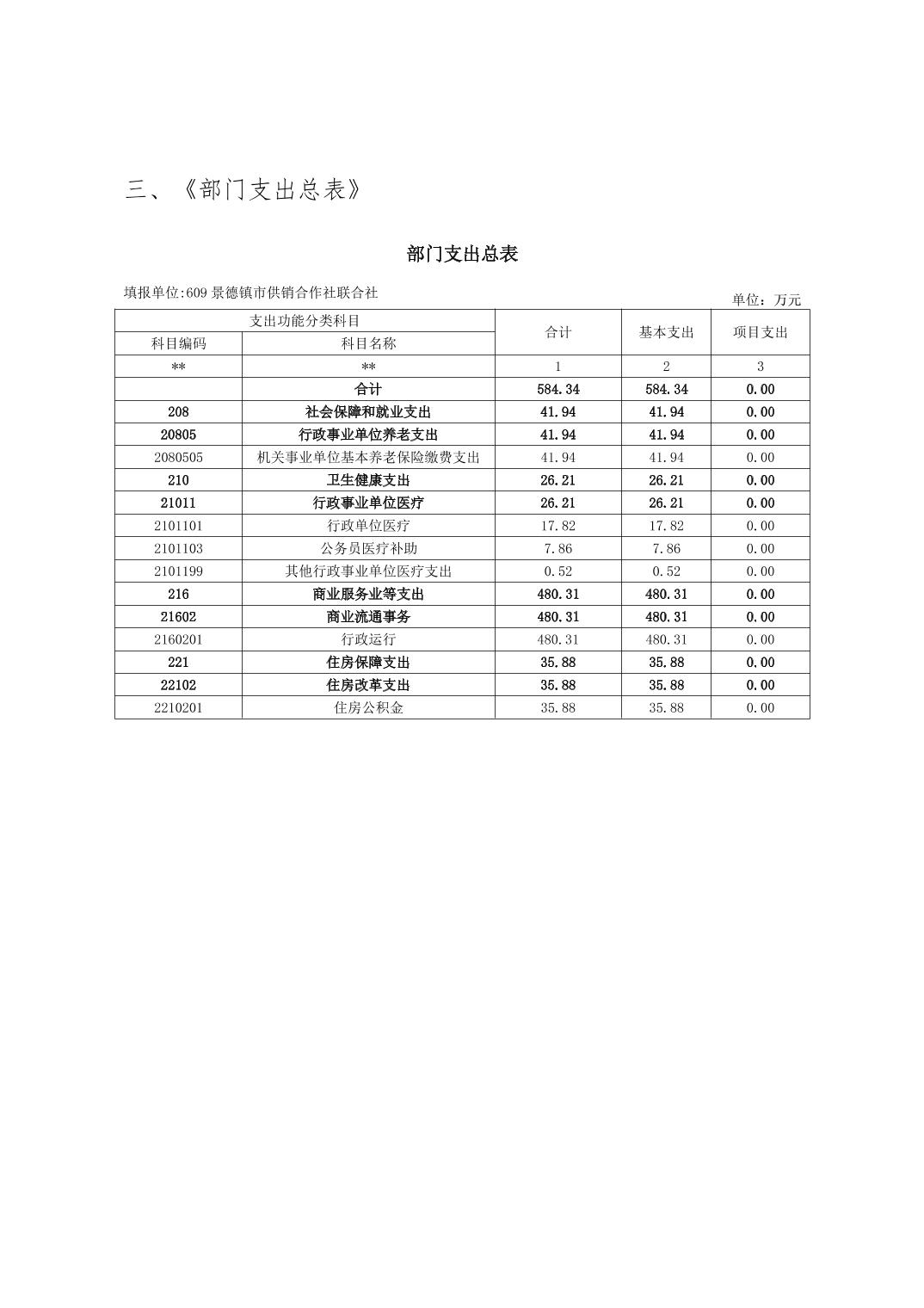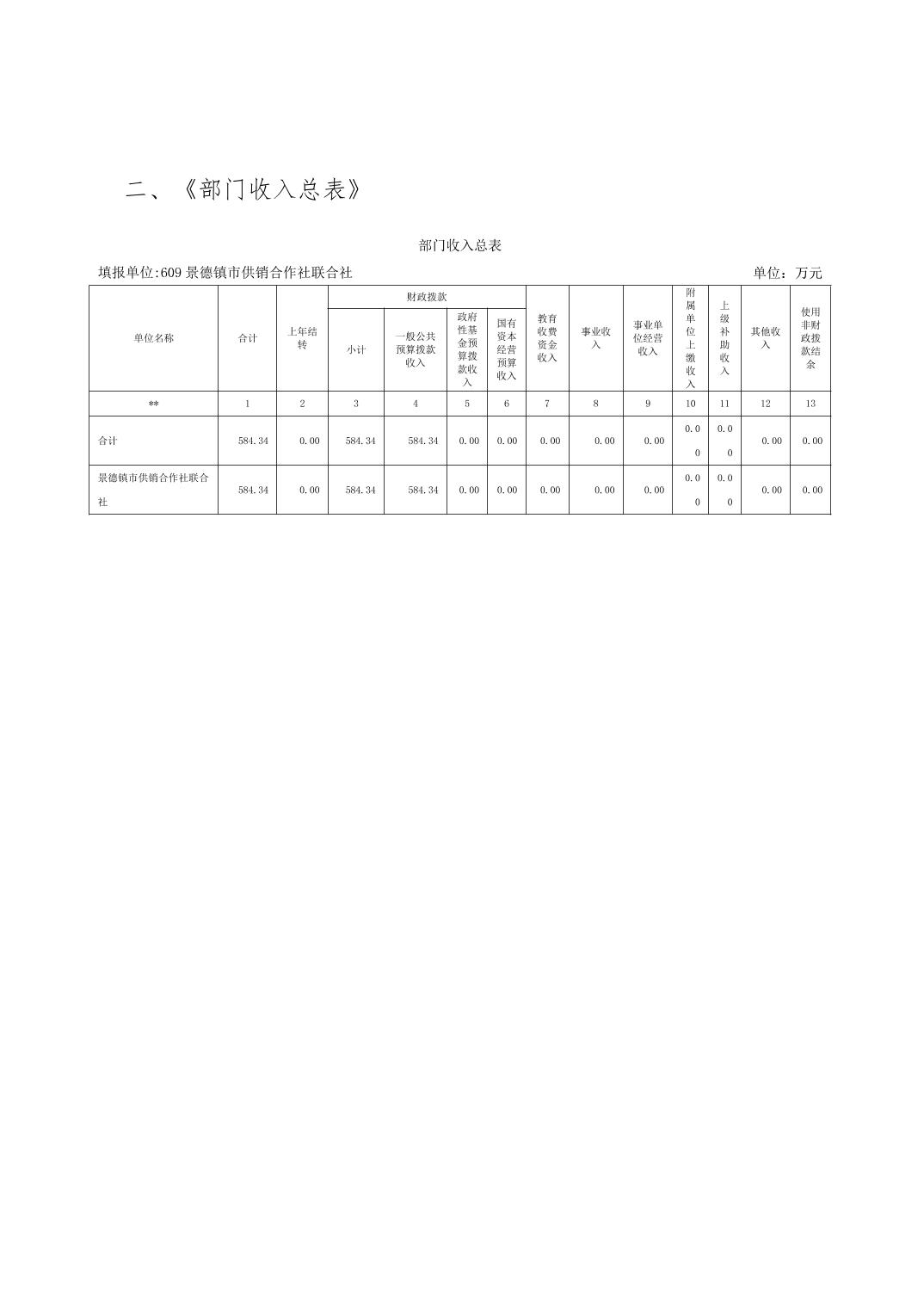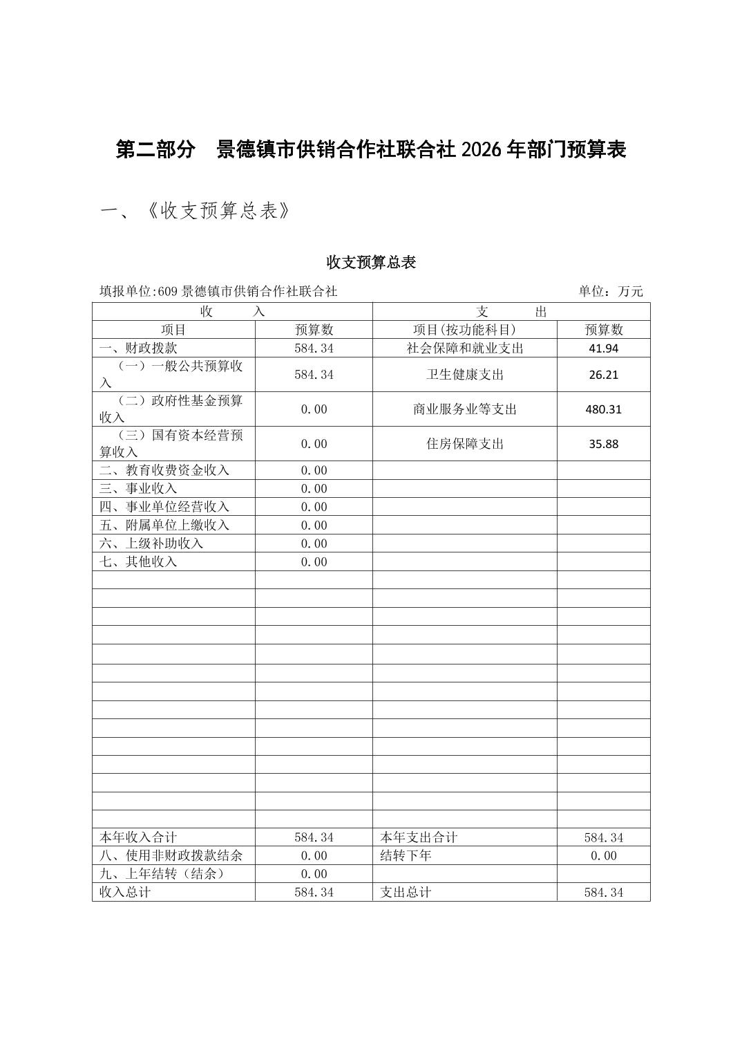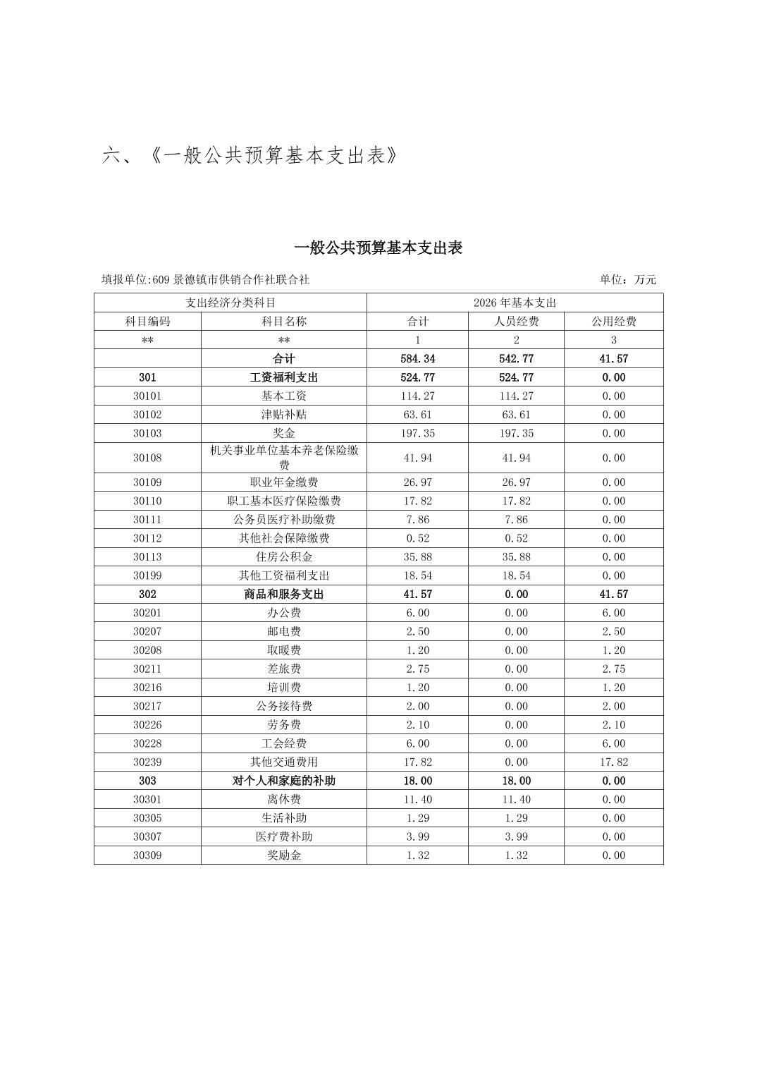 景德镇市供销合作社联合社2026年部门预算