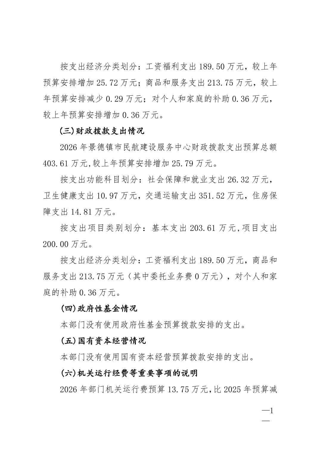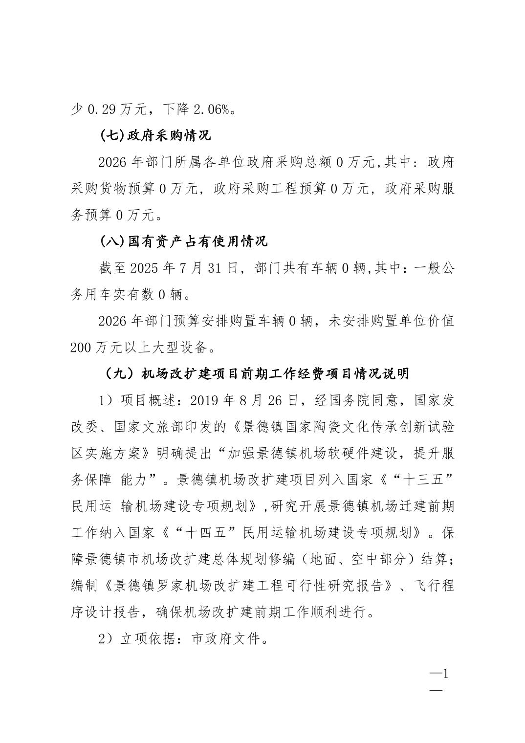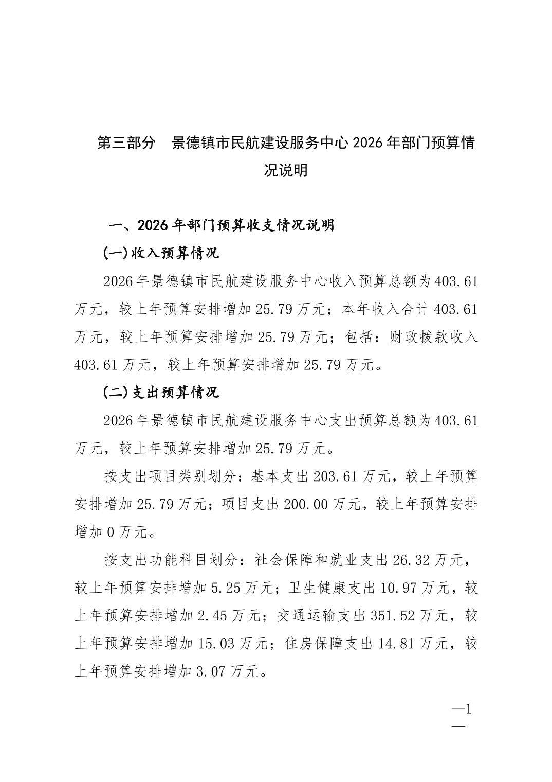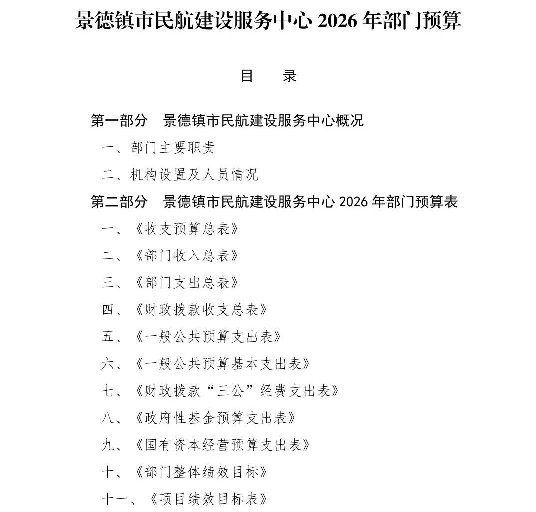 景德镇市民航建设服务中心2026年部门预算