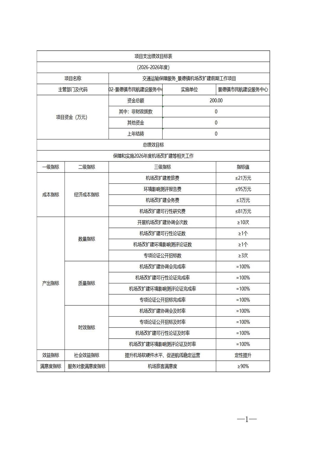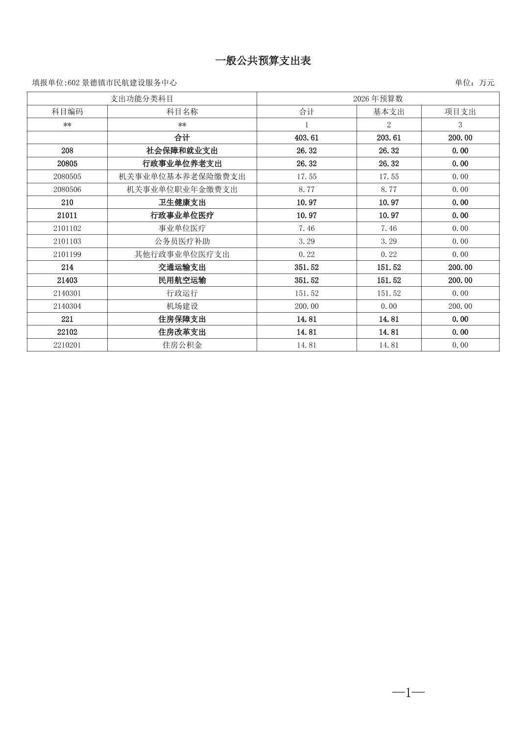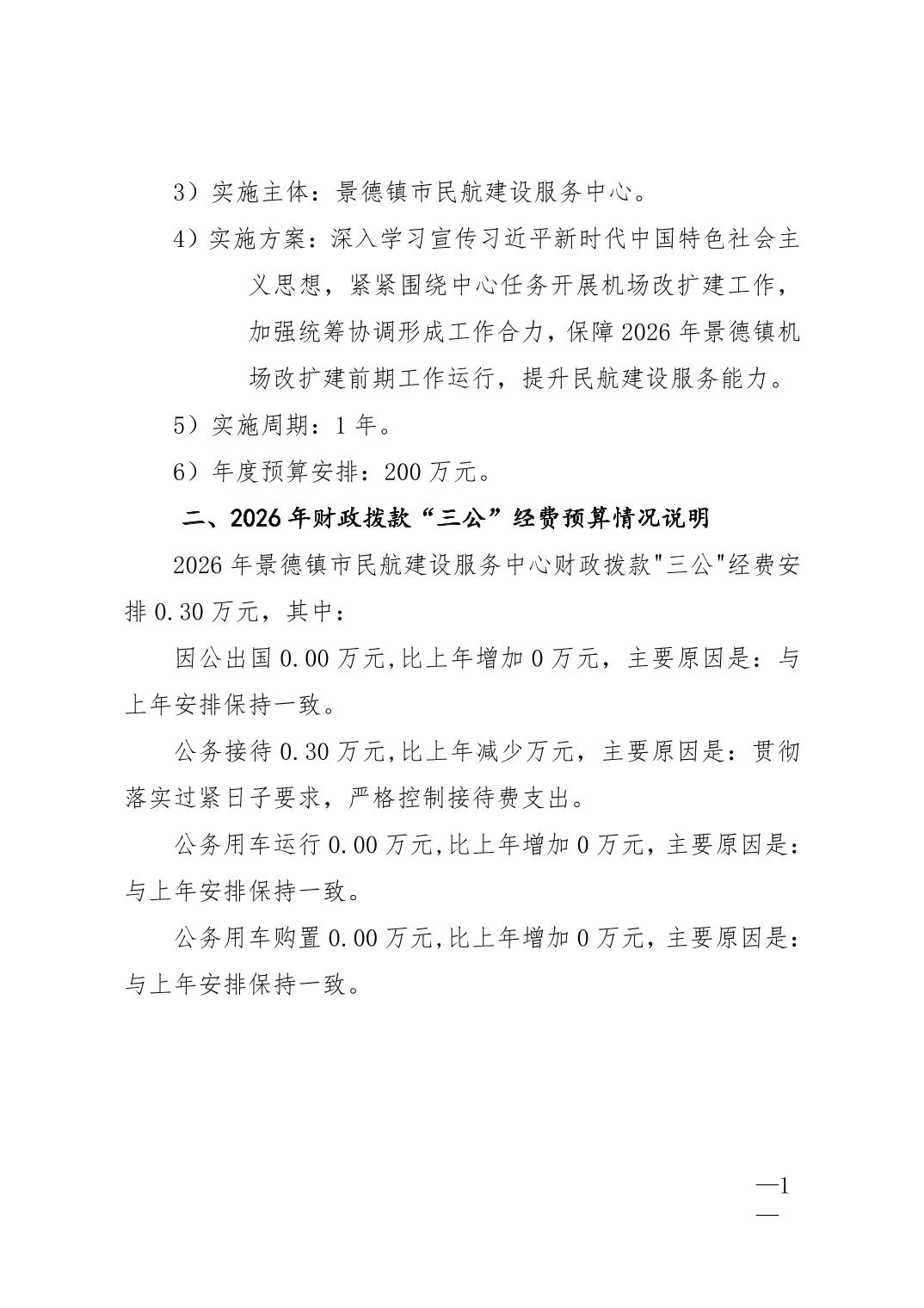 景德镇市民航建设服务中心2026年部门预算