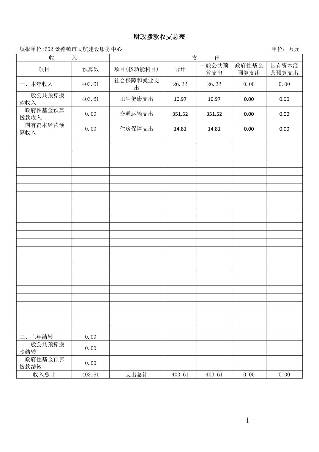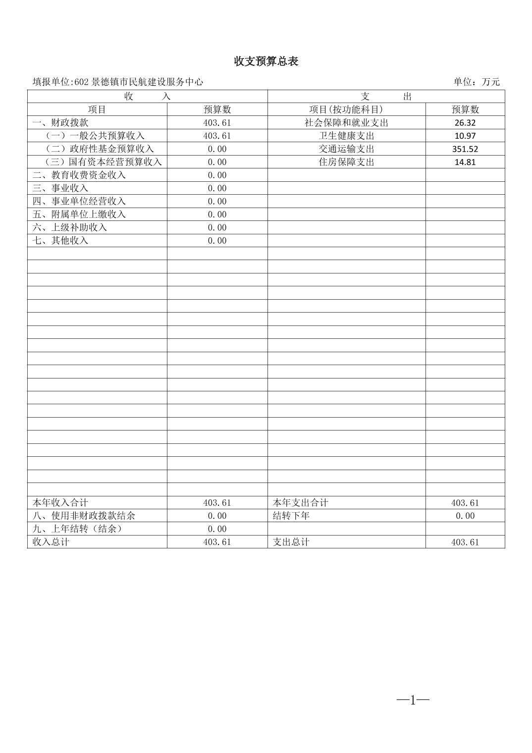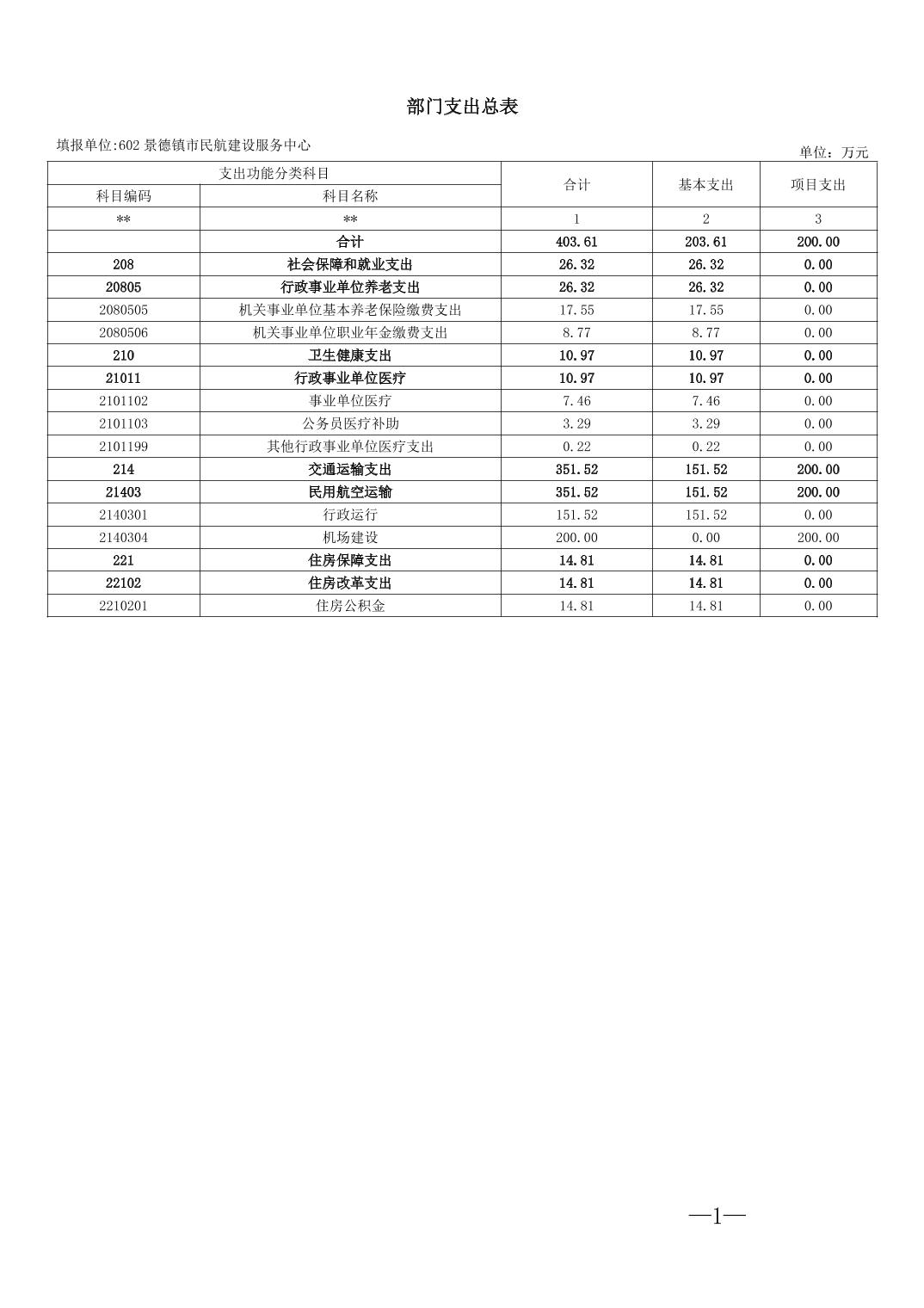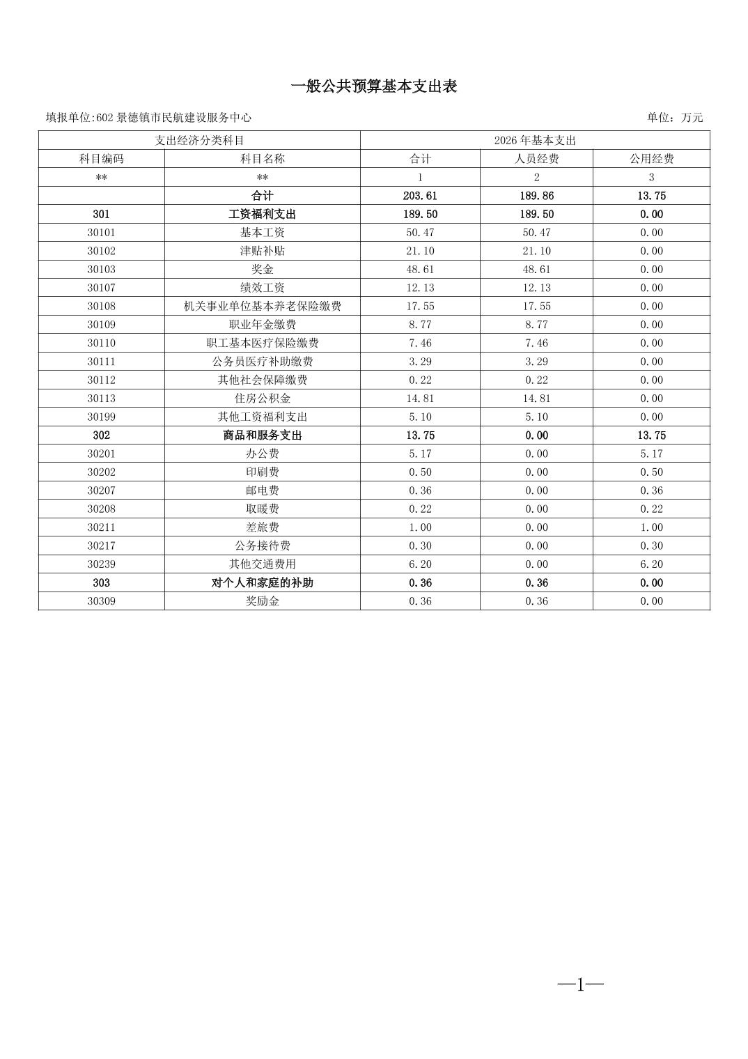景德镇市民航建设服务中心2026年部门预算