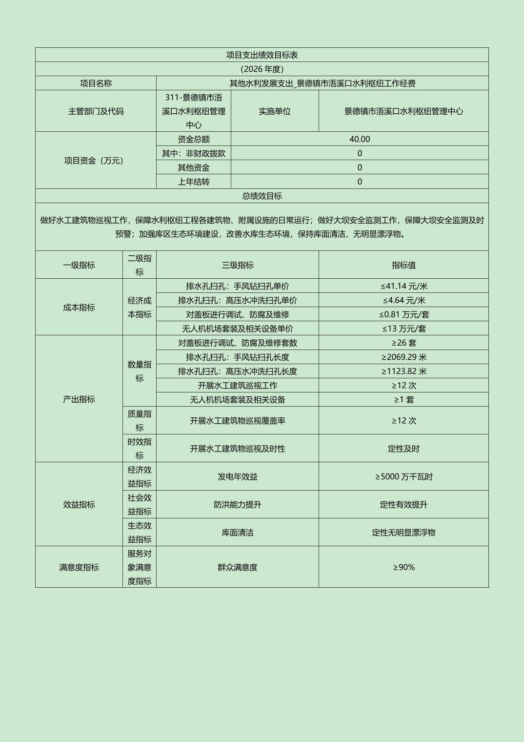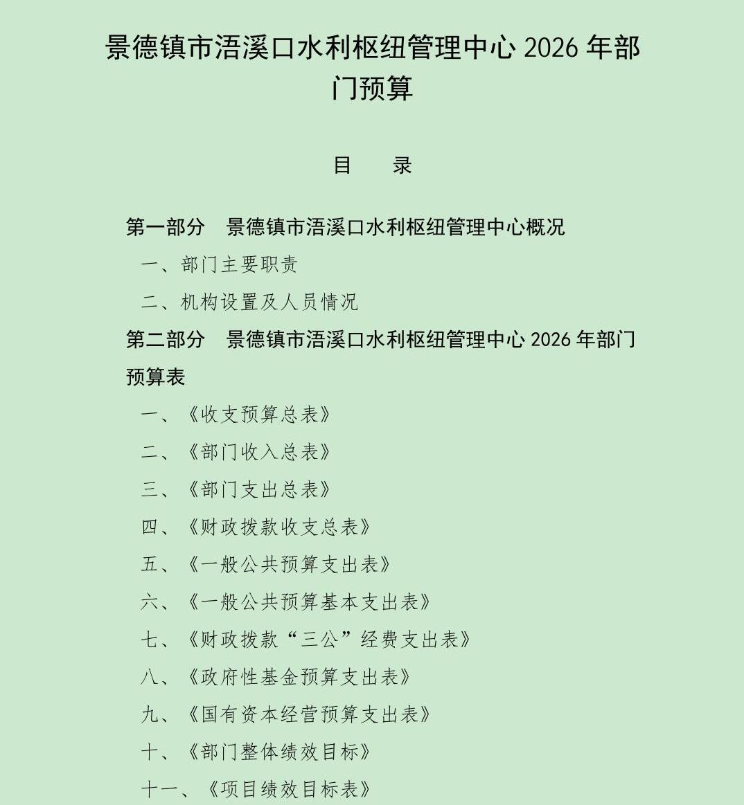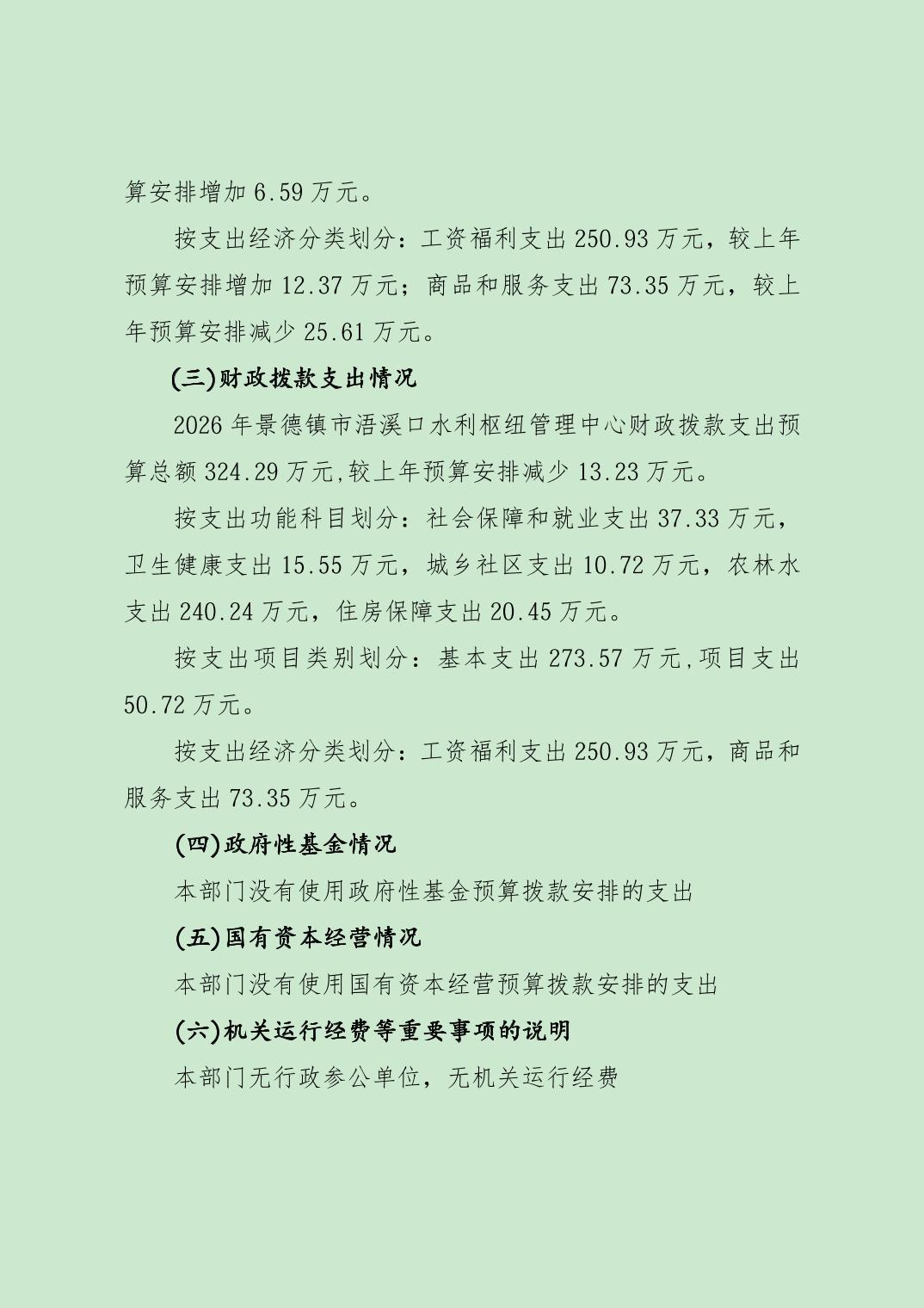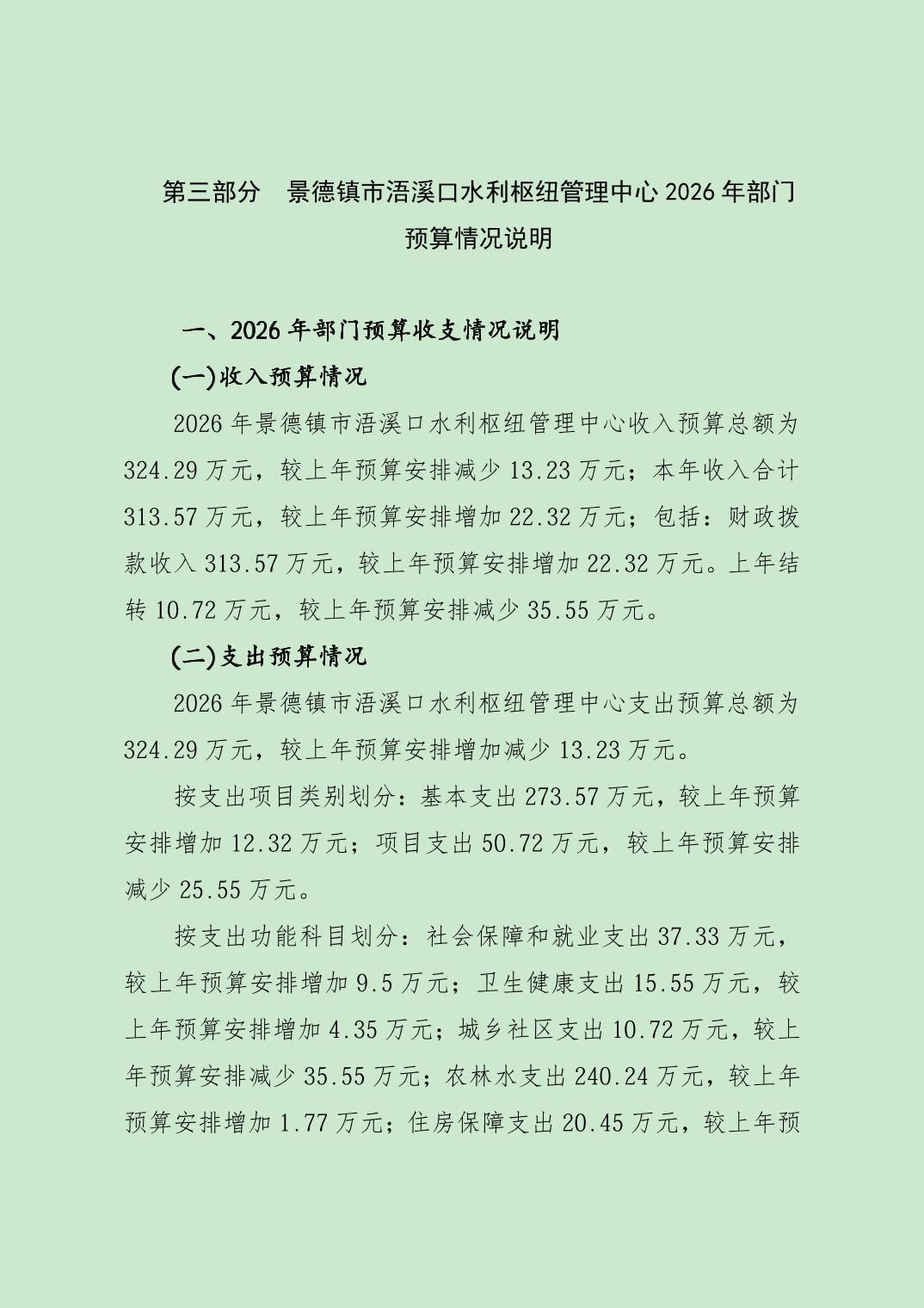 景德镇市浯溪口水利枢纽管理中心2026年部门预算
