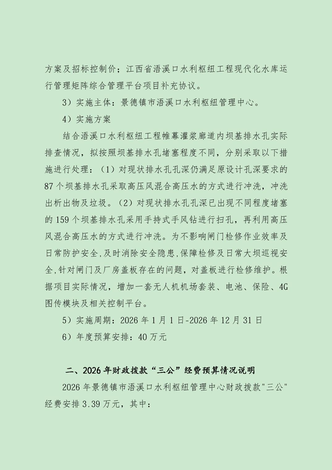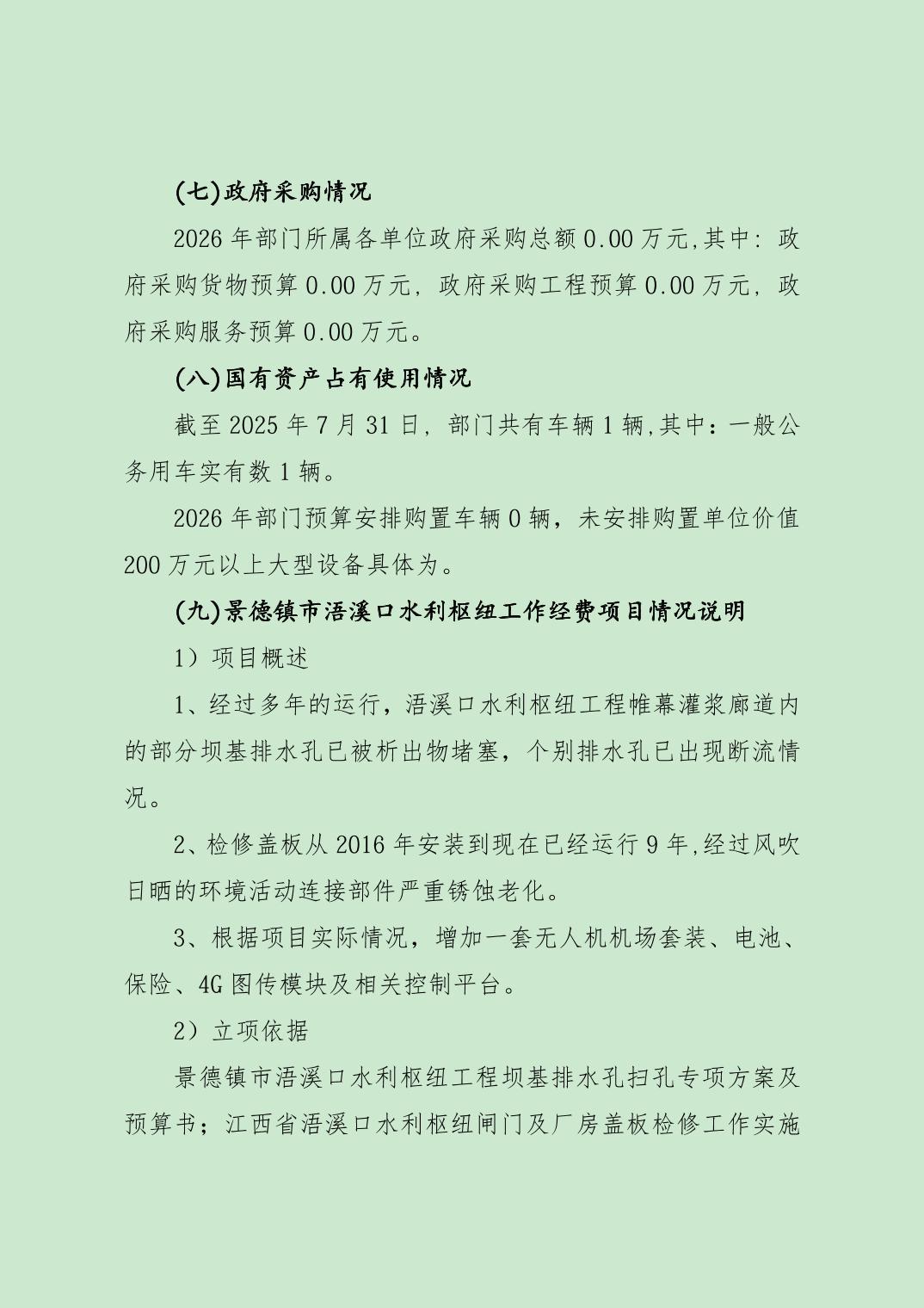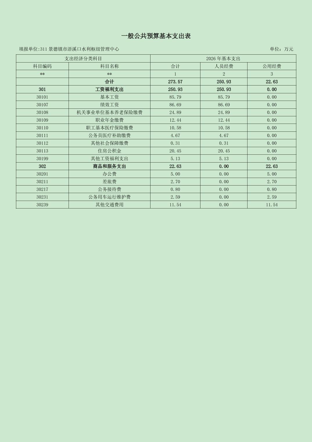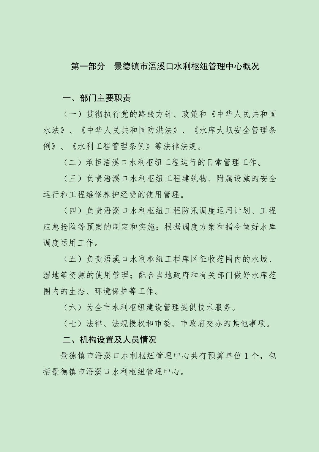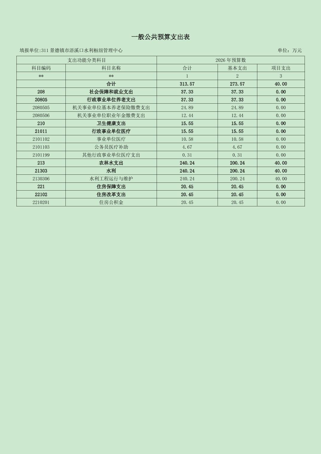景德镇市浯溪口水利枢纽管理中心2026年部门预算