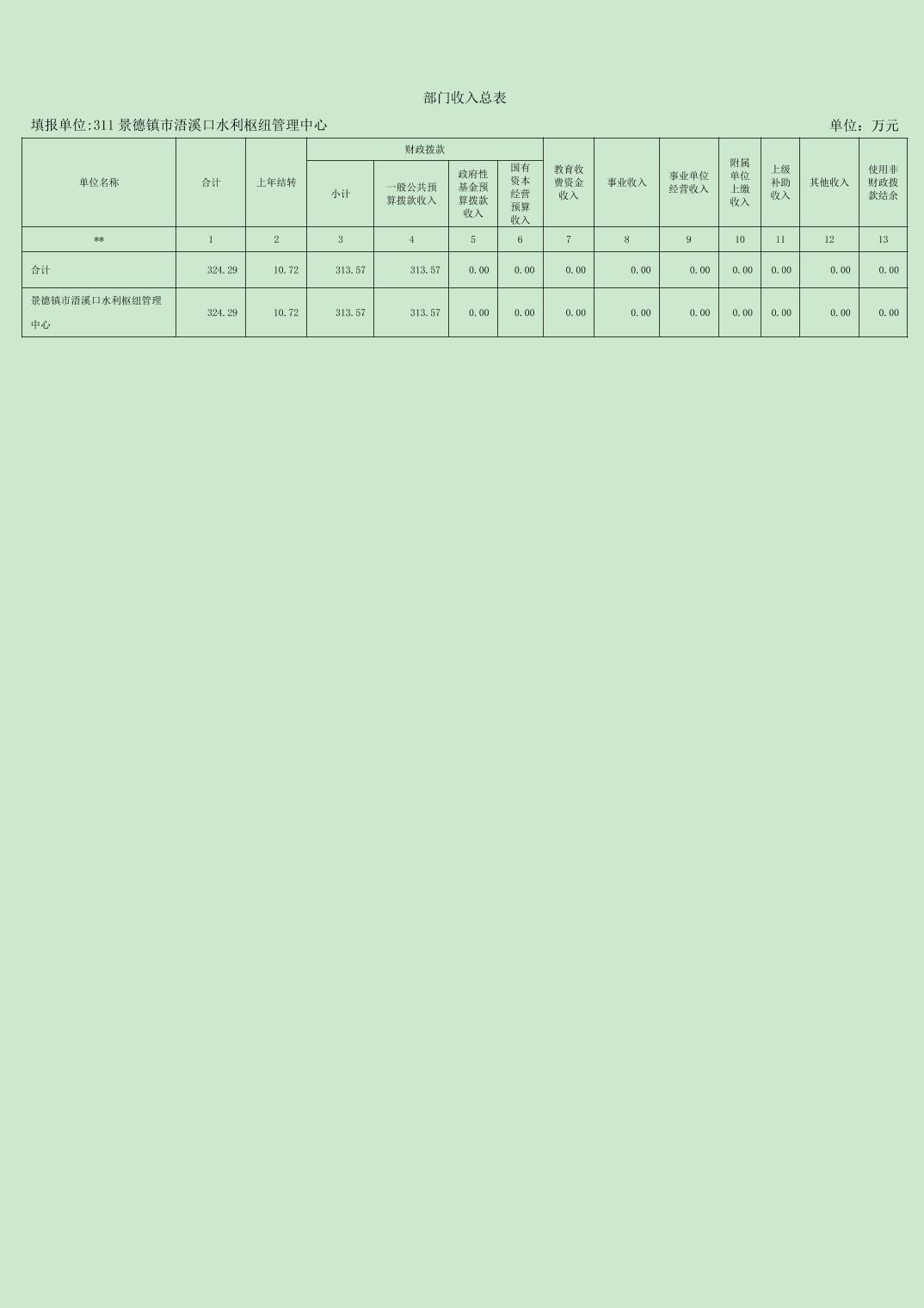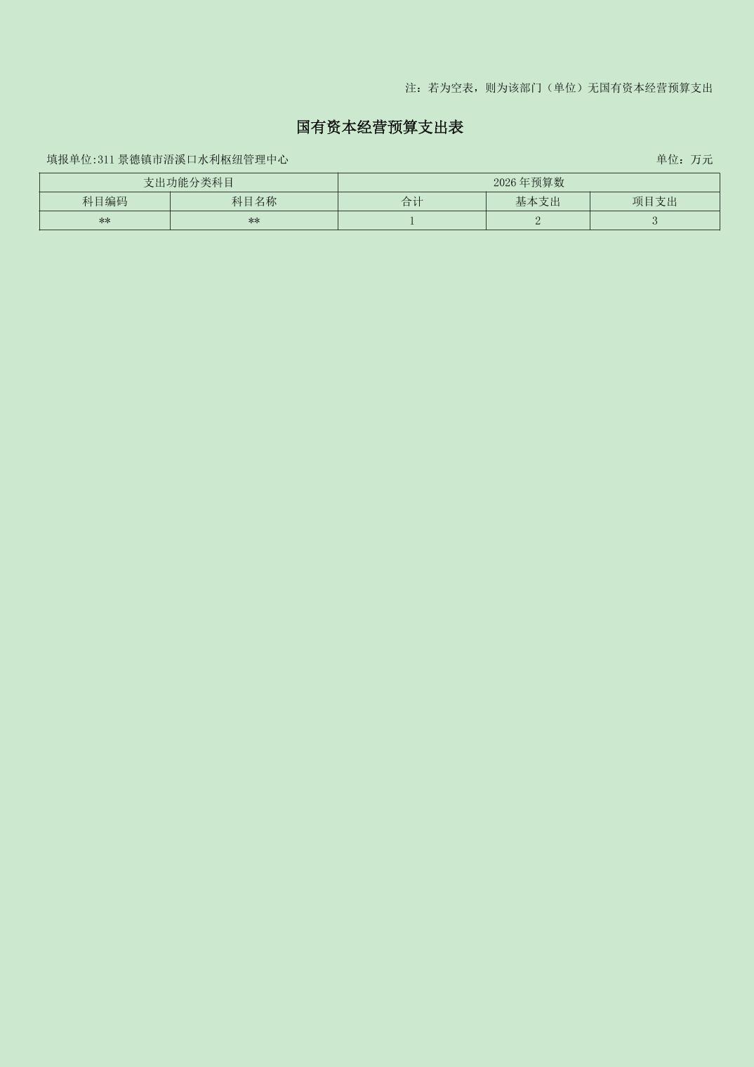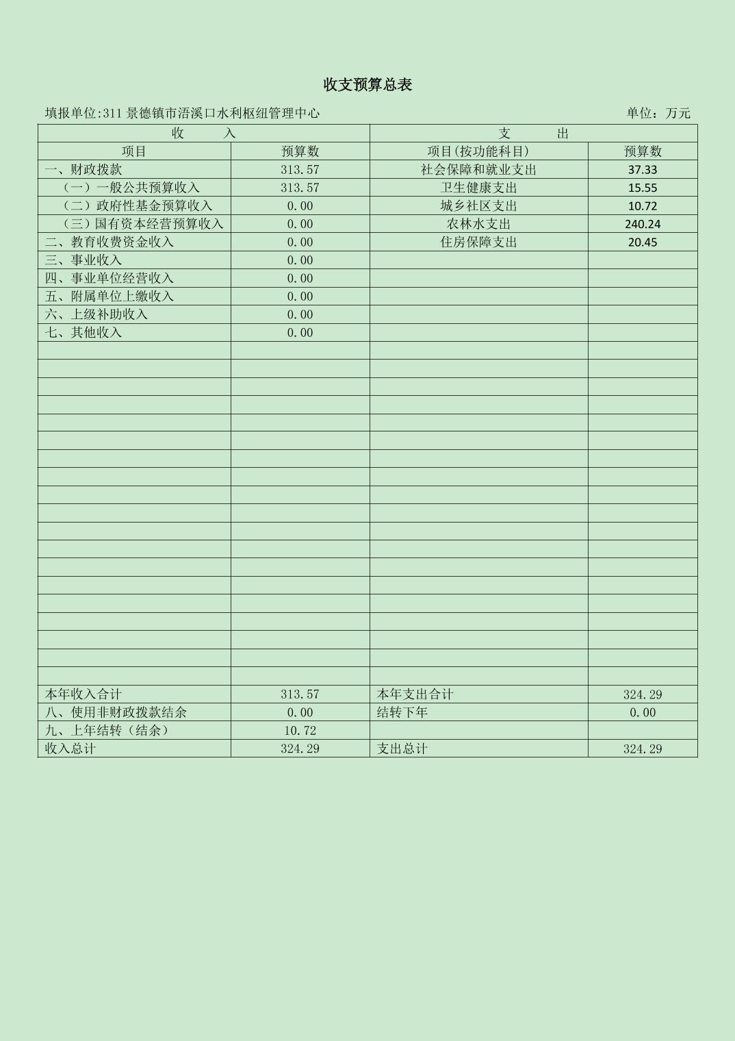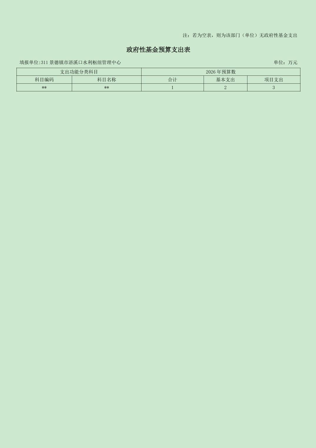 景德镇市浯溪口水利枢纽管理中心2026年部门预算