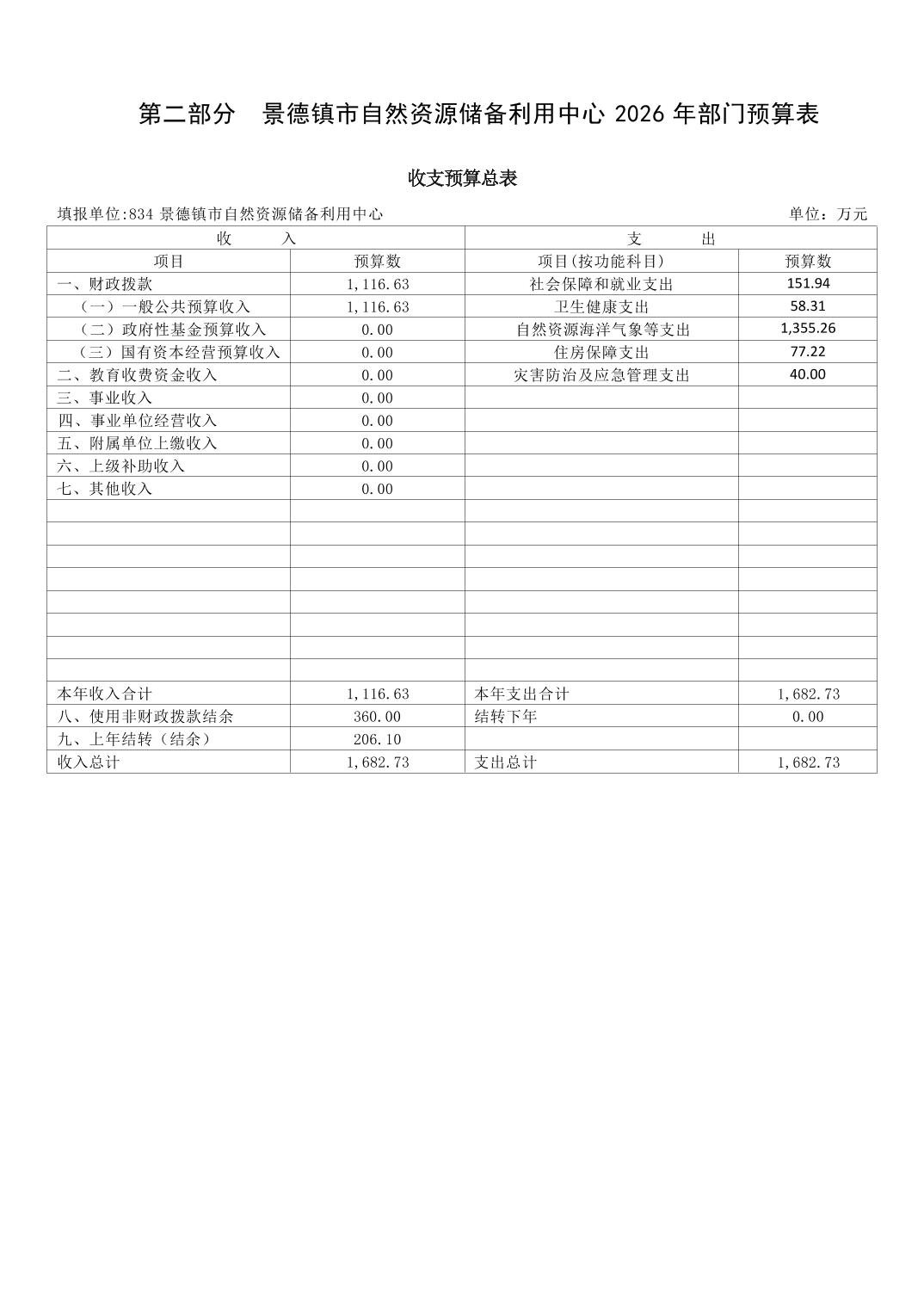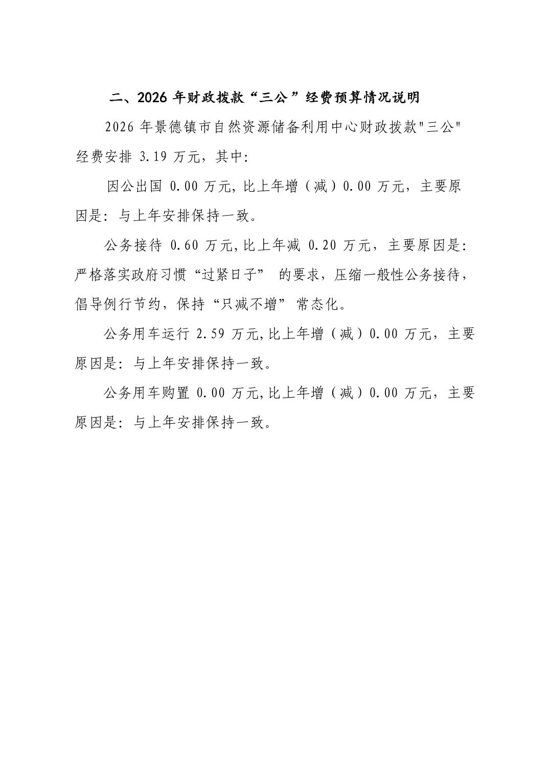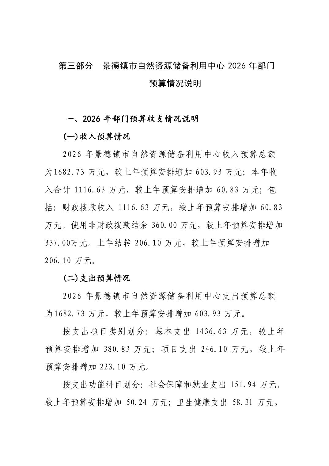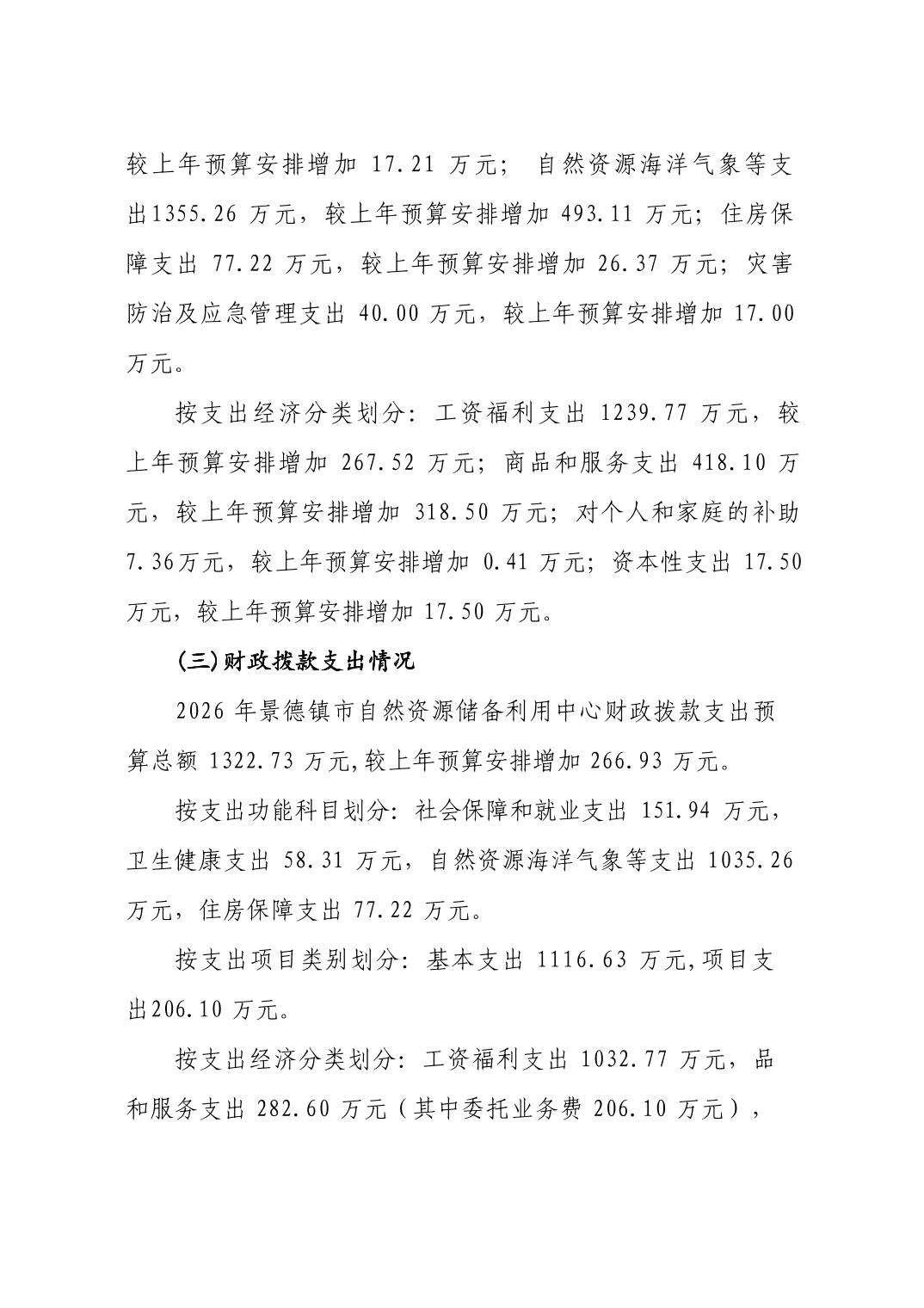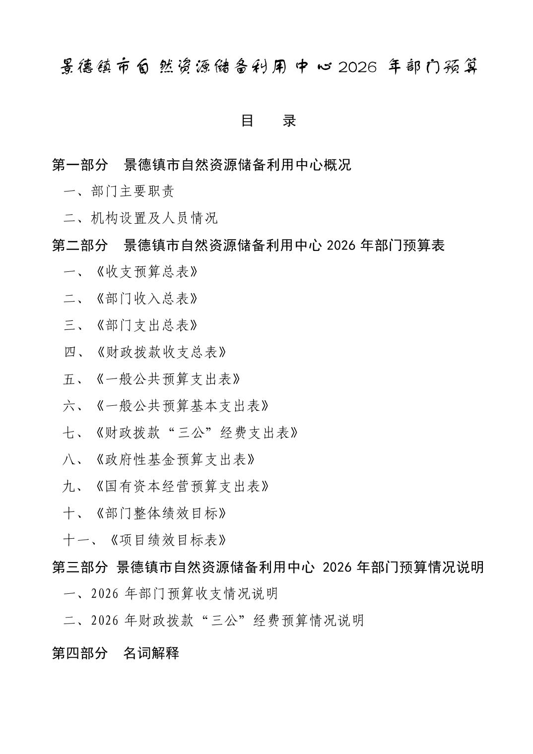 景德镇市自然资源储备利用中心2026年部门预算