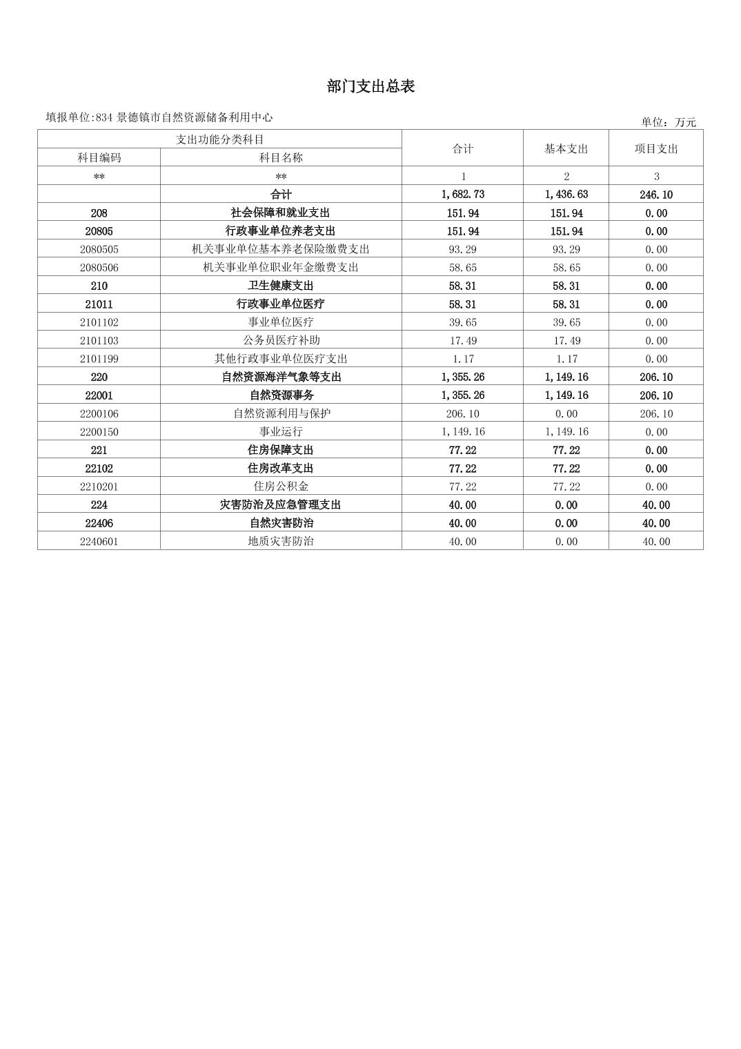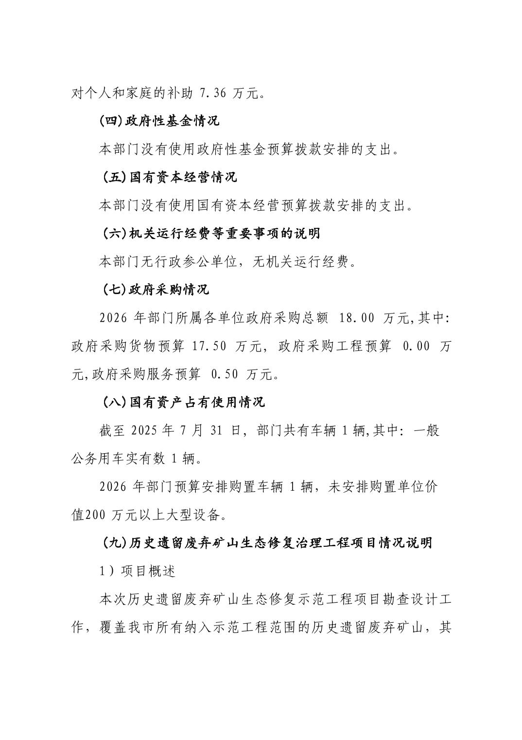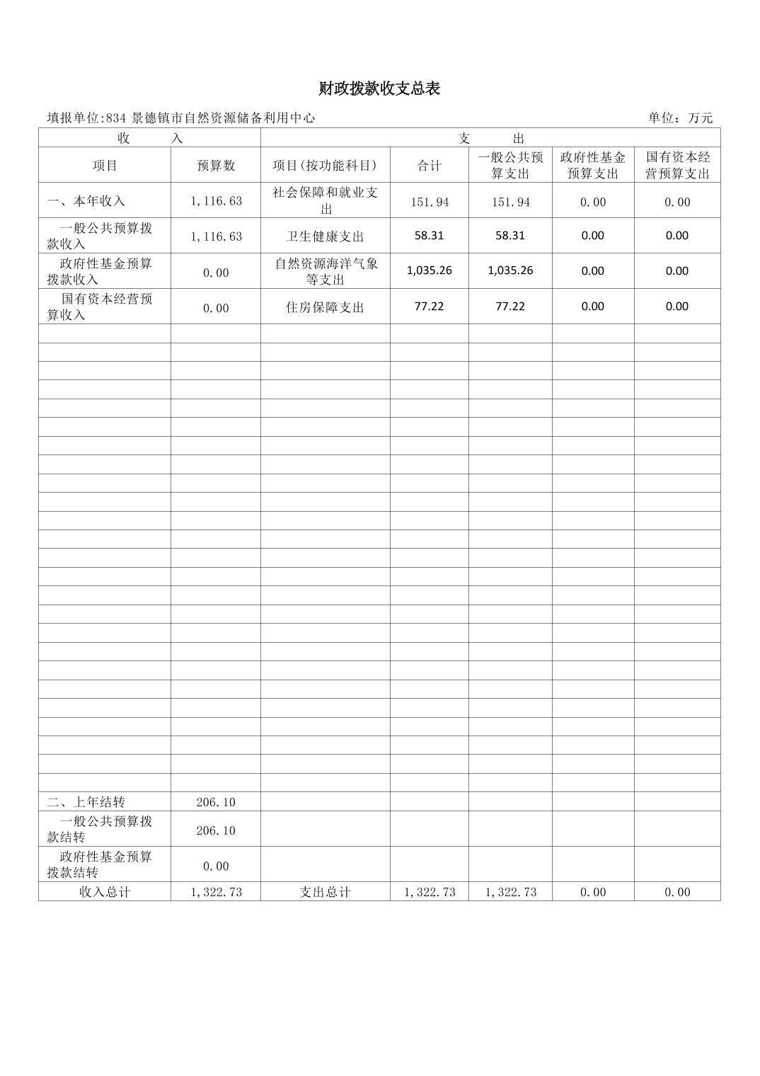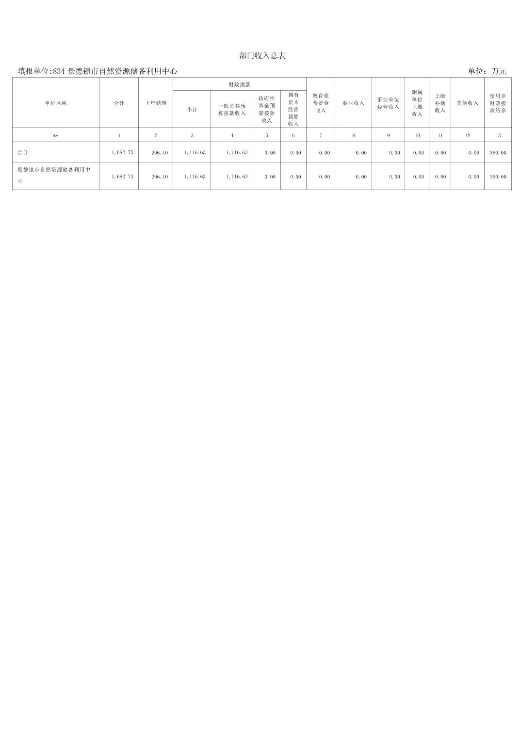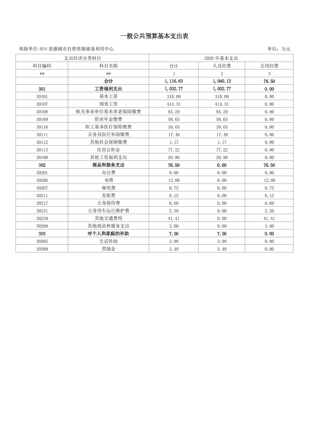 景德镇市自然资源储备利用中心2026年部门预算