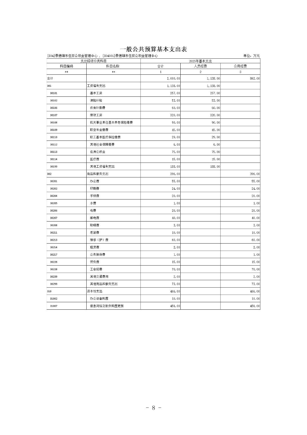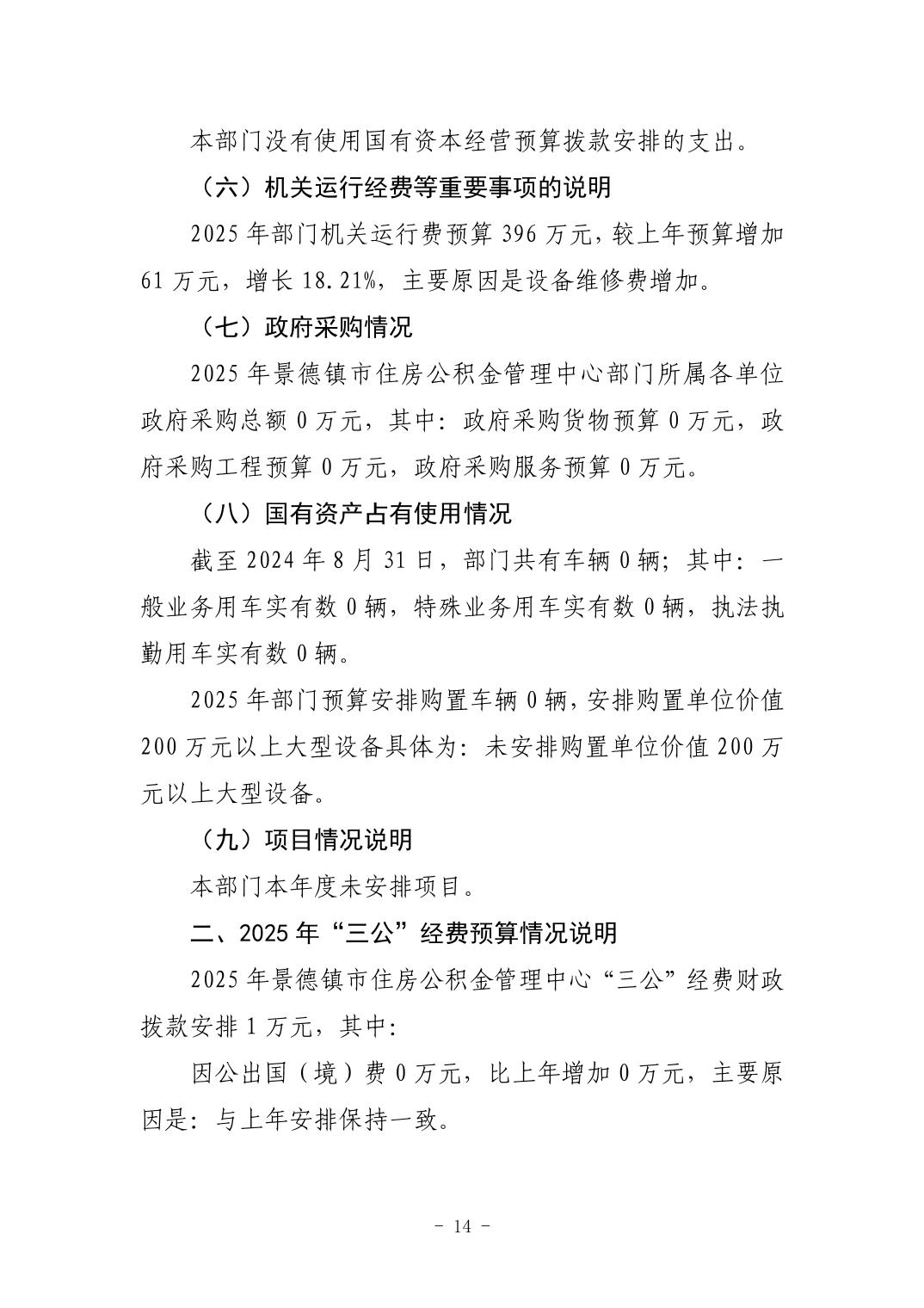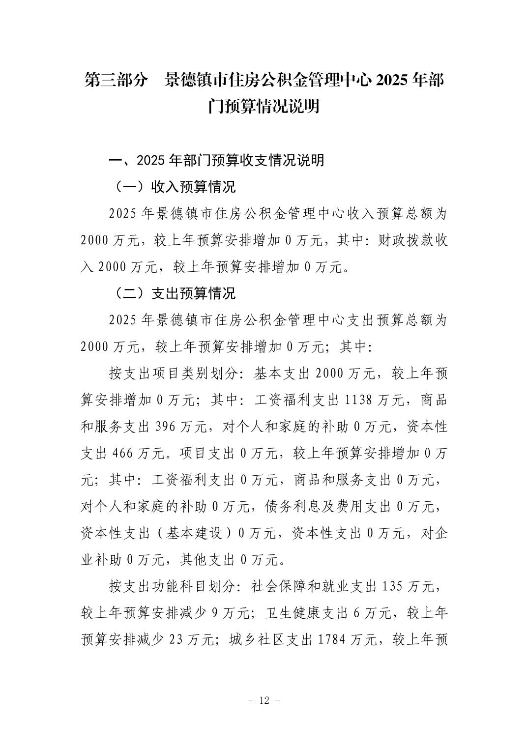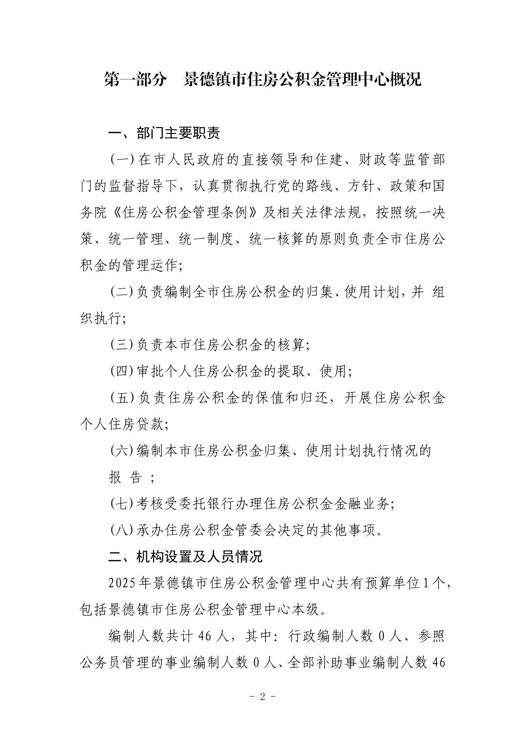 景德镇市住房公积金管理中心2025年部门预算