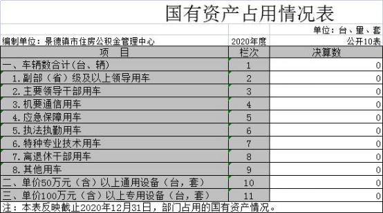 截止 2020 年 12 月 31 日,本部门(单位) 国有资产占 用情况见公开 10 表《国有资产占用情况表》。