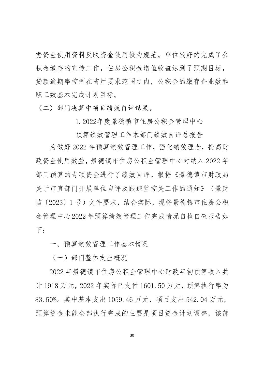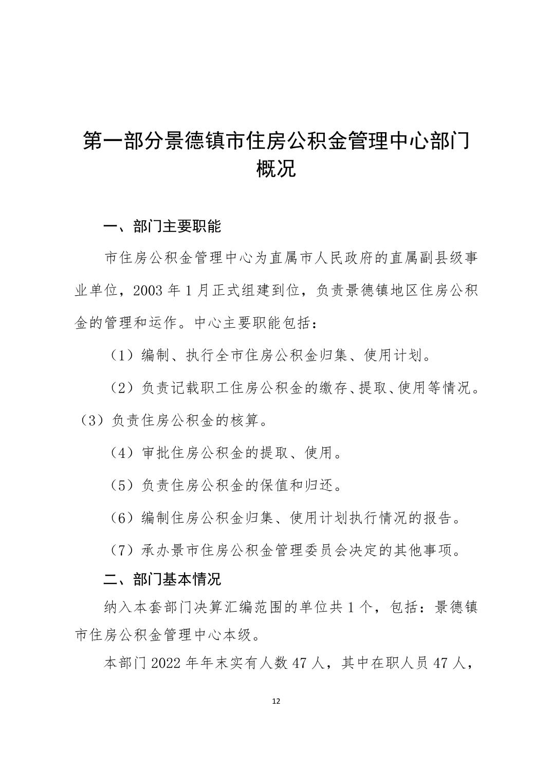 景德镇市住房公积金管理中心2022年度部门决算