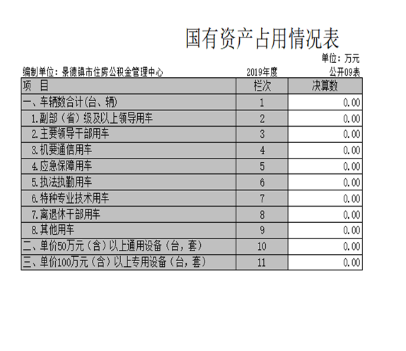 截止2019年12月31日,本部门国有资产占用情况见公开09表《国有资产占用情况表》。其中车辆中的其他用车无。