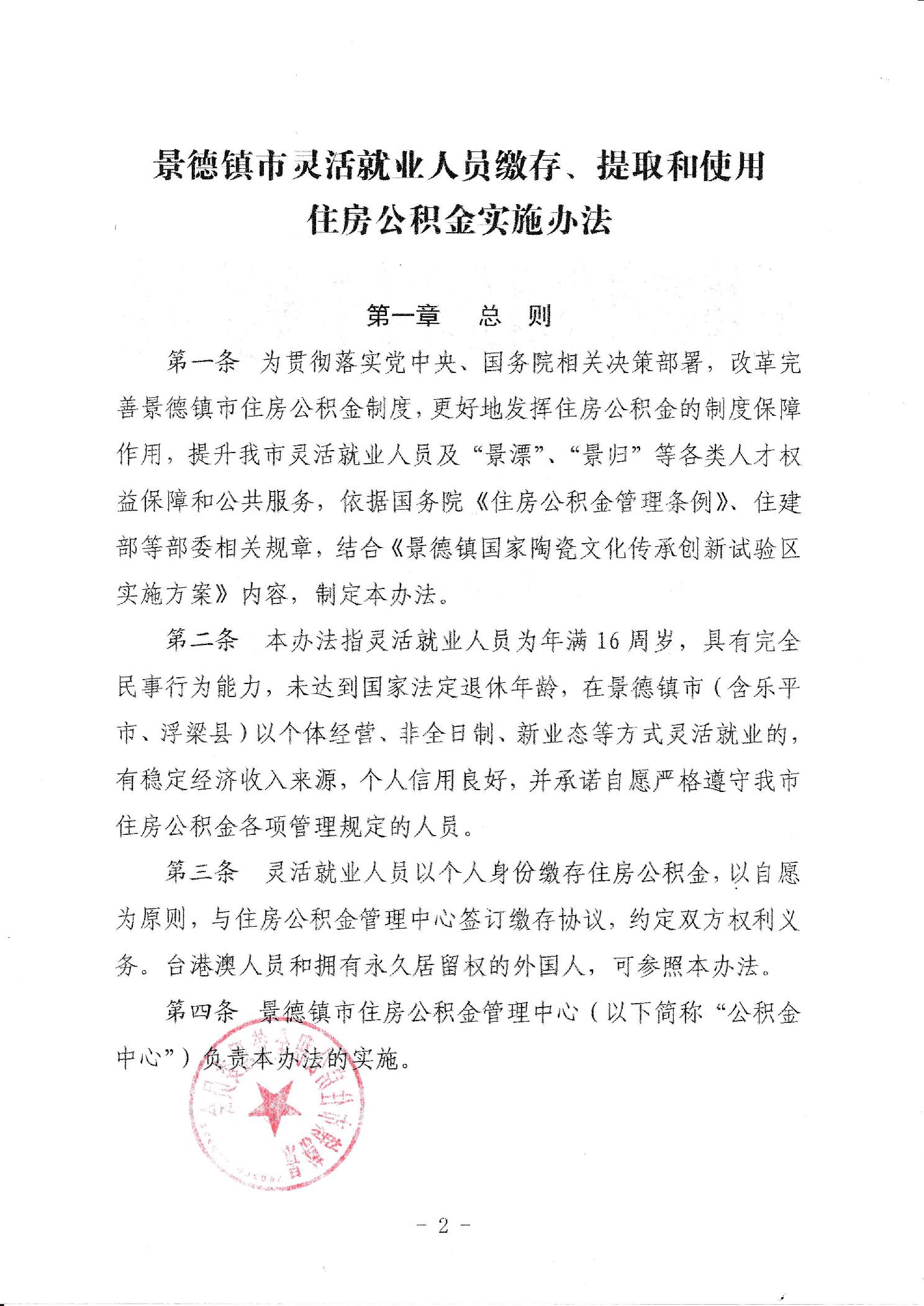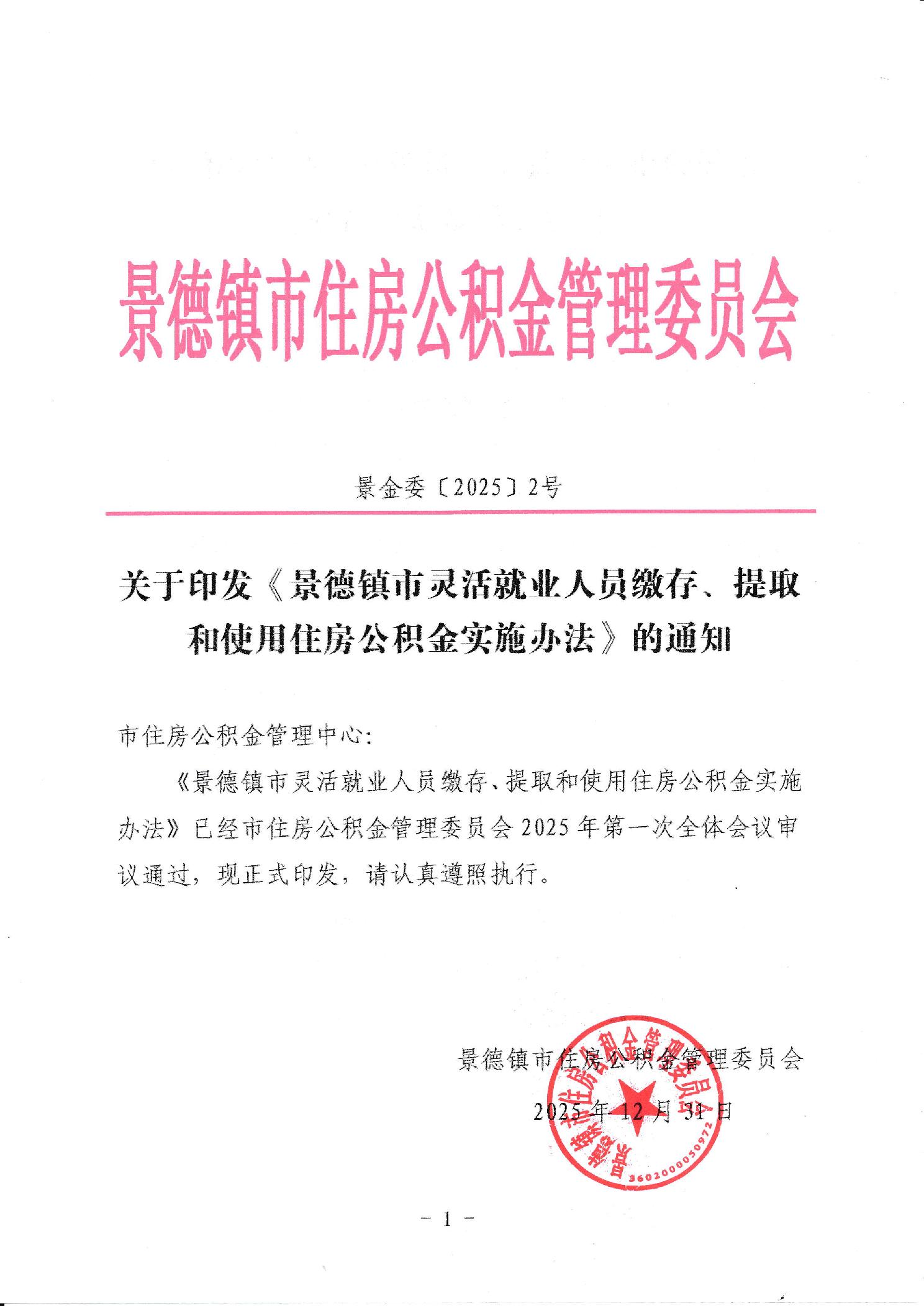 关于印发《景德镇市灵活就业人员缴存、提取和使用住房公积金实施办法》的通知