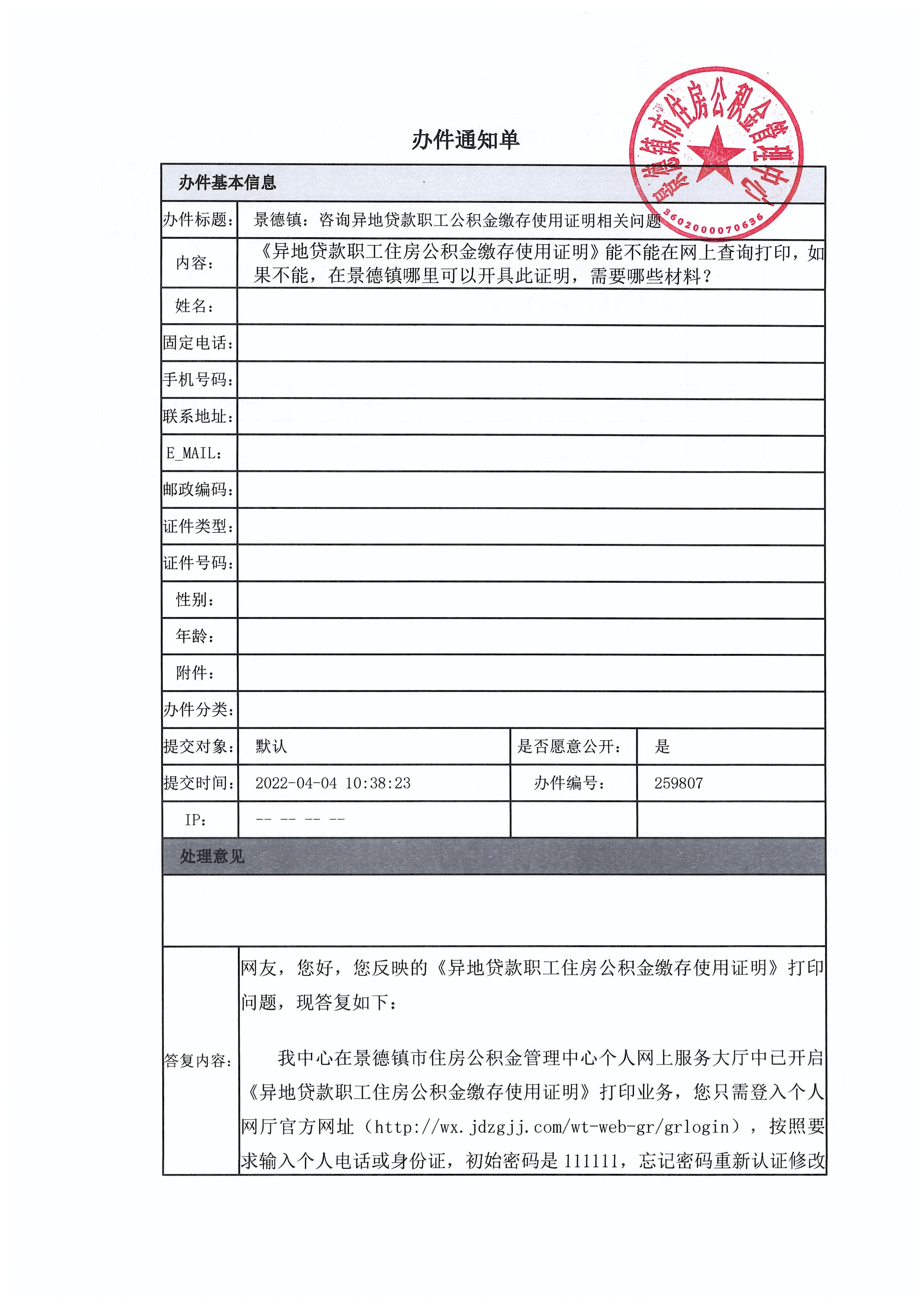 关于咨询异地贷款职工公积金缴存使用证明相关问题的回复