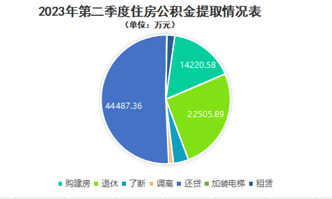 3、住房公积金提取。全市2023年1-6月提取住房公积金88214.8万元,同比增加16168.05万元,增长22.44%。其中,住房消费类提取60395.78万元,同比增长11.9%;退休等原因的销户提取26374.41万元,同比增长59.99%。在全市公积金提取中,市区提取62834.51万元、乐平提取16485.31万元、浮梁提取8894.98万元。