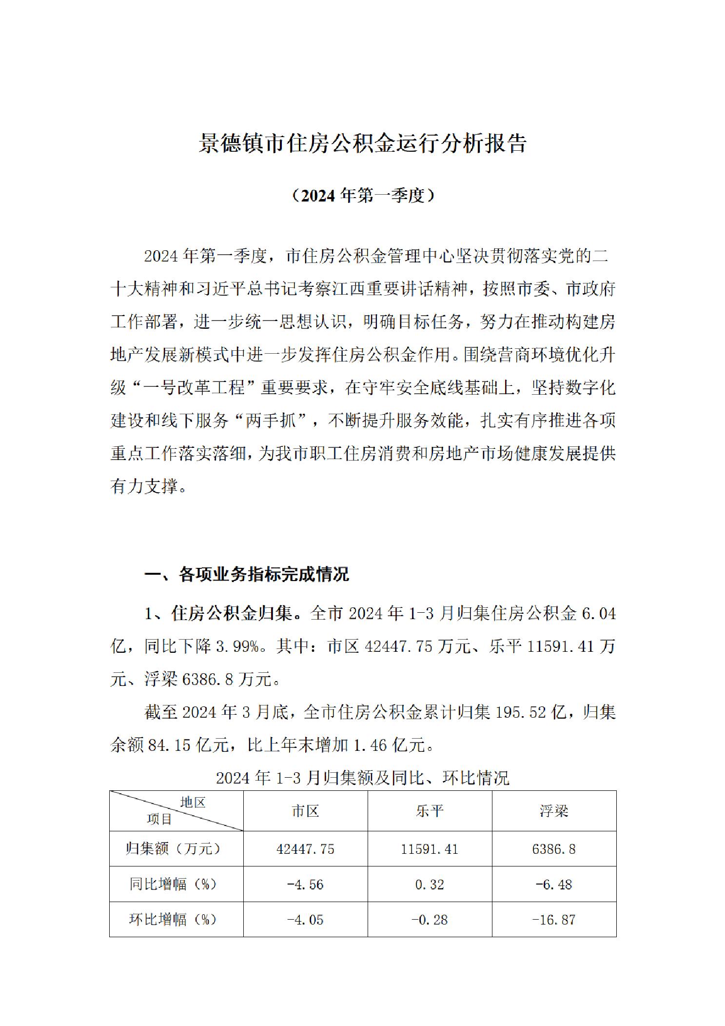 景德镇住房公积金简报(2024年第一期)