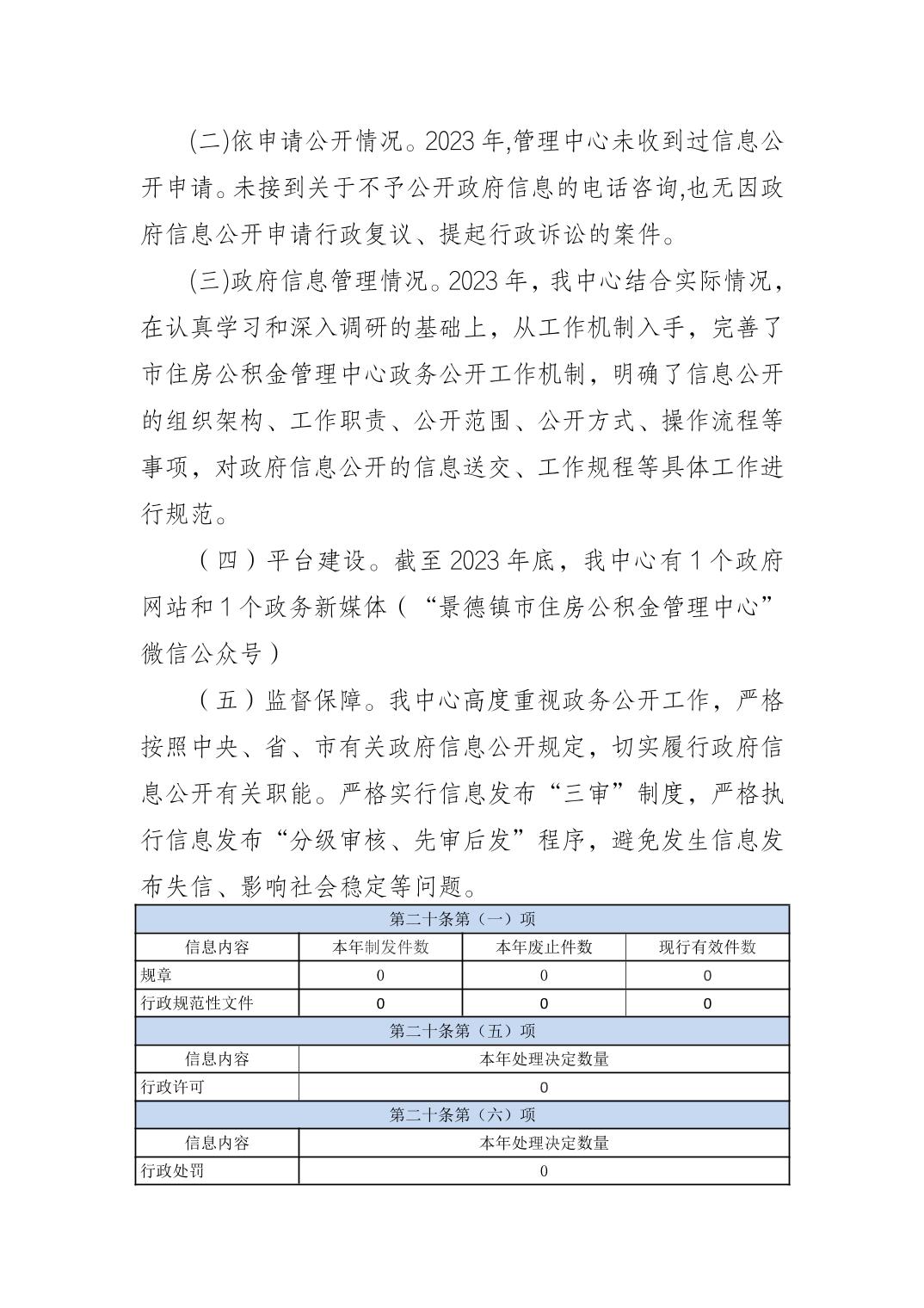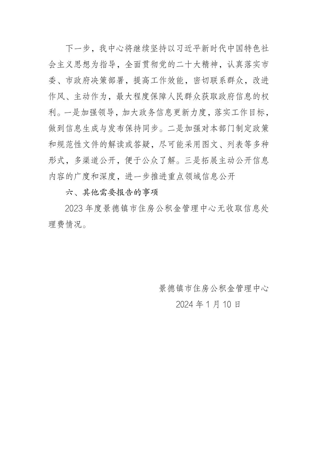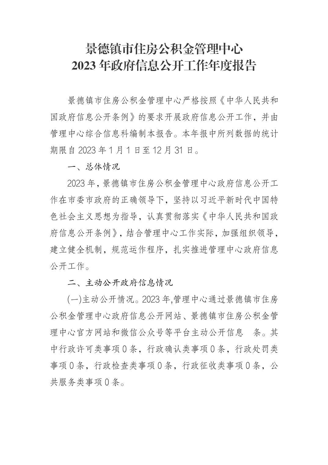 景德镇市住房公积金管理中心2023年政府信息公开工作年度报告