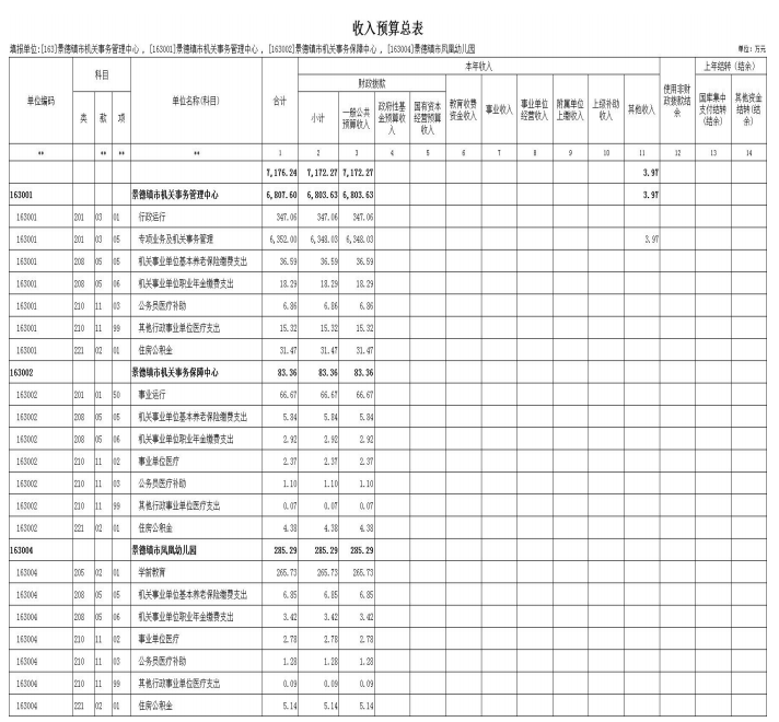 2025年景德镇市机关事务管理中心收入预算总额为7176.24万元,较上年预算安排减少632.29万元,其中:财