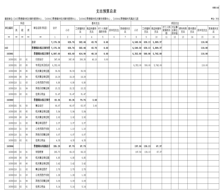 2025年景德镇市机关事务管理中心支出预算总额为7176.24万元,较上年预算安排减少632.29万元;其中: