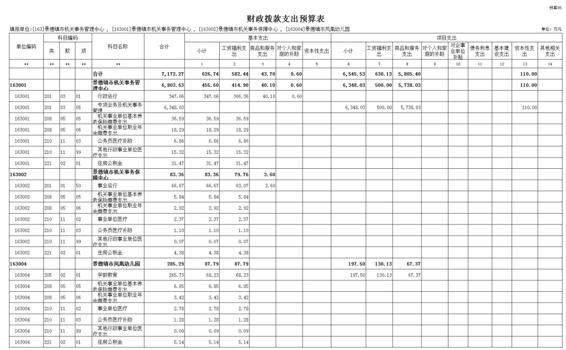 2025年景德镇市机关事务管理中心财政拨款支出预算总额7172.27万元,较上年预算安排减少137.53万元。