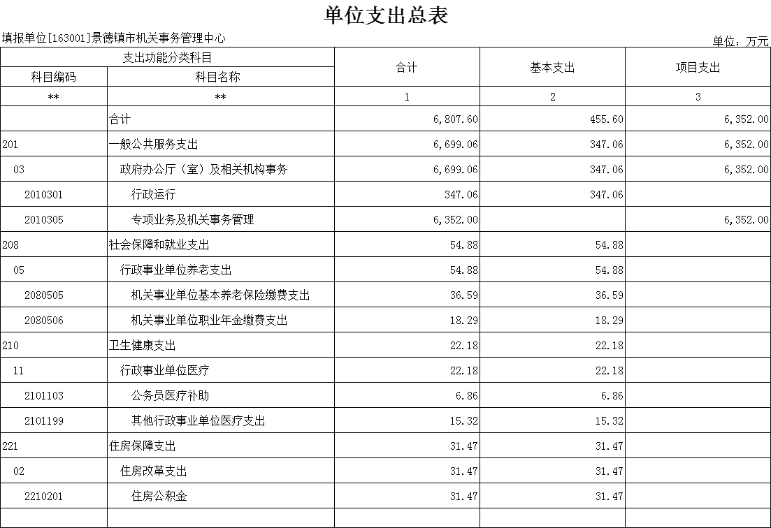 2025年景德镇市机关事务管理中心支出预算总额为6807.60万元,较上年预算安排减少1000.93万元;其中: